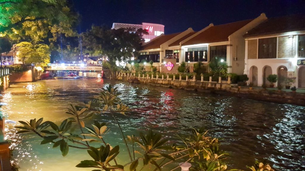 Arrivés à Melaka, nous déposons nos bagages et allons dîner dans le centre. Les rues ont l’air désertes, nous nous rendons compte après que la vie le soir se trouve aux abords du fleuve…