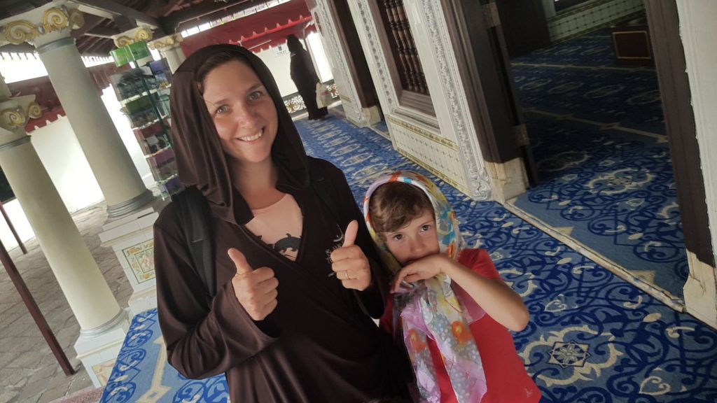 En attendant, promenades à pied toujours dans le vieux Melaka. Nous nous rendons jusqu’à la mosquée pour la visiter mais nous ne pouvons y entrer que cet après midi. Nous reviendrons plus tard…