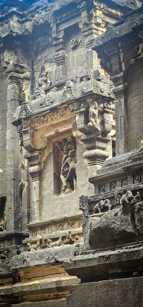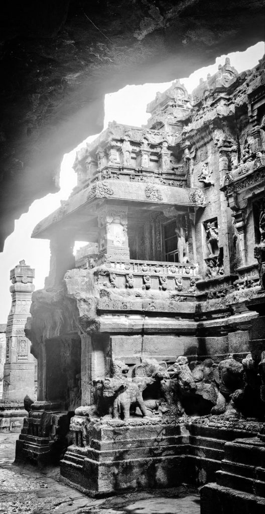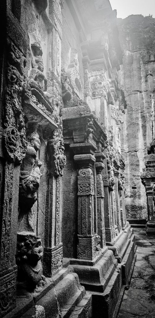 Le temple, qui fait 2 fois la taille de Parthénon d’Athènes, représente la demeure de Shiva. C’est une prouesse architecturale : il a d’abord fallu creuser 3 tranchées dans la falaise pour en faire le tour avant de s’attaquer au temple lui-même et aux sculptures !