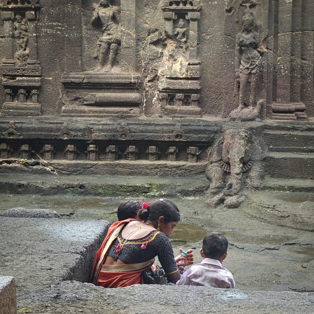 Très belles les grottes d’elephanta. Par contre le temple de kailash me rappelle les temples d’angkor et aussi avec tous ces singes !!!! Bisous