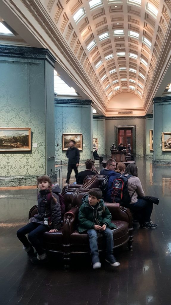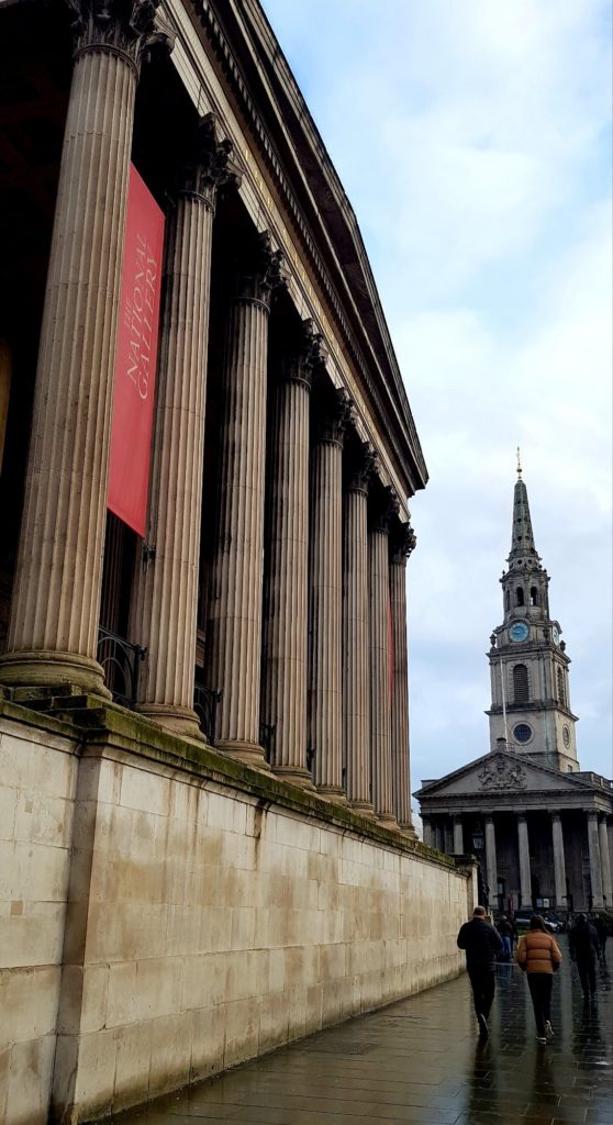Dans ce superbe musée, nous avons la chance d’admirer des Rubens, Vermeer, Van Eyck et ses Époux Arnolfini, Les Ambassadeurs d’Holbein, des Vélasquez, Poussin, Rembrandt, Turner, quelques impressionnistes et pointillistes et entre autre, les Tournesols de Van Gogh !