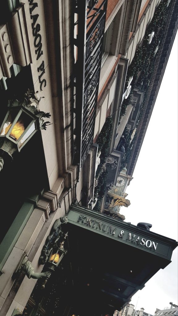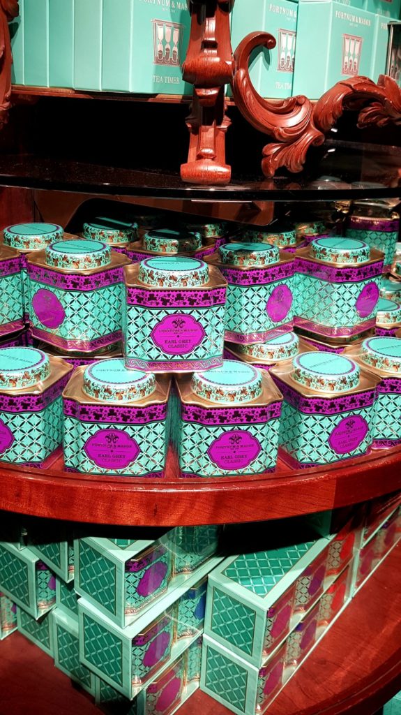 Nous passons près des adorables vitrines de Fortnum & Mason et rentrons dans ce célèbre magasin : il y a du thé et des accessoires de tous les côtés…je suis au paradis !!
