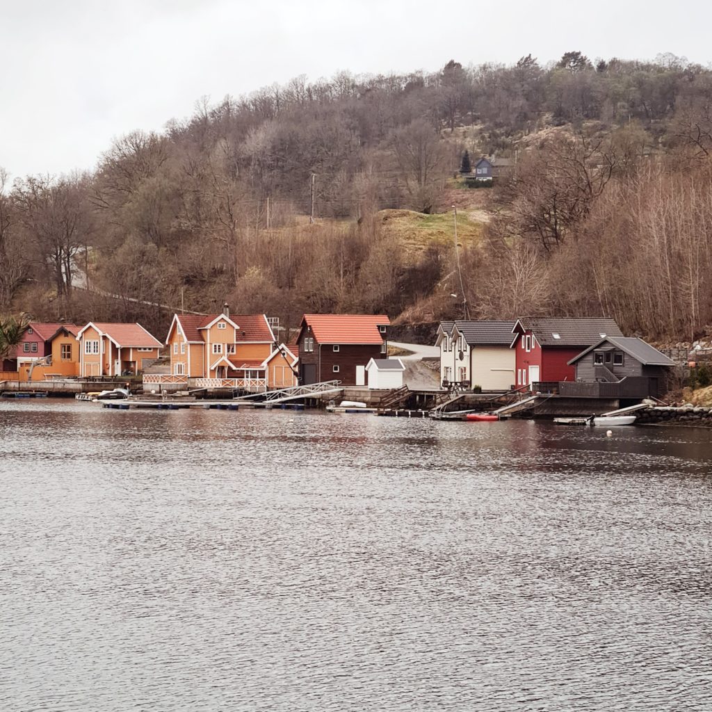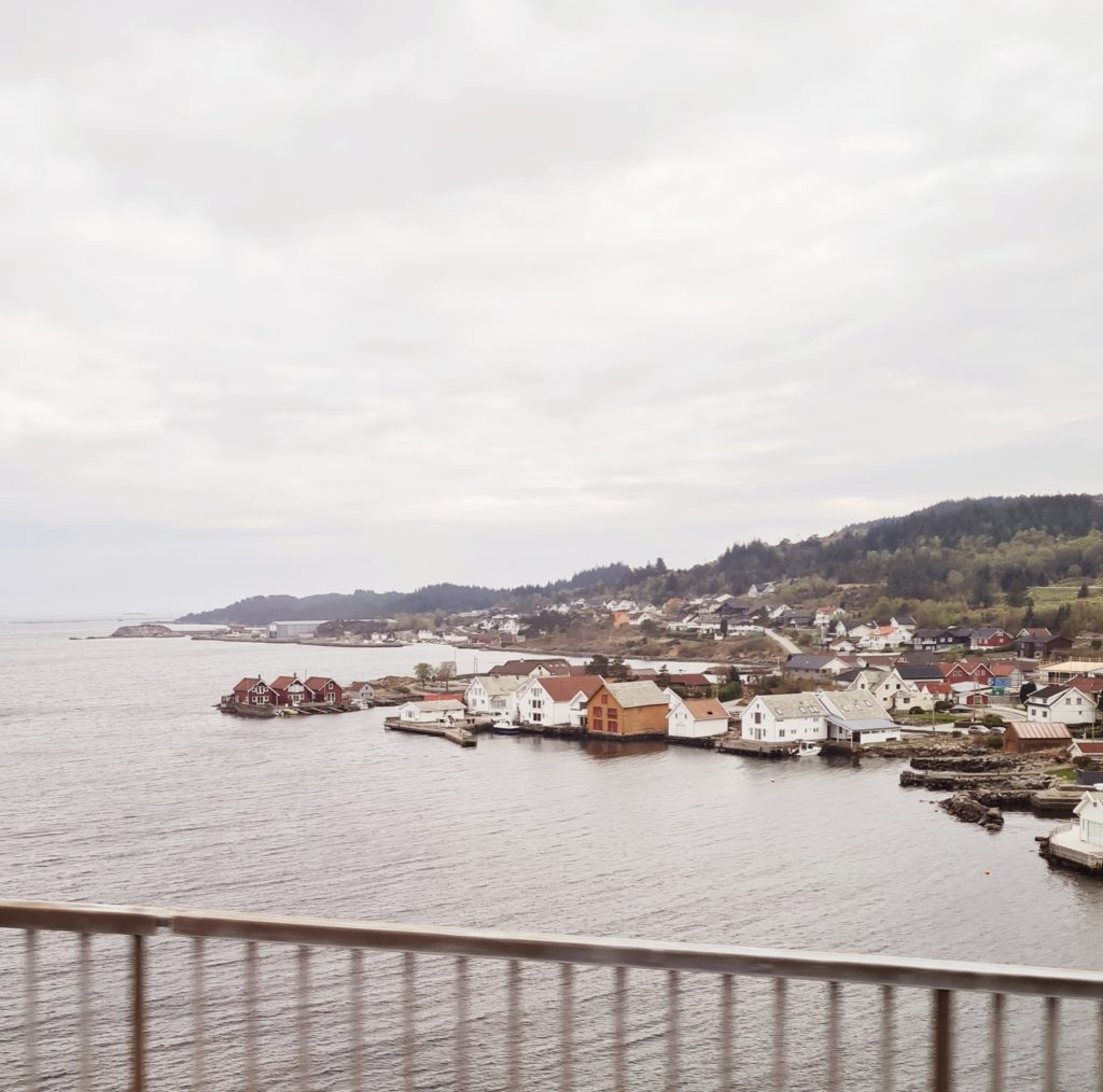Pour rejoindre la ville de Bergen, il faut traverser la côte disloquée et sauvage des îles de l’ouest de la Norvège. Nous avons 5 heures de route au milieu de ce paysage magnifique fait de rochers, de landes, de moutons, de petits ports et de maisons de bois colorées. On dirait la Bretagne !