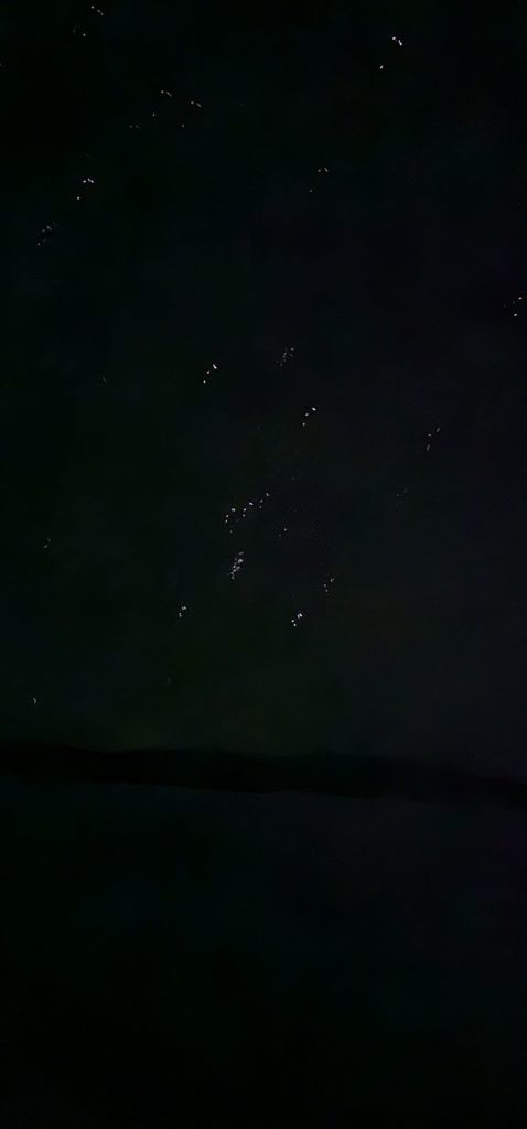 Les prévisions ce soir pour les aurores ne sont pas extraordinaires pour le moment, les enfants partent se coucher. En regardant les photos de la veille au soir, nous nous rendons compte que la brume blanche que nous apercevions à l’horizon ressemble à des traînées d’aurore, mais lointaines.