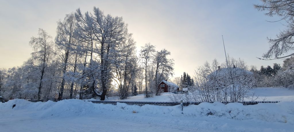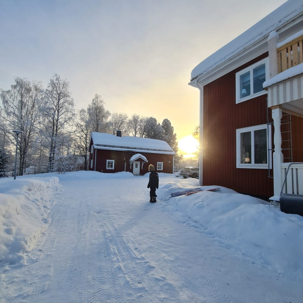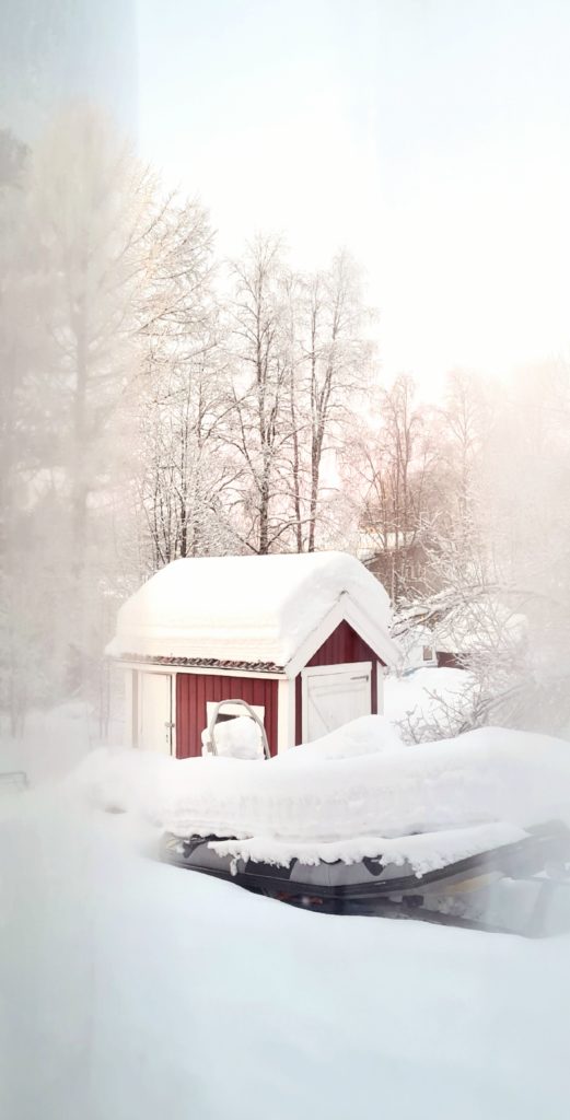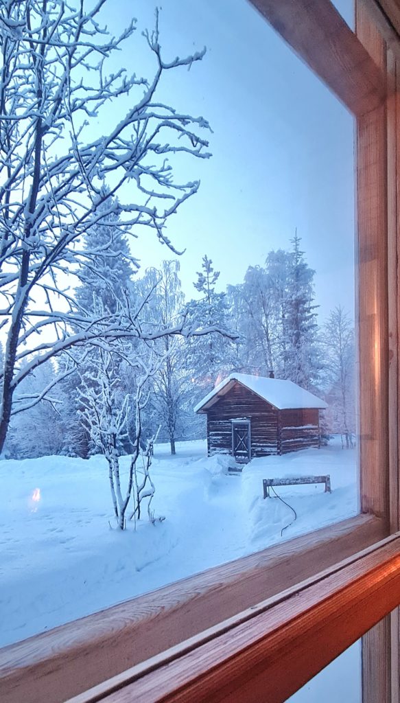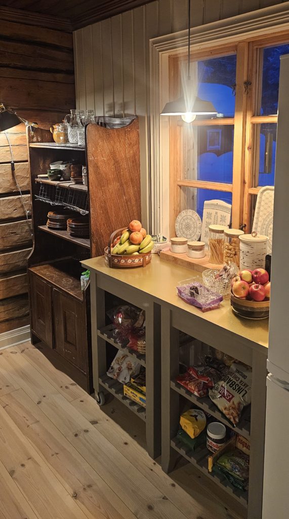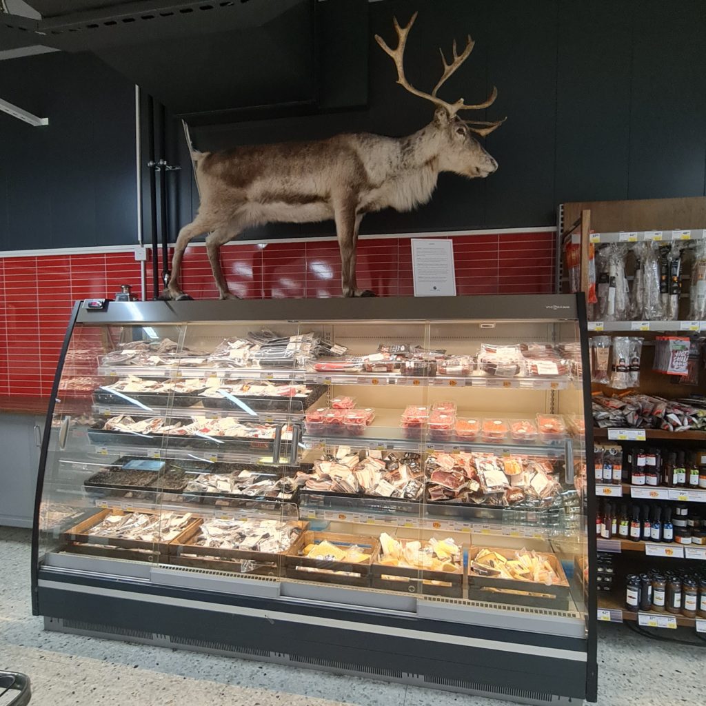 Nous partons faire des courses pour les 3 prochains jours car notre logement suivant, celui qui nous a fait rêver et qui nous a décidé à venir dans cette région de la Laponie, est à 60 km de là 1ère supérette. Autant dire que tu n’as pas intérêt à oublier le beurre !