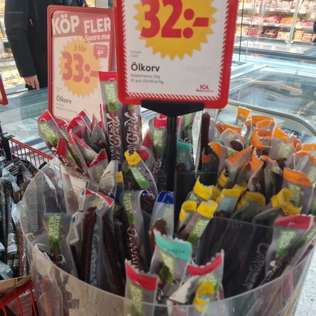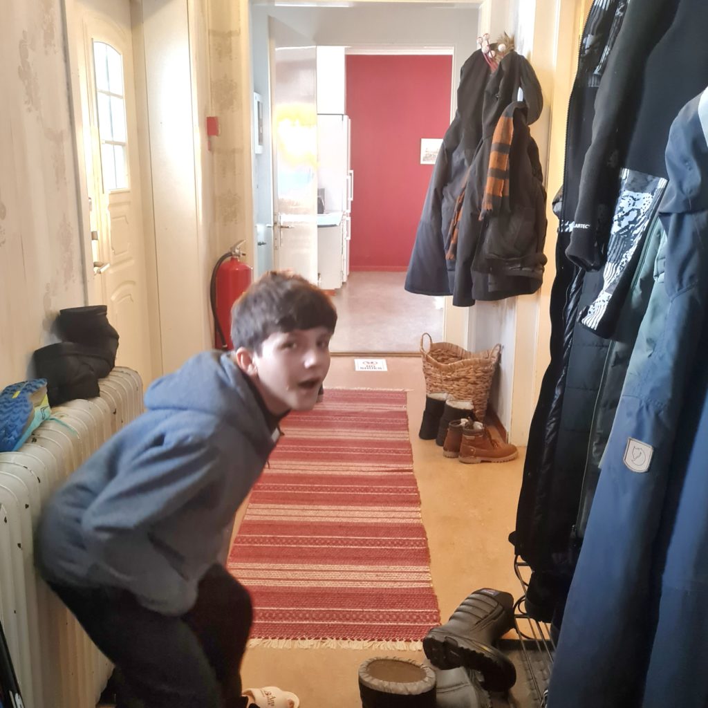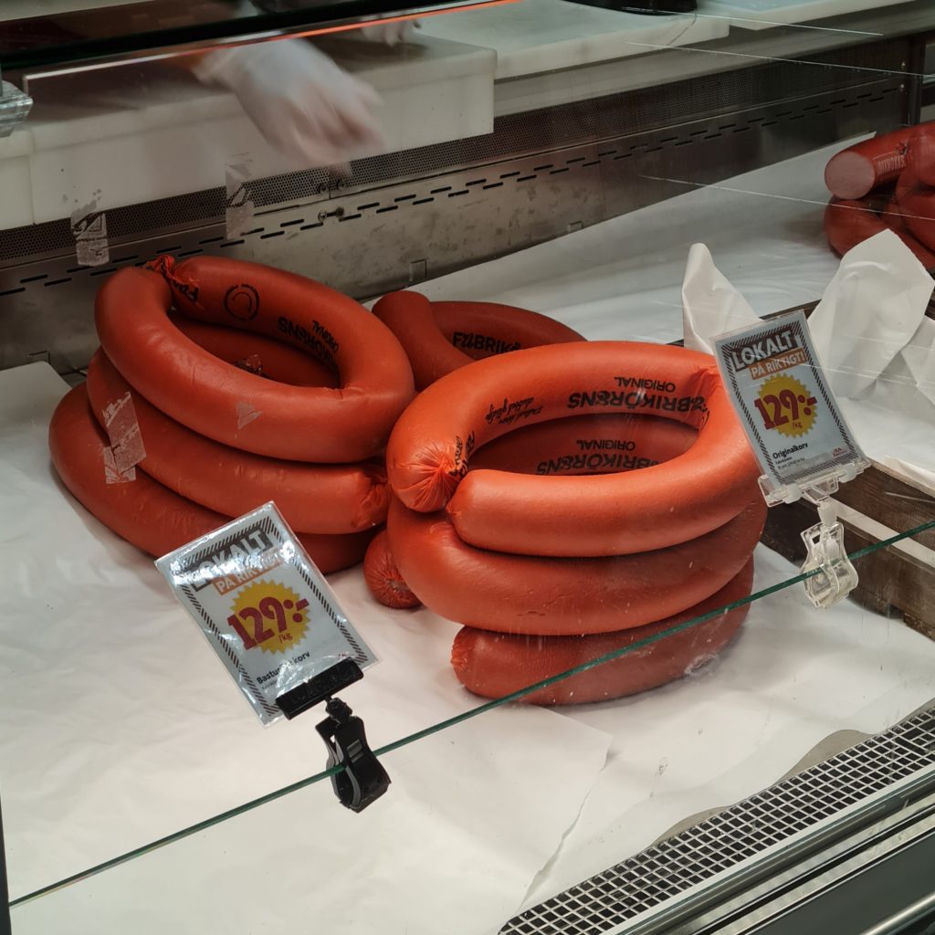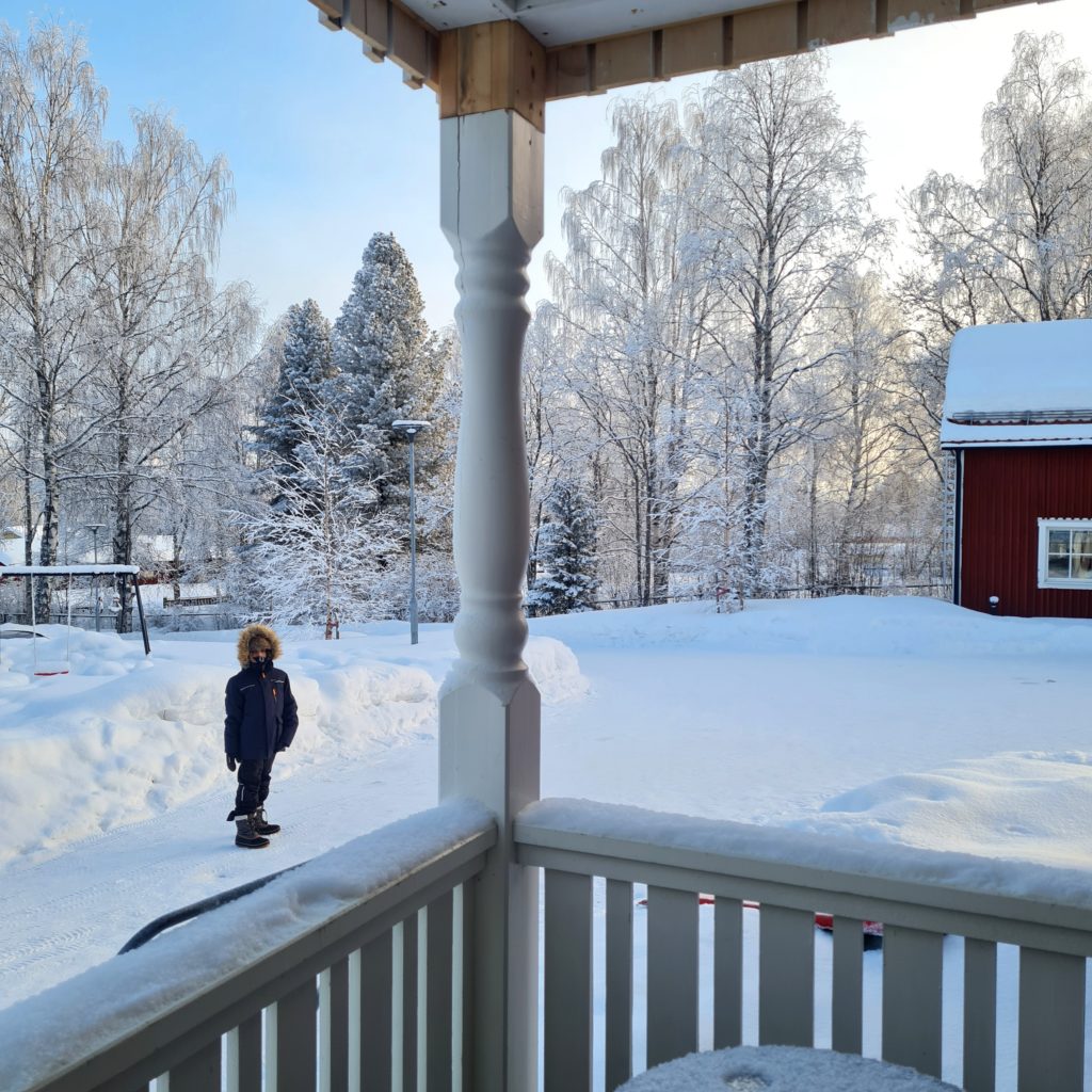 Nous partons faire des courses pour les 3 prochains jours car notre logement suivant, celui qui nous a fait rêver et qui nous a décidé à venir dans cette région de la Laponie, est à 60 km de là 1ère supérette. Autant dire que tu n’as pas intérêt à oublier le beurre !