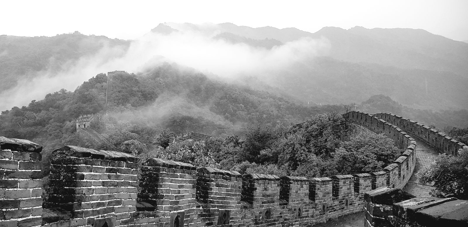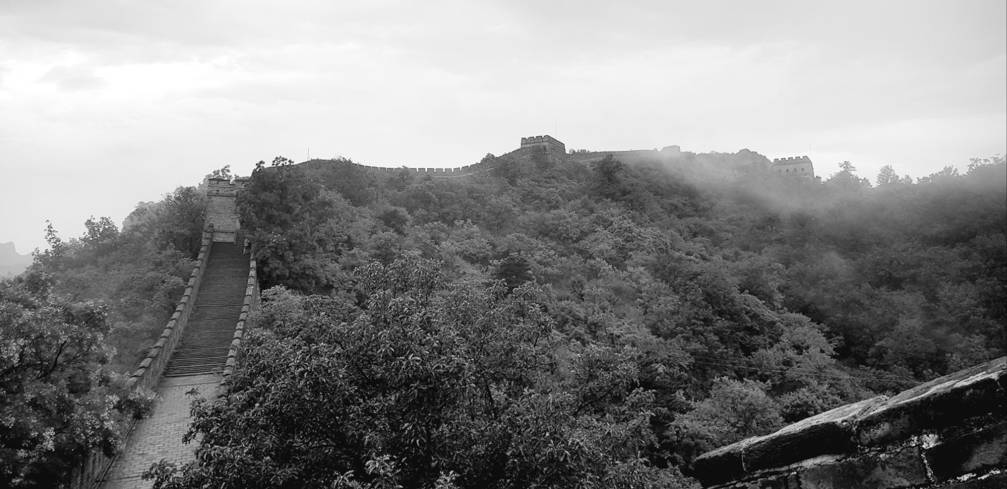 la muraille serpente au milieu des forêts de pins. Nous sommes quasiment seuls pour admirer ce site extraordinaire !