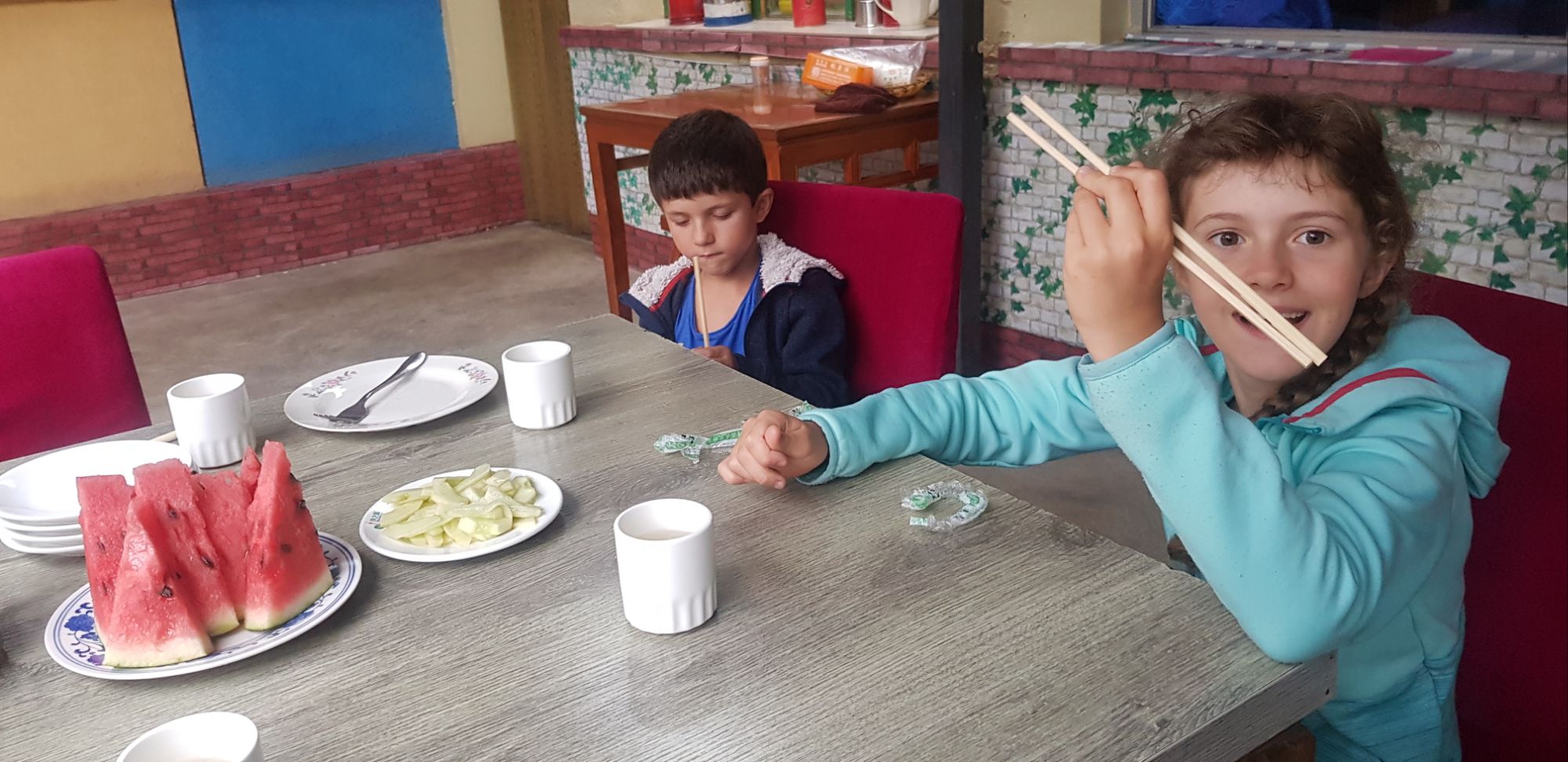 Nous nous prêtons au jeu et posons avec tous ceux qui nous le demande. Les enfants reçoivent des gâteaux et même des bonbons que les gens autour de nous viennent leur offrir !!!
