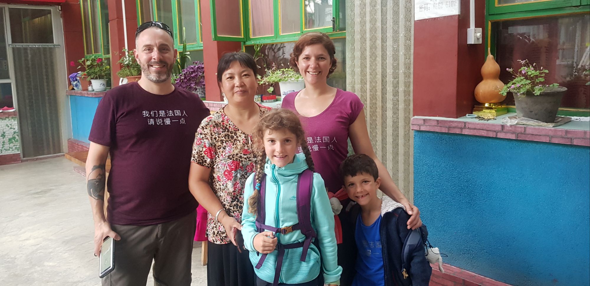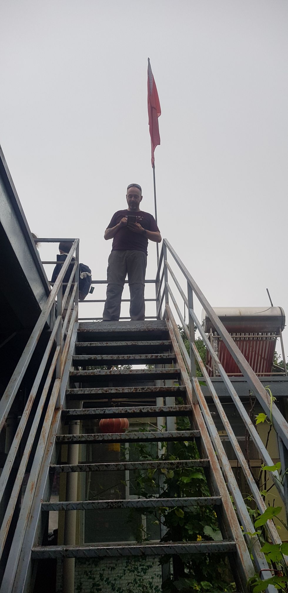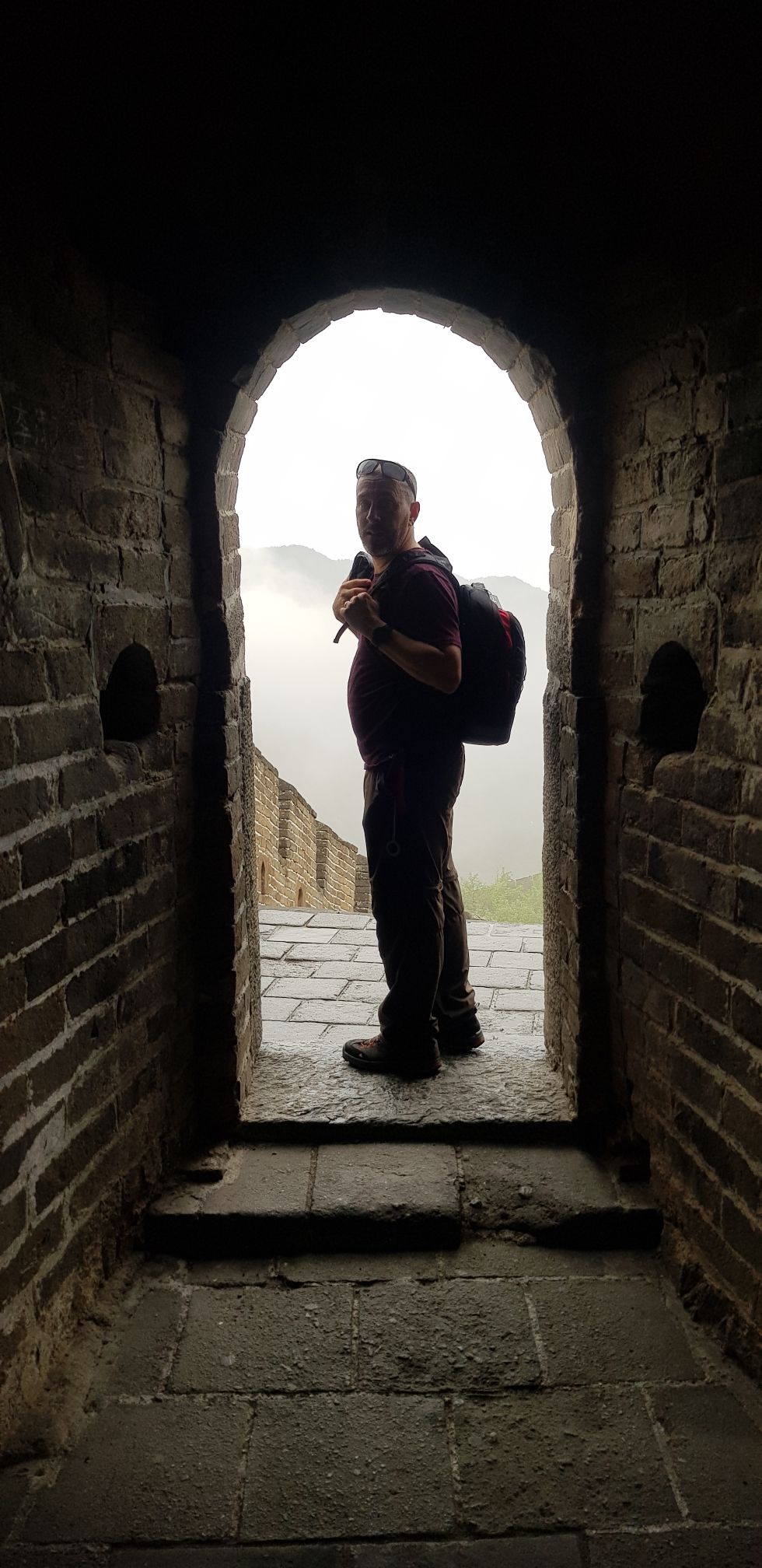 Après un petit déjeuner extrêmement bon pris dans notre auberge, nous partons en direction de la muraille. Le lieu ressemble à un parc d’attraction ! En Chine aujourd’hui, l’accès à la plupart des sites naturels sont réglementés et payants. Heureusement nous y sommes un peu avant 8h ce qui nous permet d’être vraiment dans un endroit désert. Nous montons à pied et gravissons les centaines de marches jusqu’à la muraille. 45 minutes de montée plus tard, je peux vous dire qu’on souffle et c’est en nage que nous atteignons la 1ère tour !