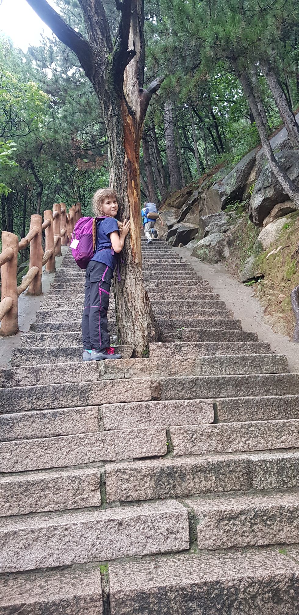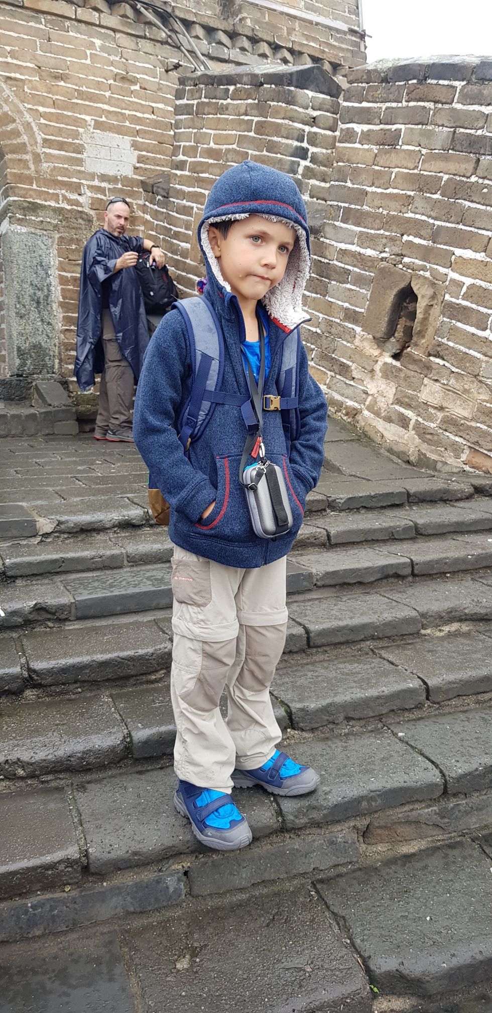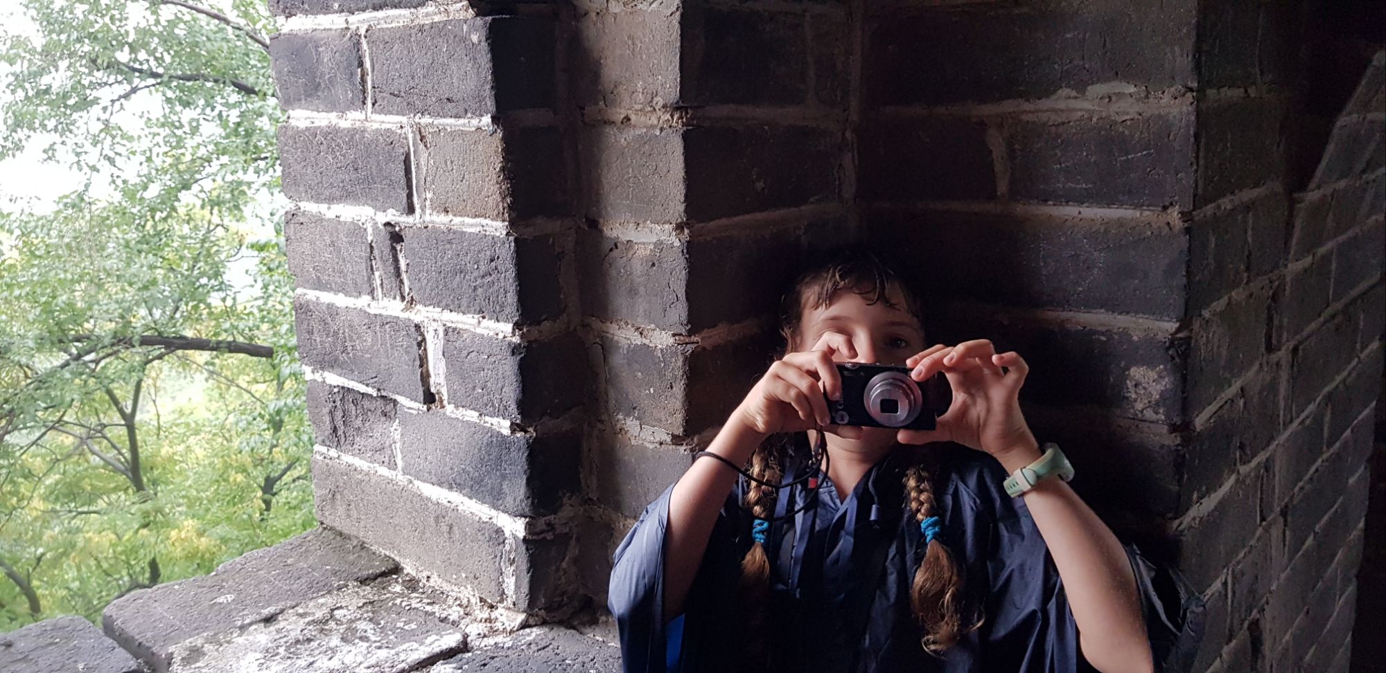 Nous décidons de nous promener sur un tronçon peu fréquenté, et malgré les averses de pluie, le paysage ici est sublime. Les enfants jouent dans les escaliers et les tours de garde, nous passons un moment inoubliable, malgré le temps maussade