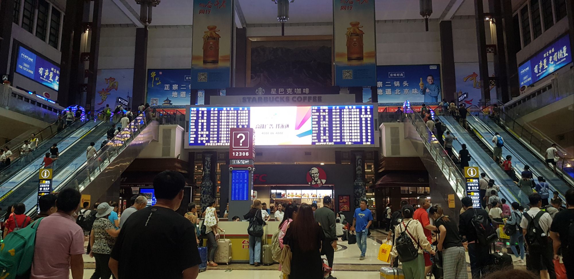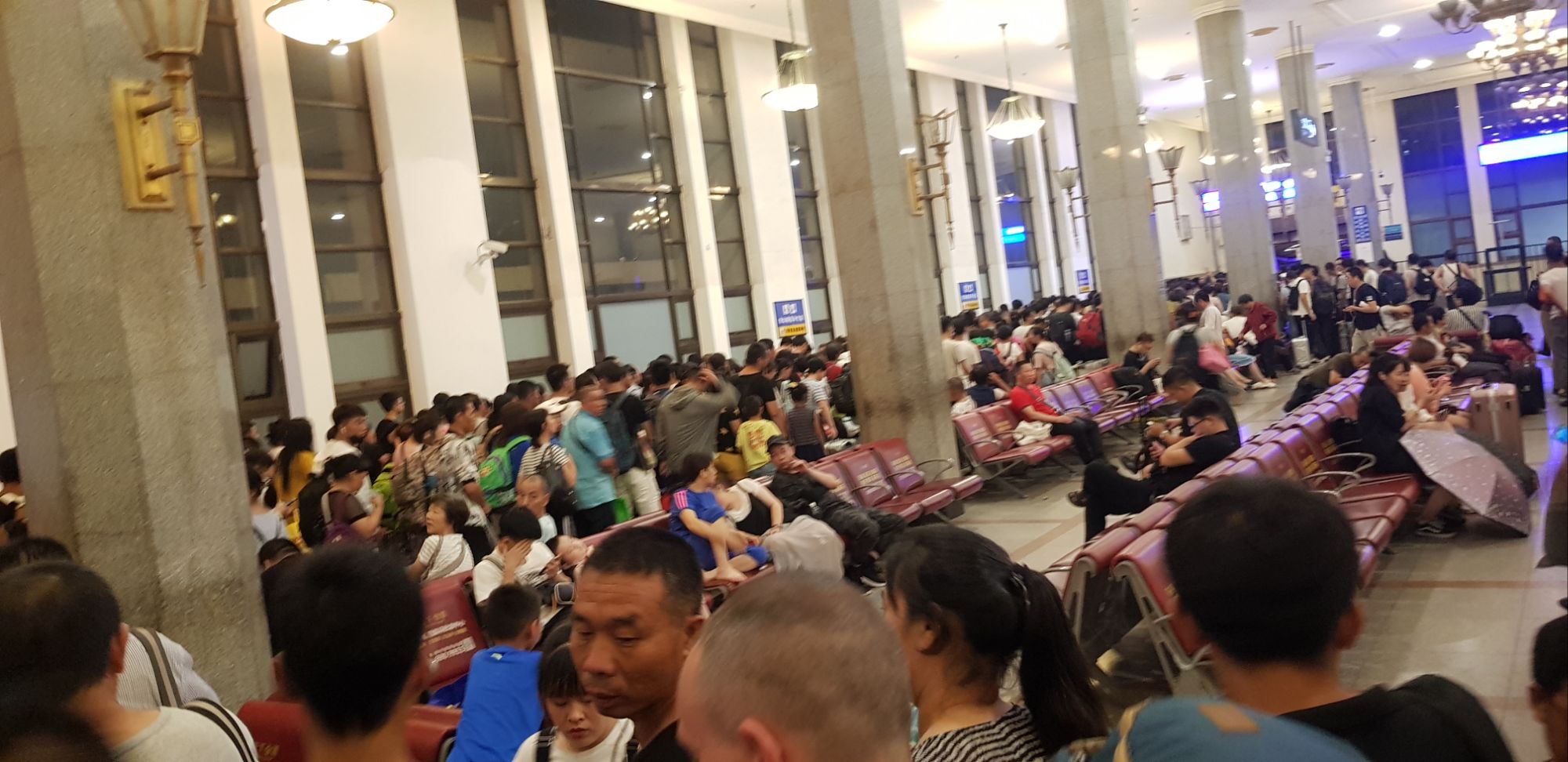 Une fois de retour à la gare, nous sommes surpris par ce qui nous attend !! On avait lu sur des forums de voyageurs que prendre le train en Chine était une aventure…c’est au-delà !!! Des milliers de personnes grouillent dans ce lieu, ça crie dans tous les sens, ça parle au micro sans arrêt, c’est hallucinant !