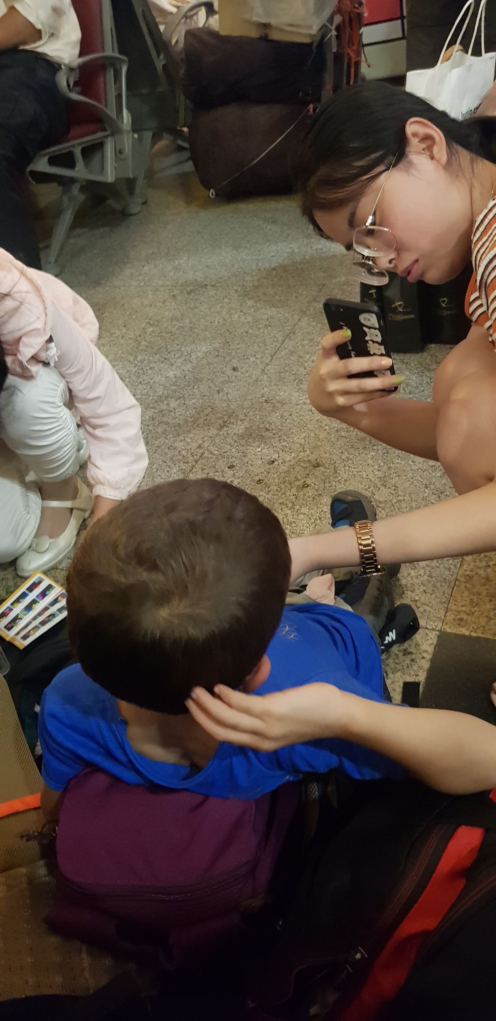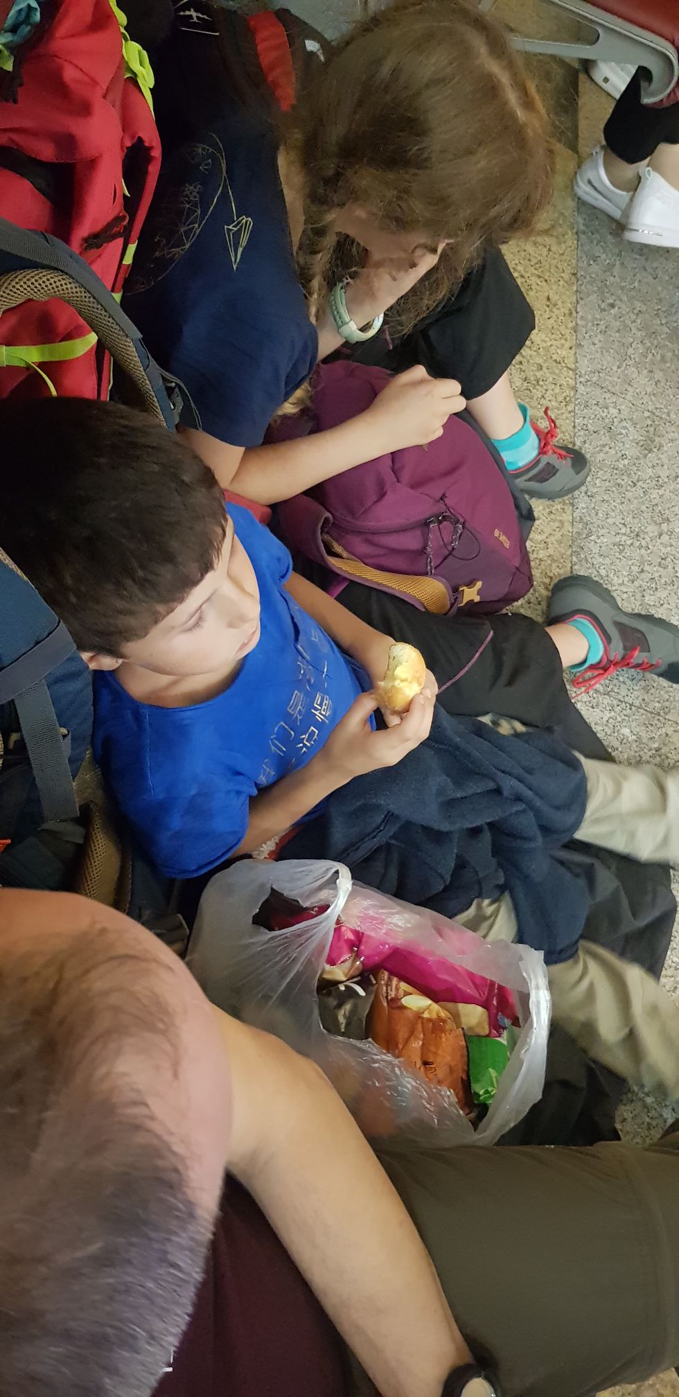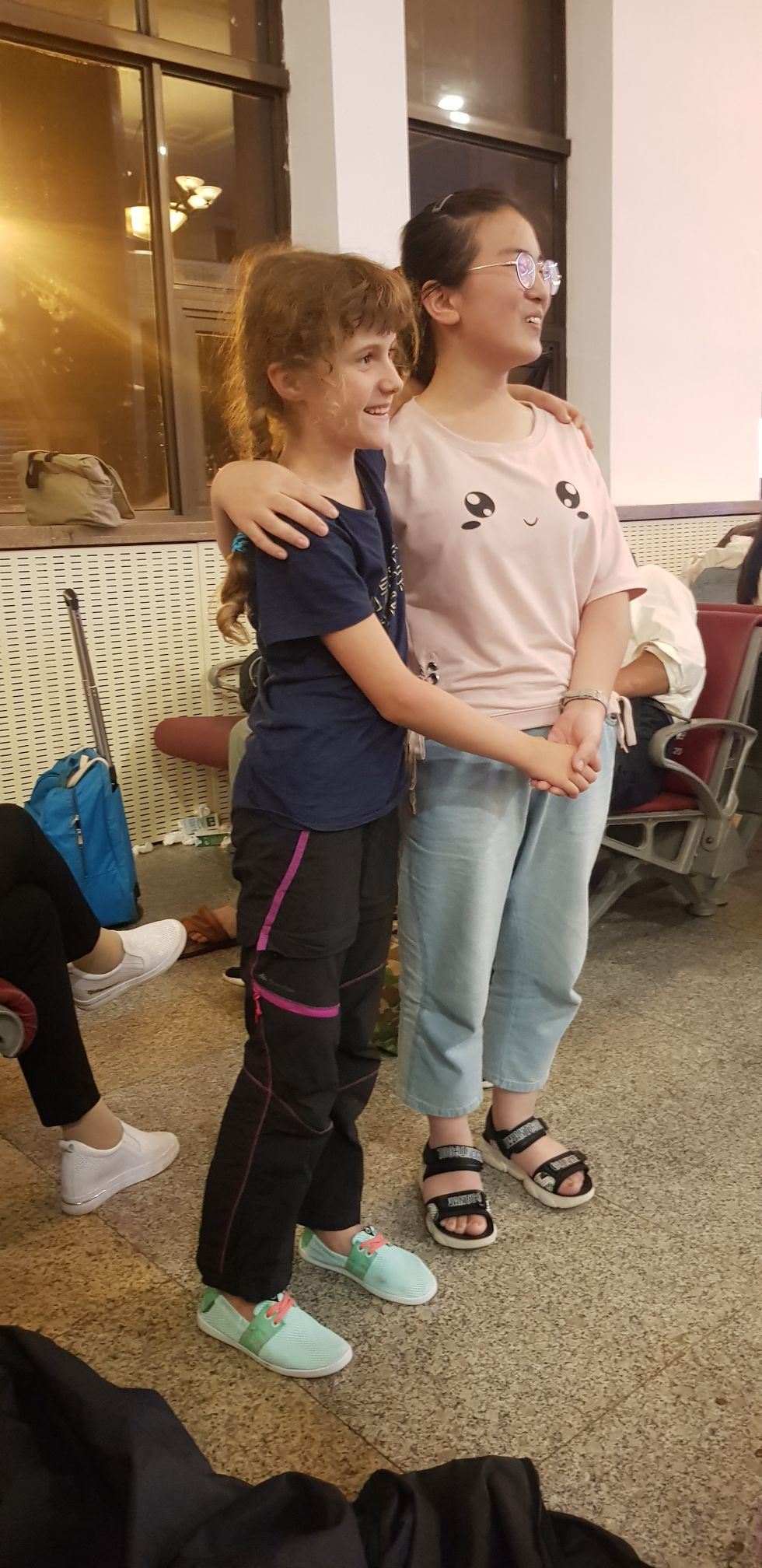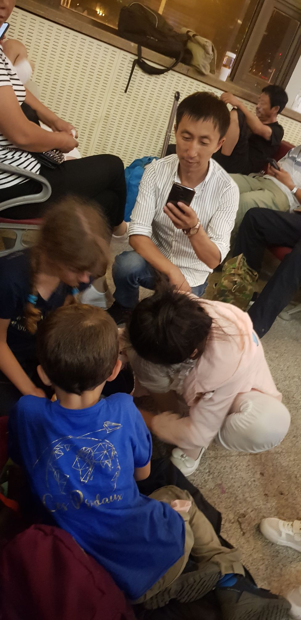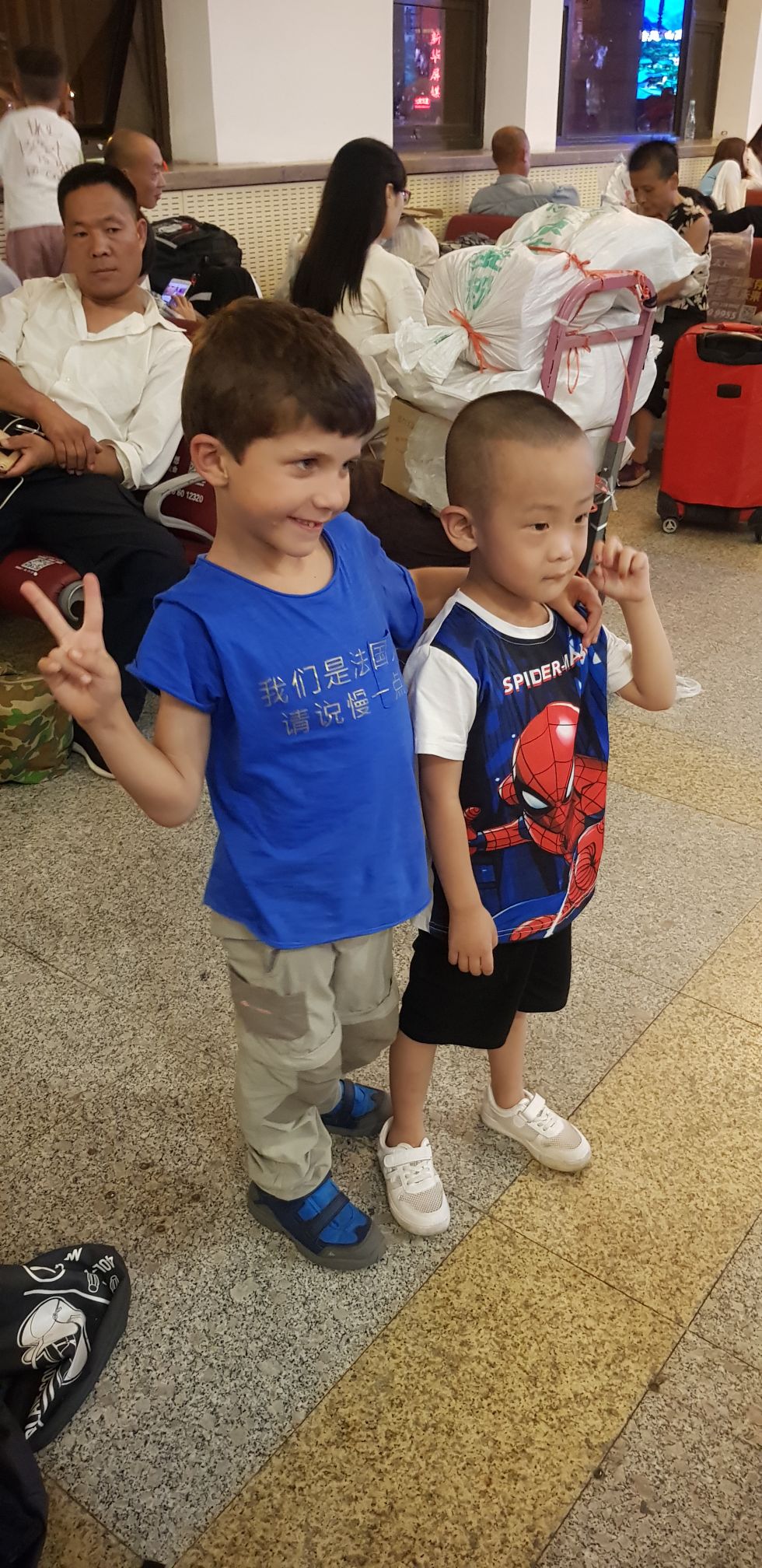 Nous allons dans un « salon d’attente » pour attendre notre train, un grand hall blindé de monde ! Quand nous entrons, des centaines de paires d’yeux se tournent vers nous, c’est flippant !!!!!