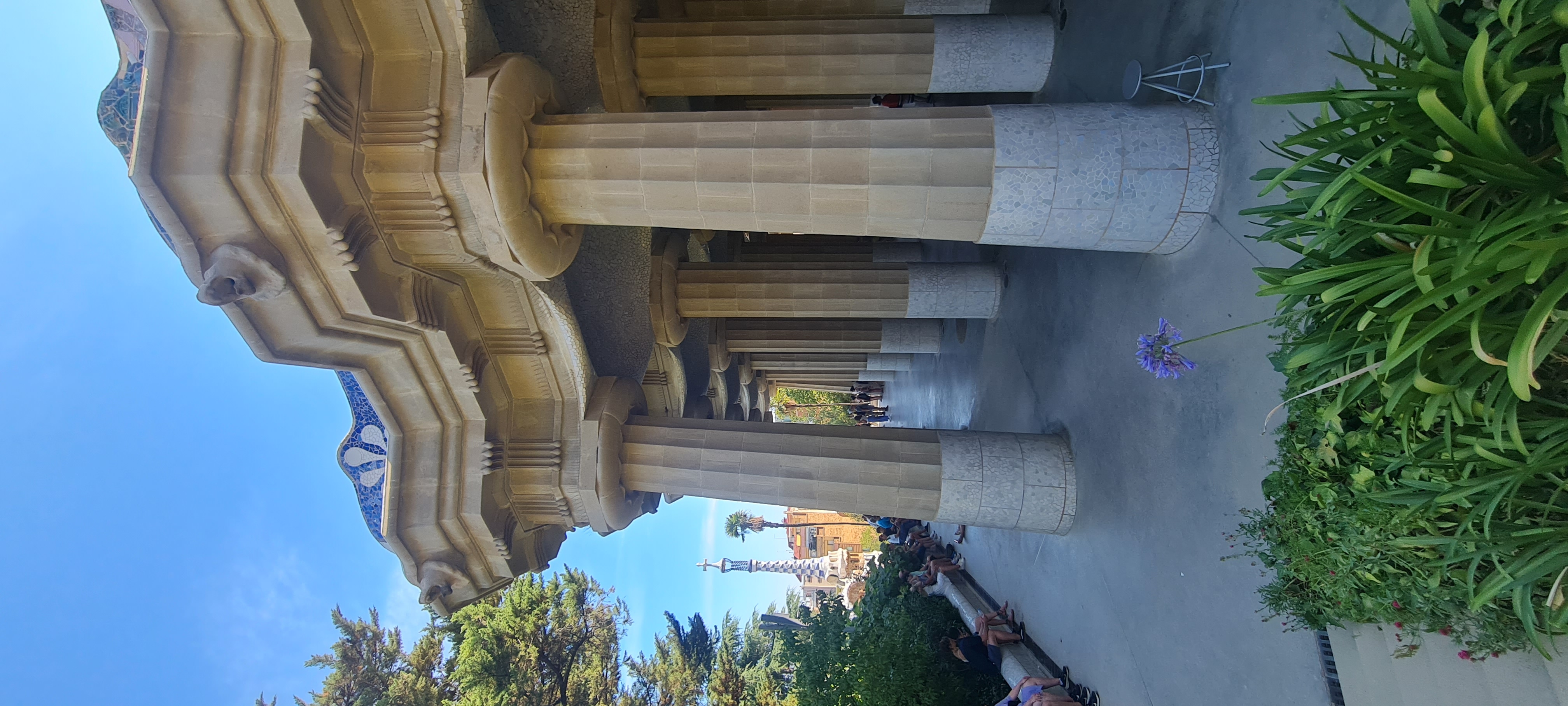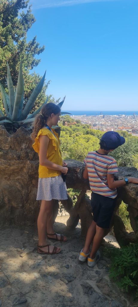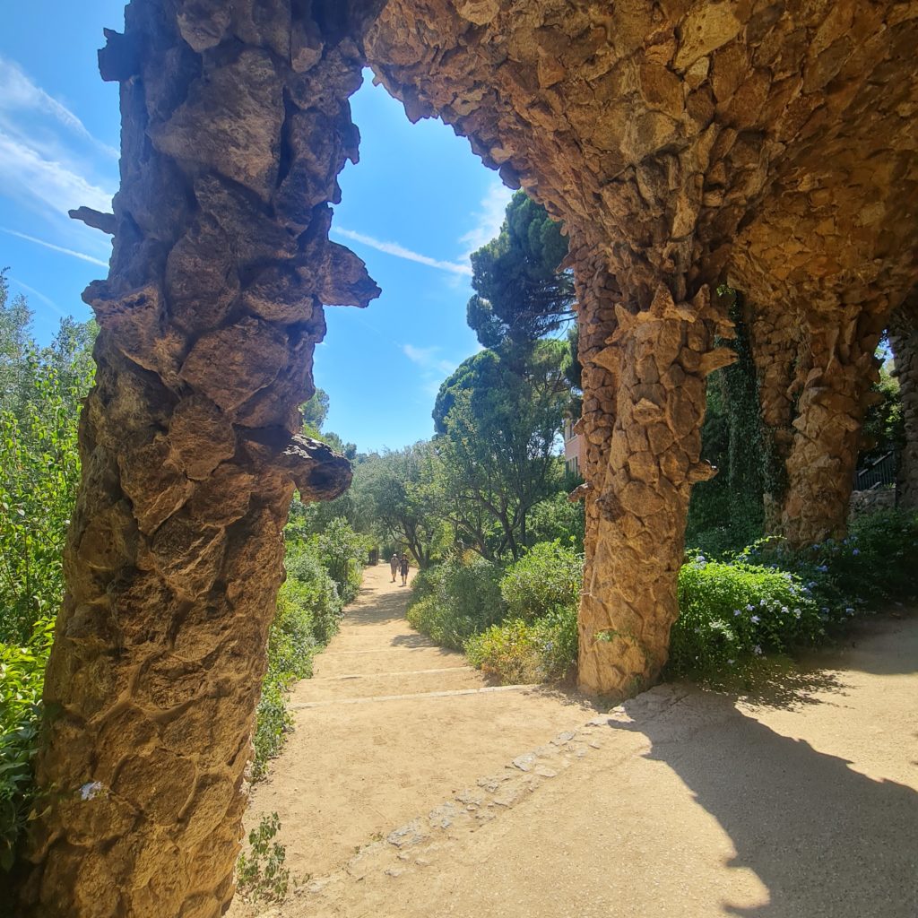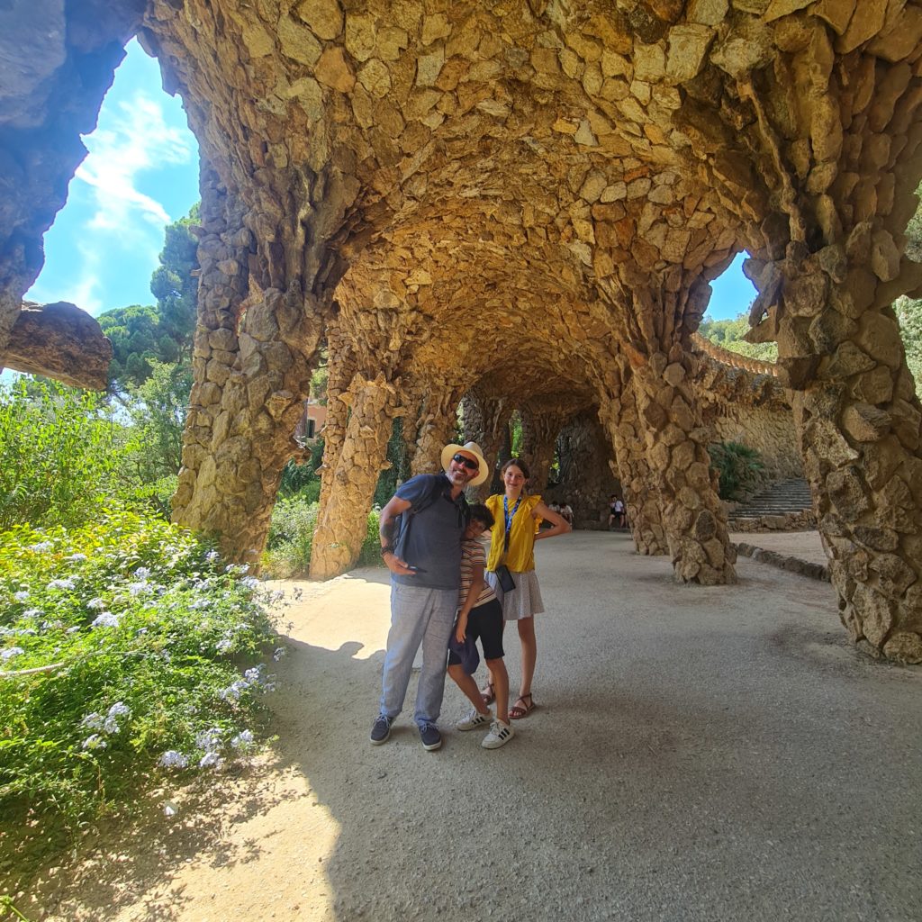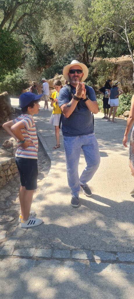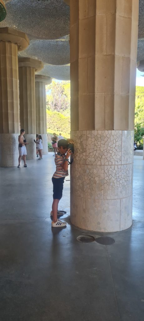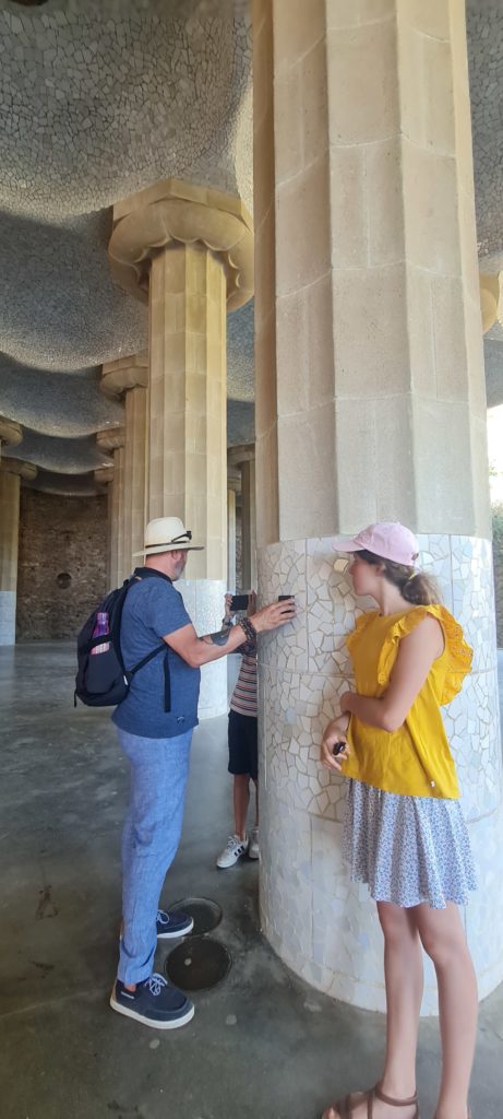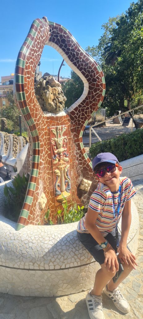 Nous flânons dans le jardin en découvrant le travail de Gaudi, c’est super sympa !