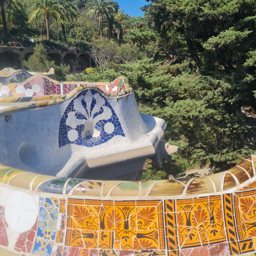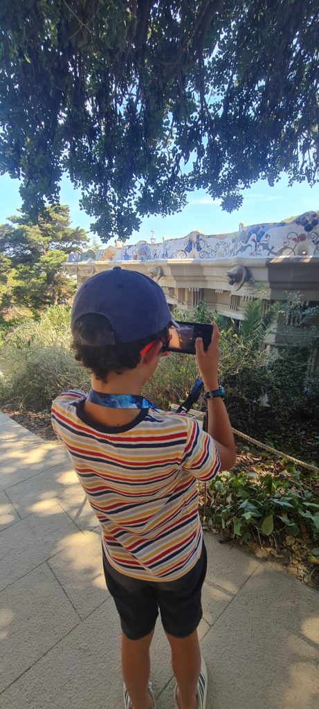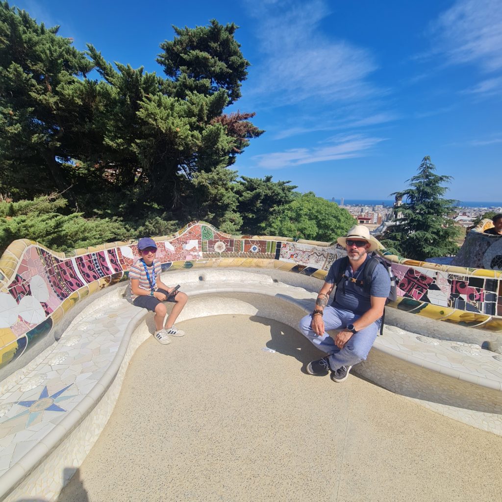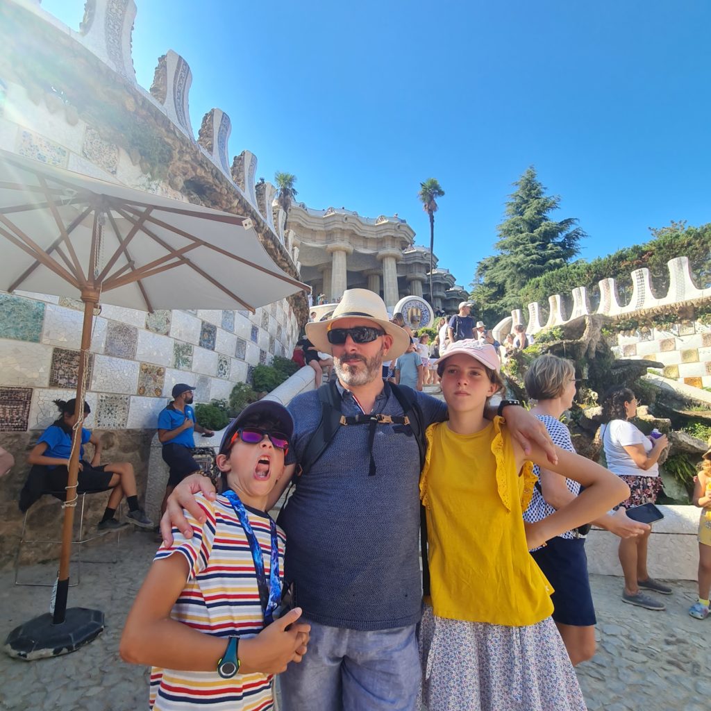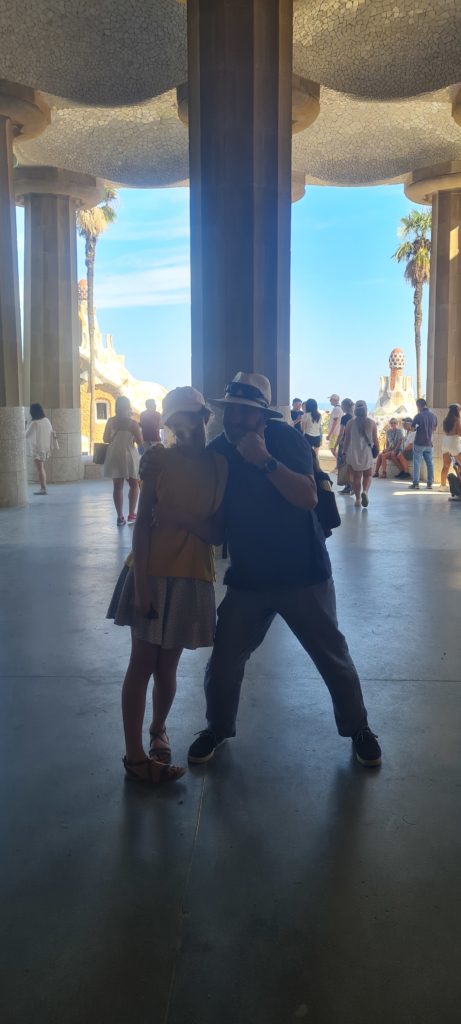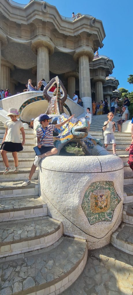 Nous flânons dans le jardin en découvrant le travail de Gaudi, c’est super sympa !
