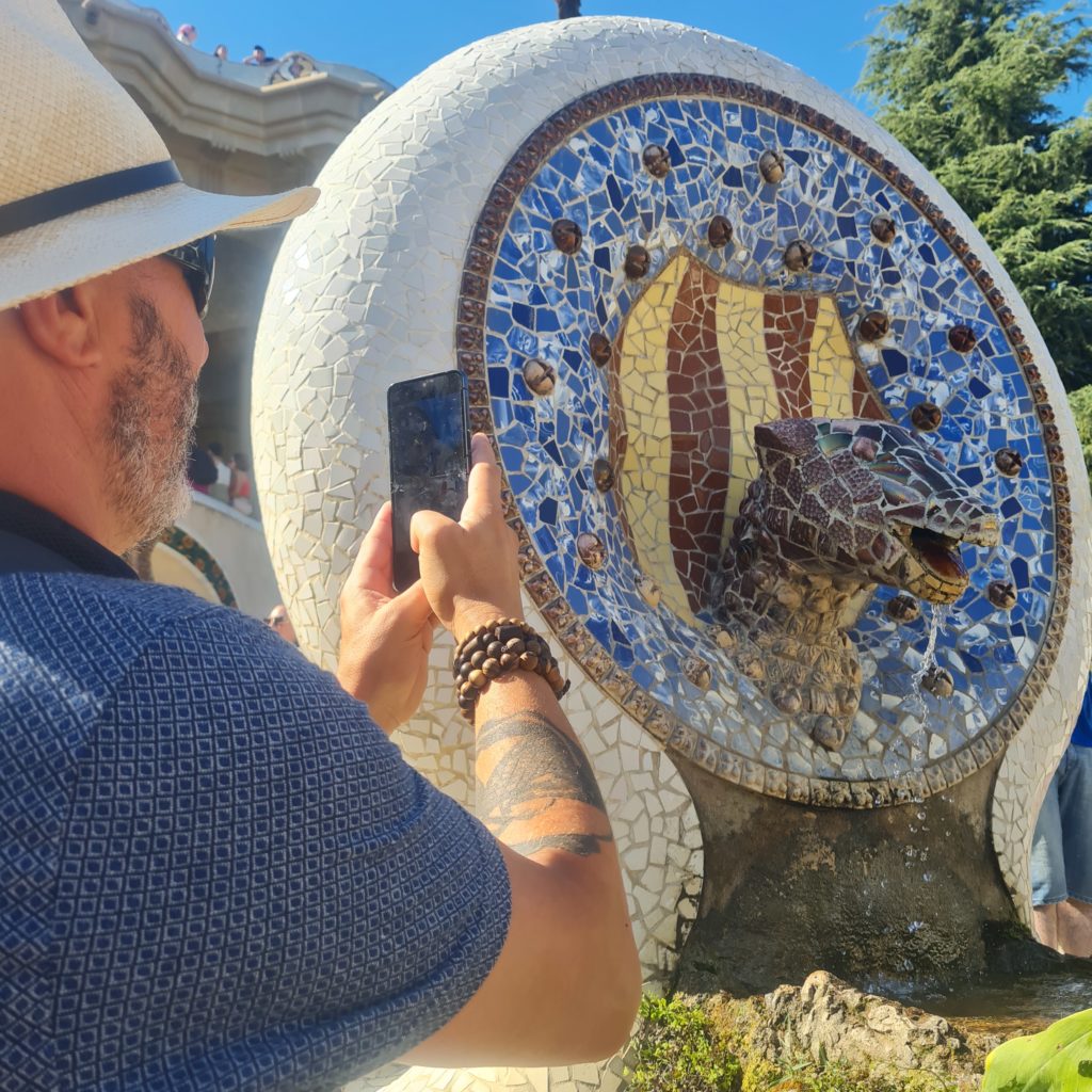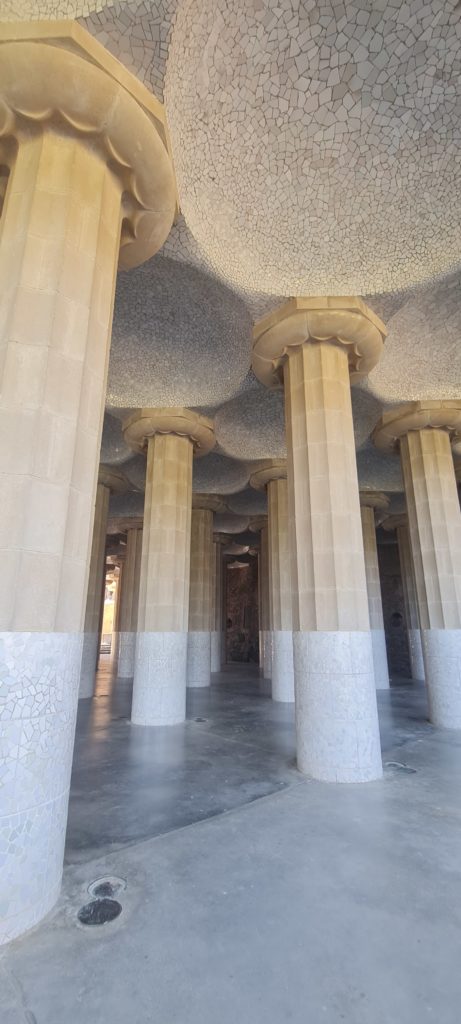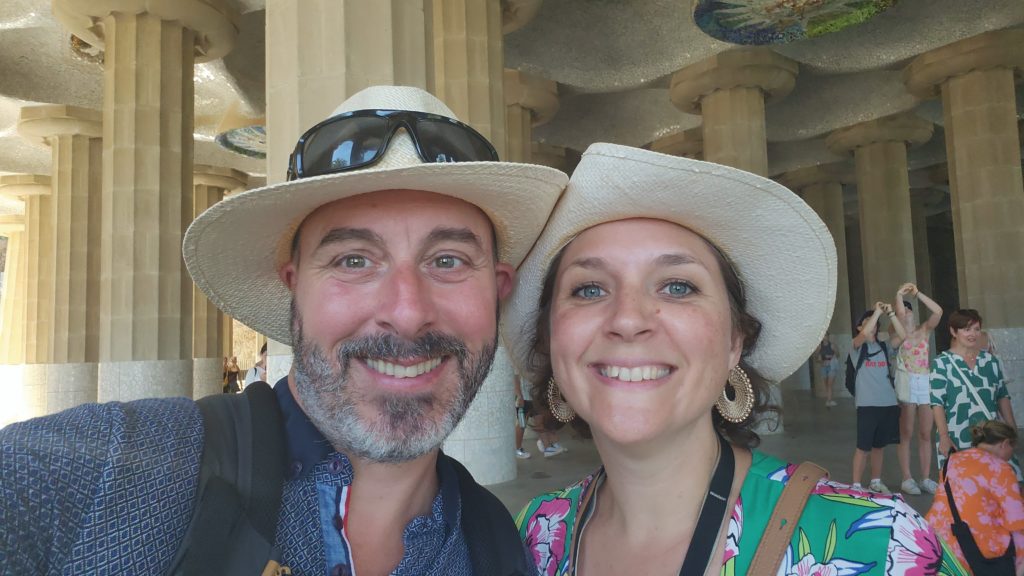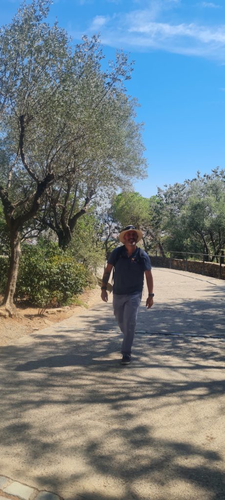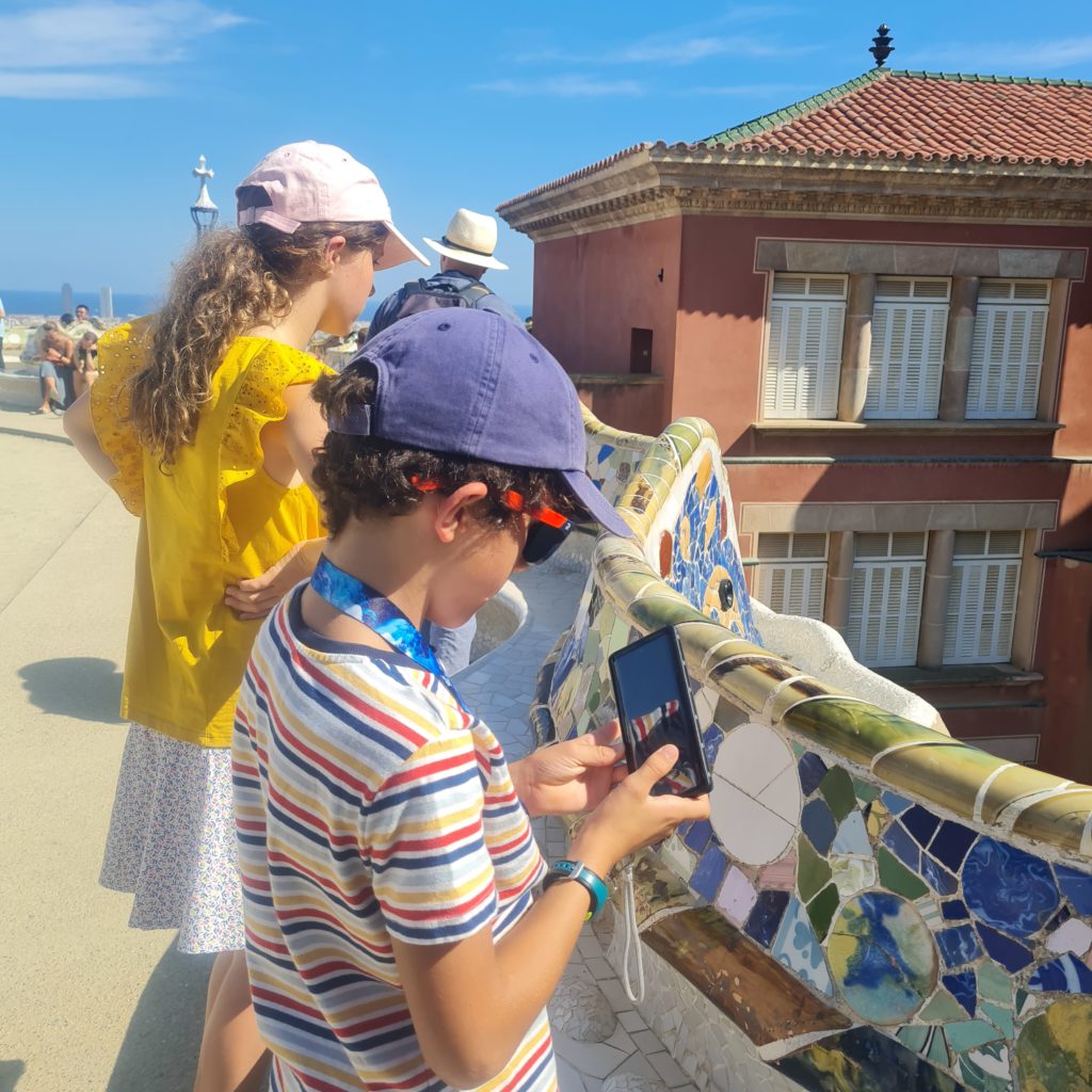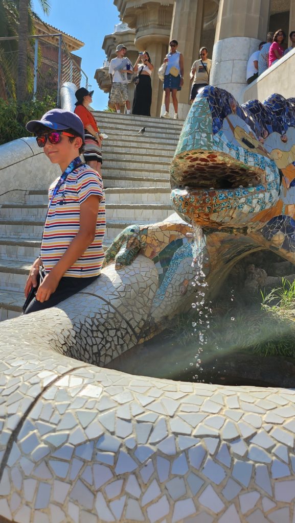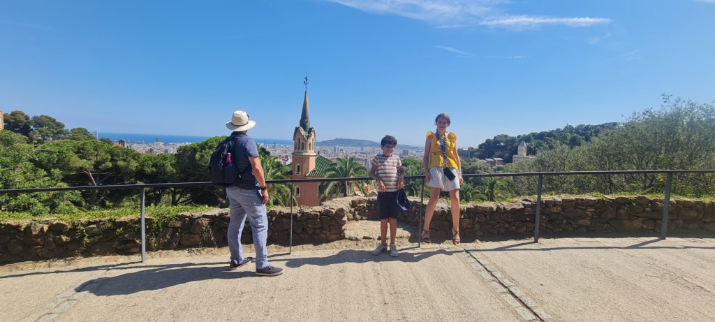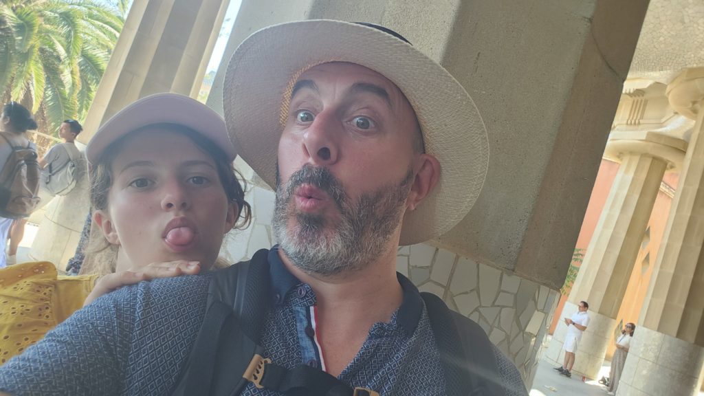Nous flânons dans le jardin en découvrant le travail de Gaudi, c’est super sympa !