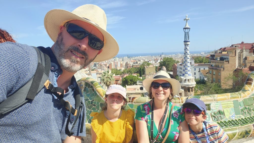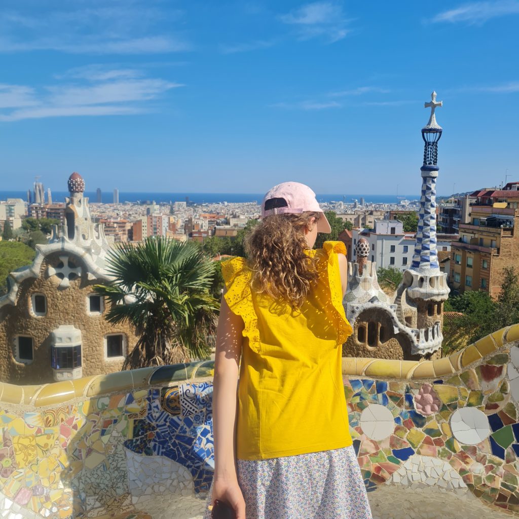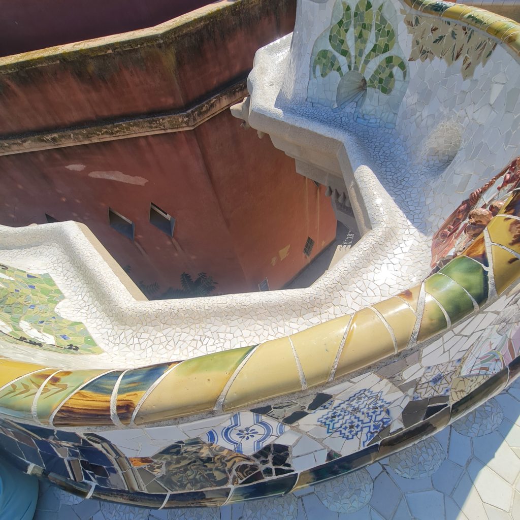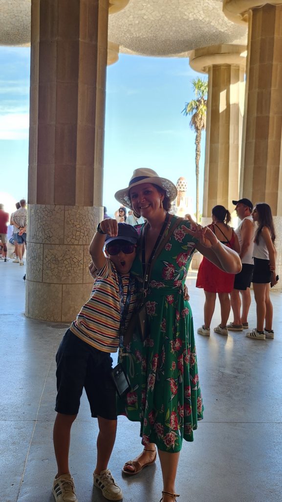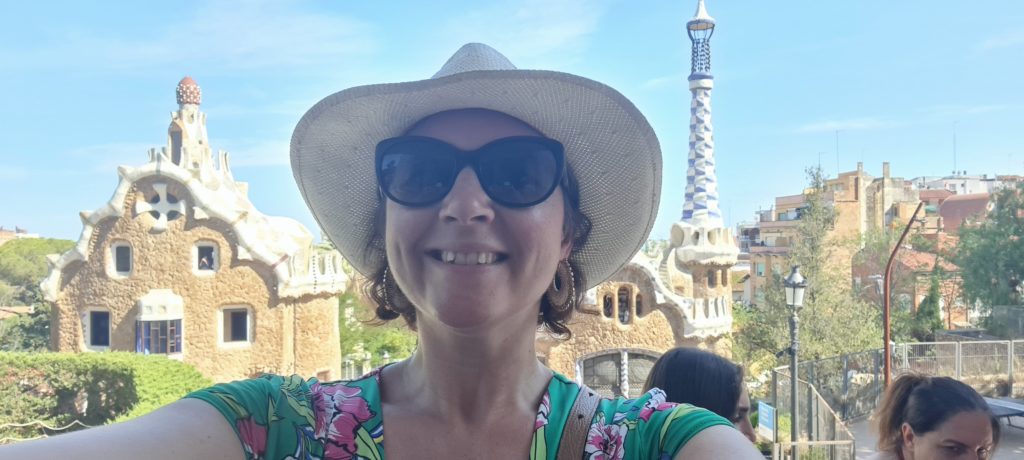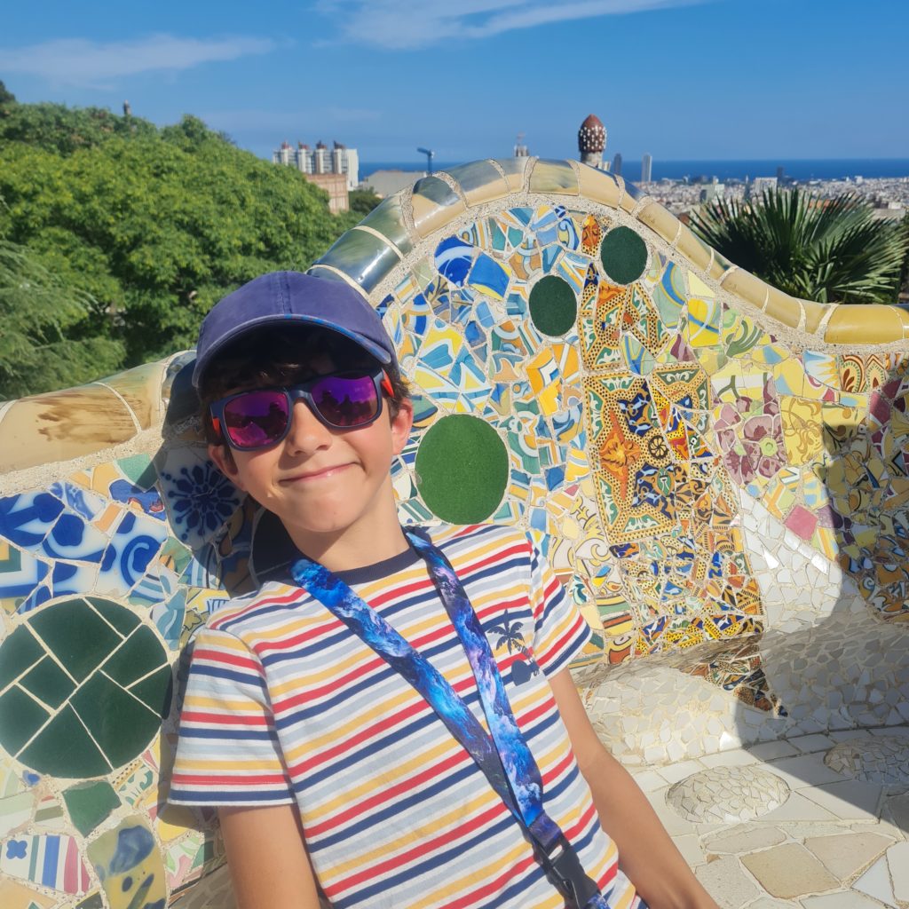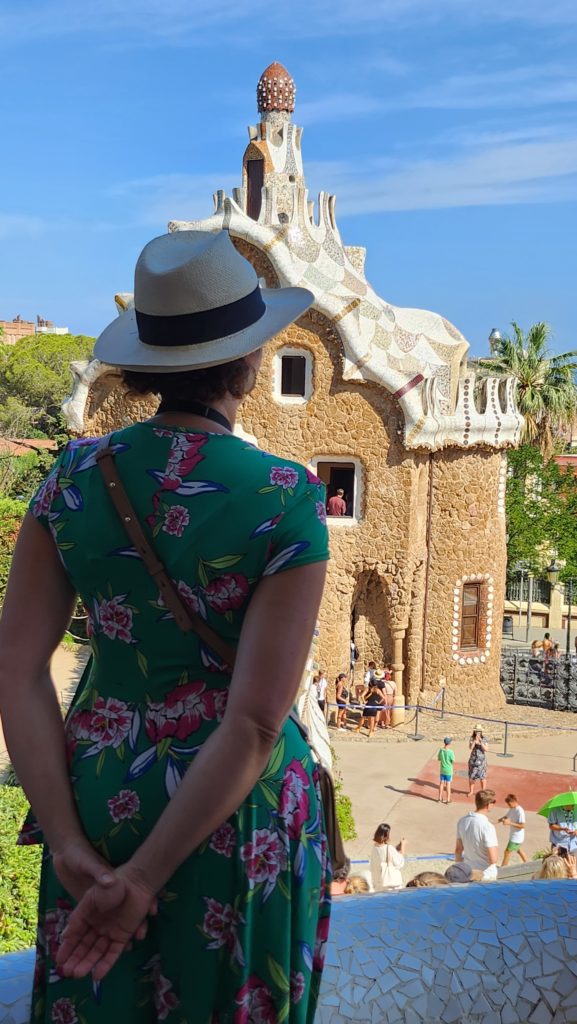 Nous flânons dans le jardin en découvrant le travail de Gaudi, c’est super sympa !