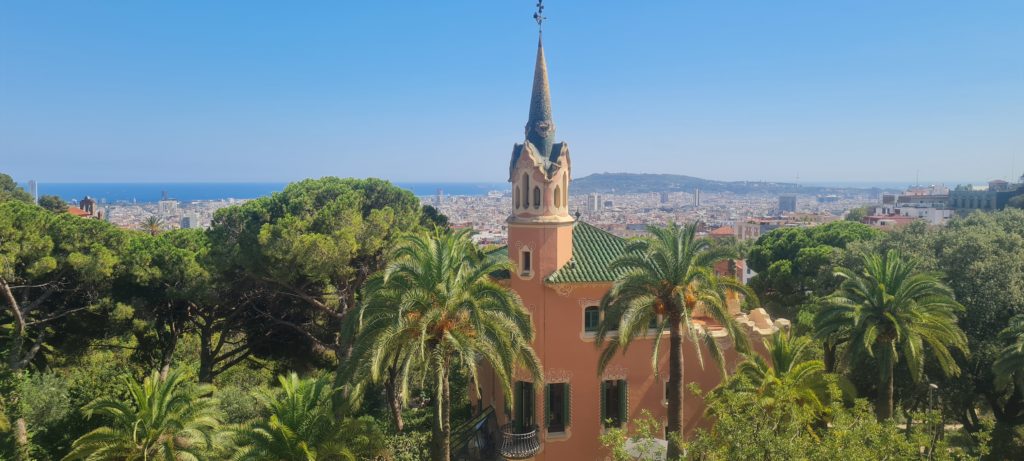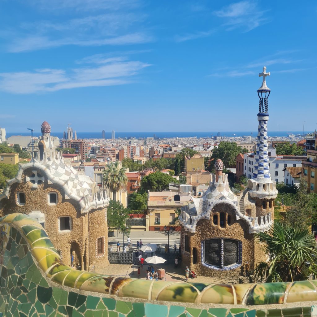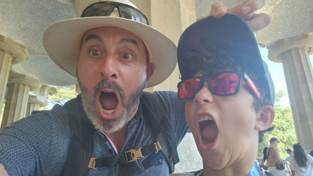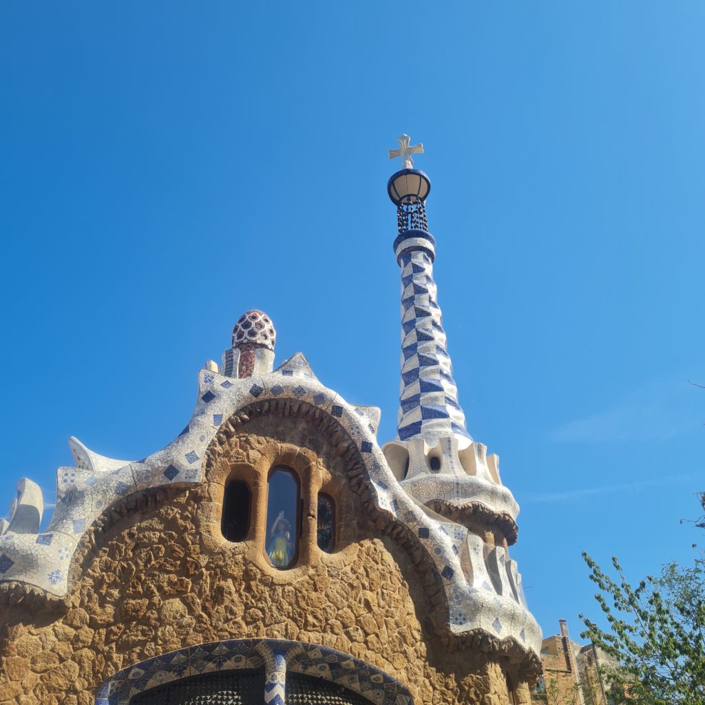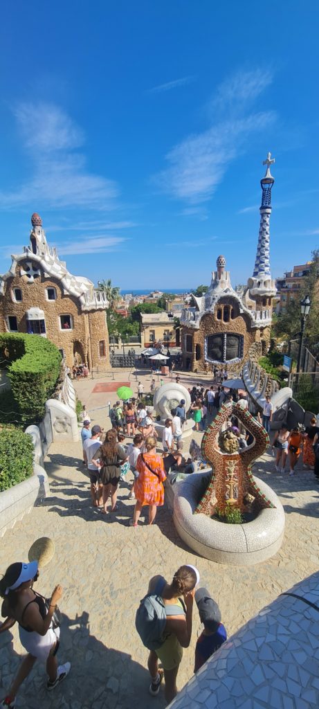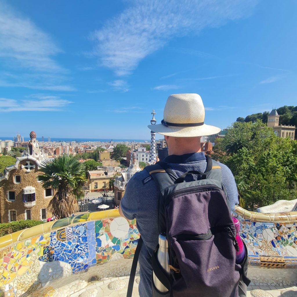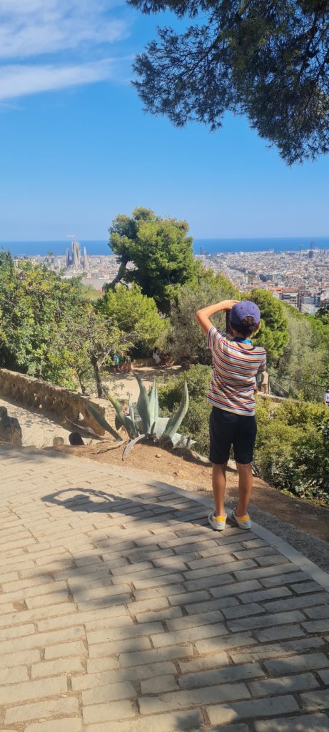 Nous flânons dans le jardin en découvrant le travail de Gaudi, c’est super sympa !