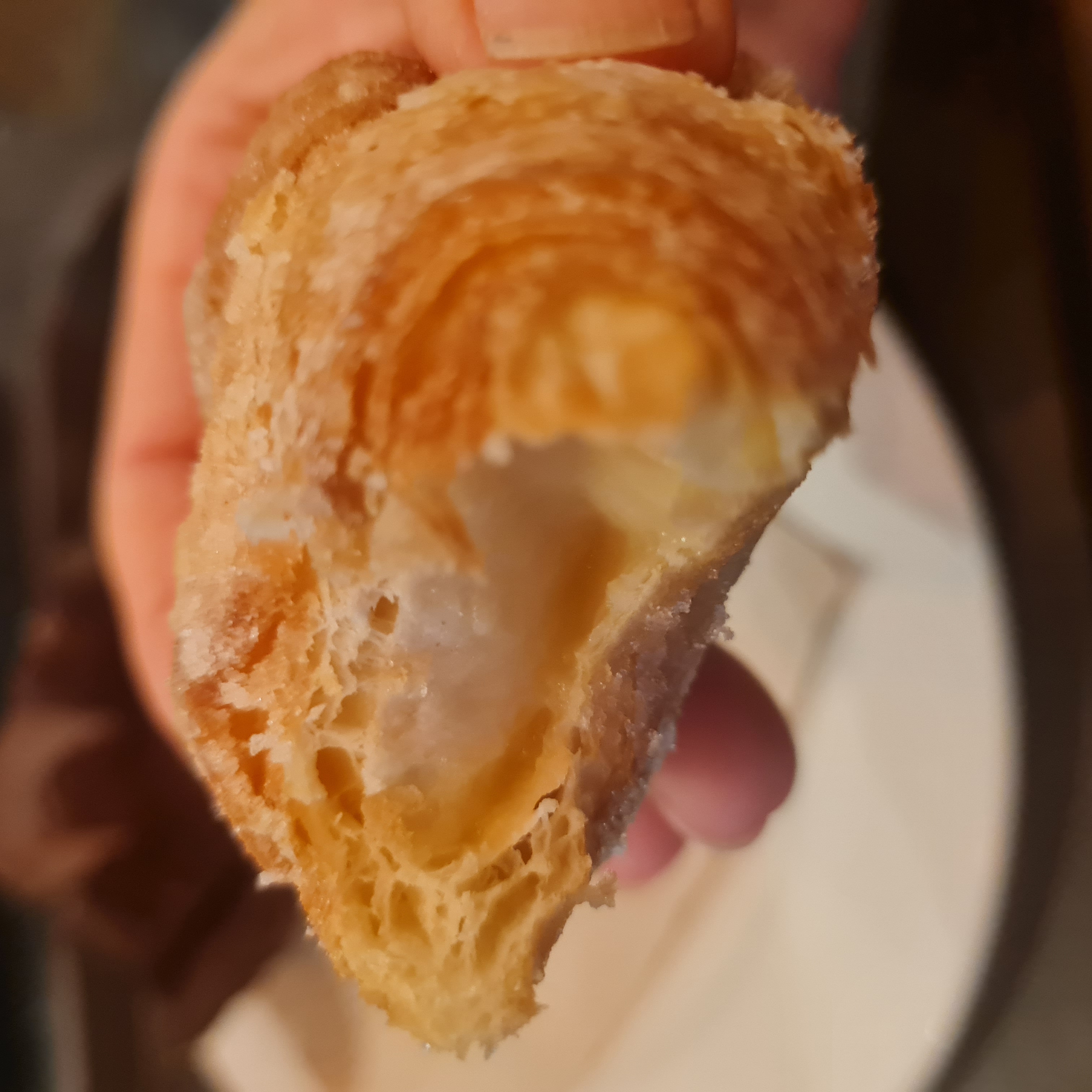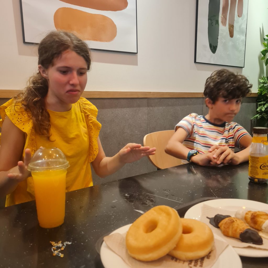 Nous nous arrêtons dans un salon de thé prendre un jus frais et un goûter local : croissants au sucre et au chocolat…mmmh, que du light ! La serveuse tient absolument à ce que je goûte le croissant fourré à la crème ! J’en prends un mini, c’est vrai que c’est délicieux, mais bon !!