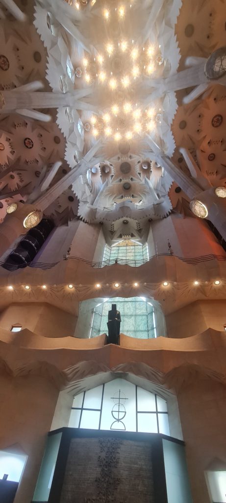 À 19h, nous avons notre créneau d’entrée dans la Sagrada Familia. Et oui, depuis quelques années, l’entrée de la cathédrale est devenue payante, ce qui permet d’accélérer grandement l’avancée des travaux. Nous passons un système de sécurité digne d’un aéroport, nous ne nous attendions pas à cela !
