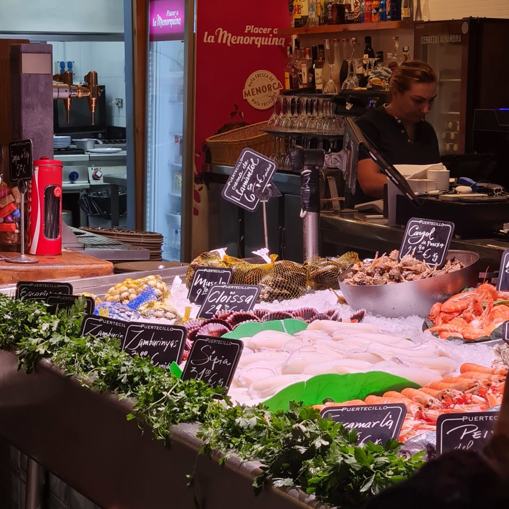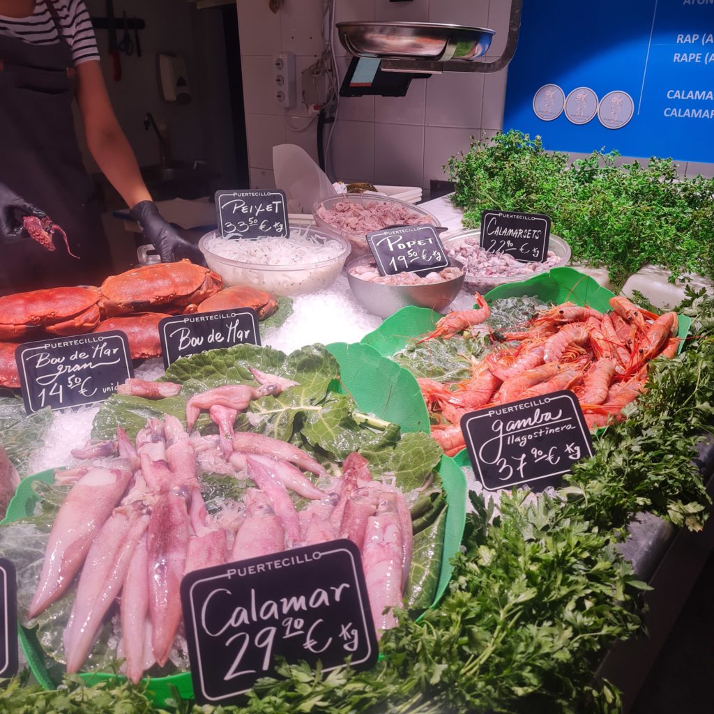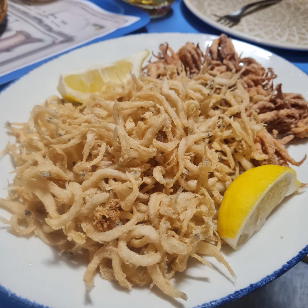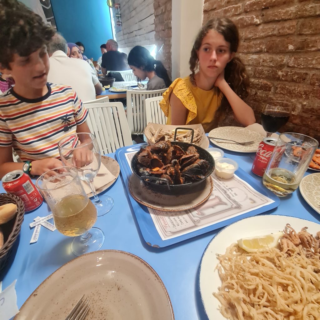 Des sardines frites, des moules sauce tomate, du thon, des petits poulpes frits, des gambas à la plancha, c’est délicieux ! Avec une bière bien fraîche, on se régale !
