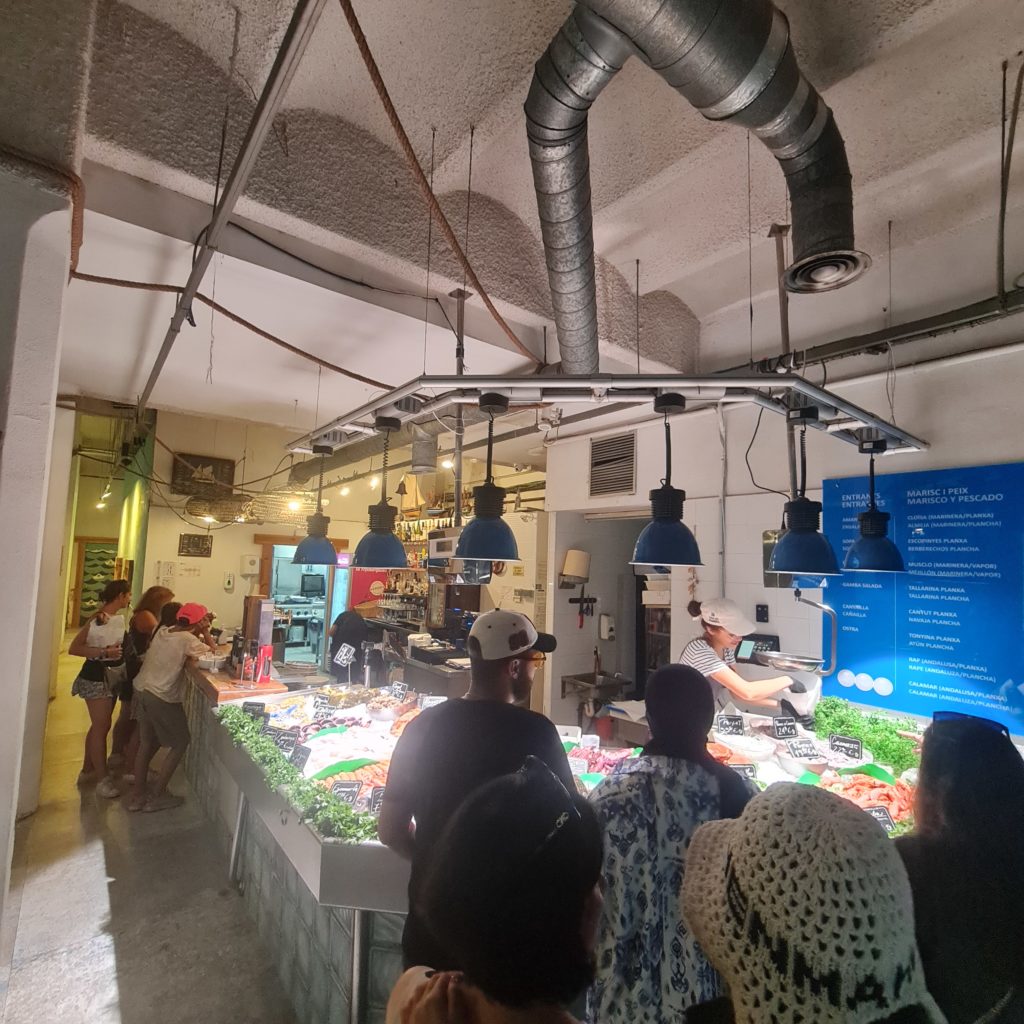 Le restaurant a toujours autant de succès (mais ce ne sont plus les barcelonais qui viennent ici, plutôt des touristes), on fait un peu la queue avant de pouvoir choisir et s’installer à une table.