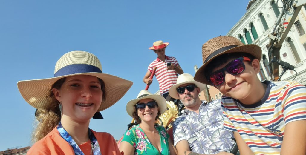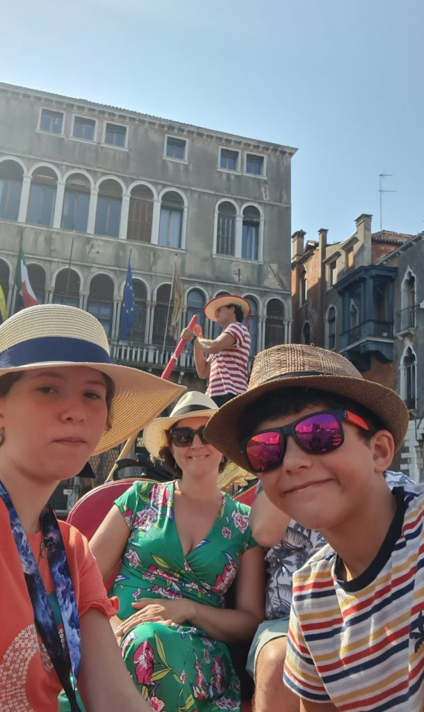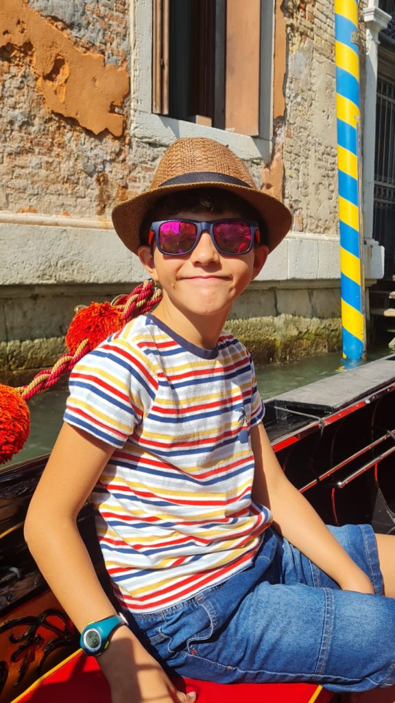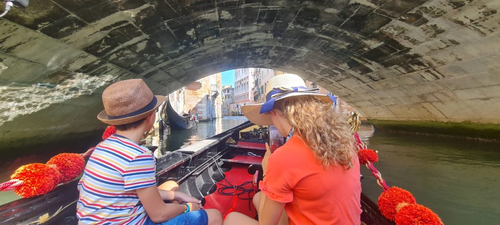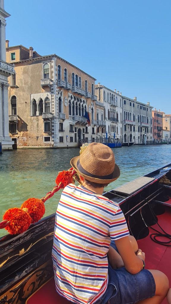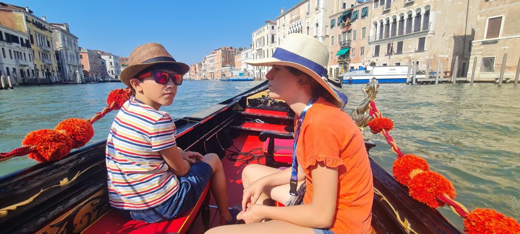 Il ne fait pas encore très chaud, nous décidons de faire un tour en gondole. La balade est gentillette, le gondolier peu intéressant, mais les enfants sont contents d’être enfin montés dans ce bateau si renommé !