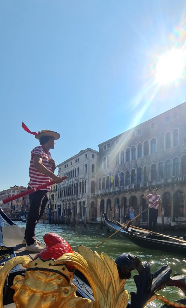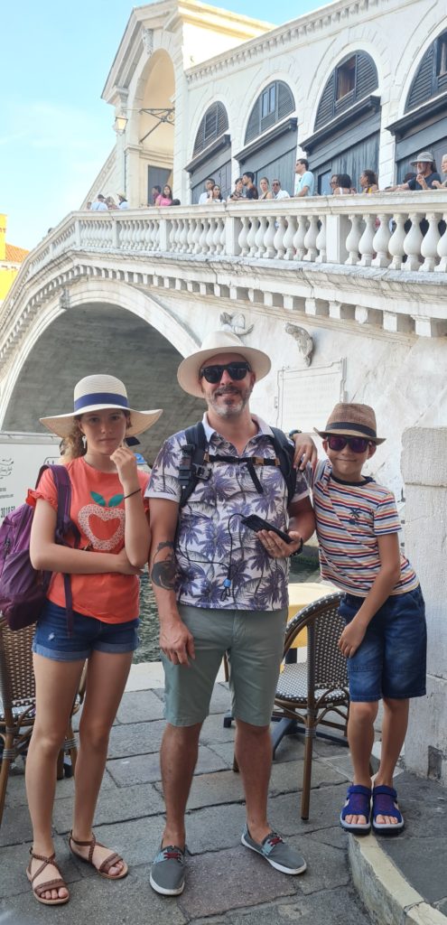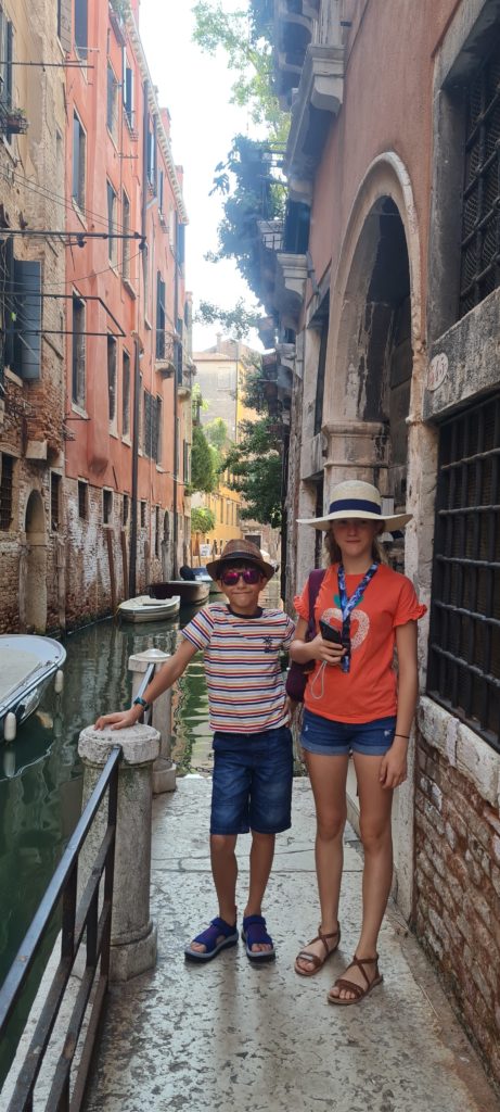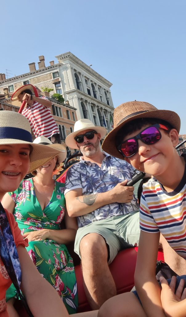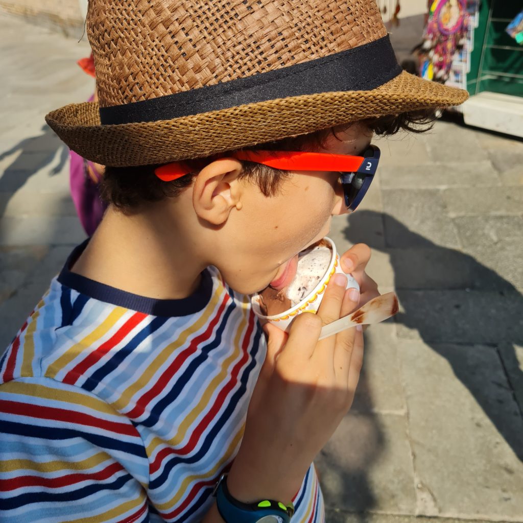 Il ne fait pas encore très chaud, nous décidons de faire un tour en gondole. La balade est gentillette, le gondolier peu intéressant, mais les enfants sont contents d’être enfin montés dans ce bateau si renommé !