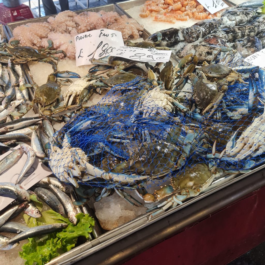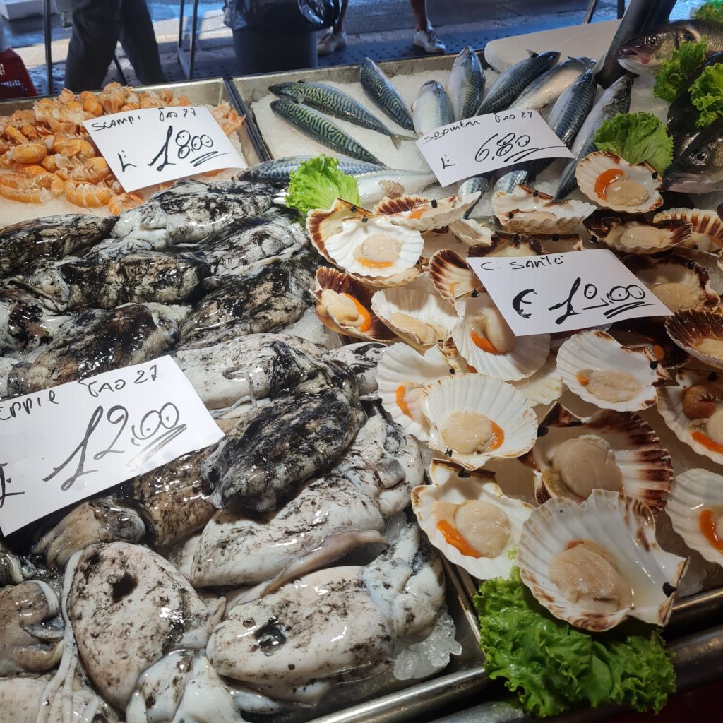 Le marché aux poissons est assez petit, les vendeurs sont en train d’écailler et de préparer leurs poissons. Les italiennes du quartier sont venues faire leurs commissions, il ne faut pas les déranger !