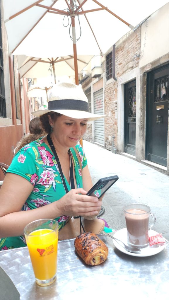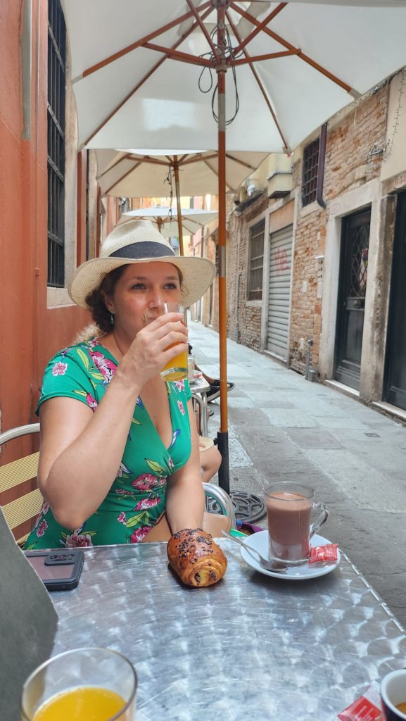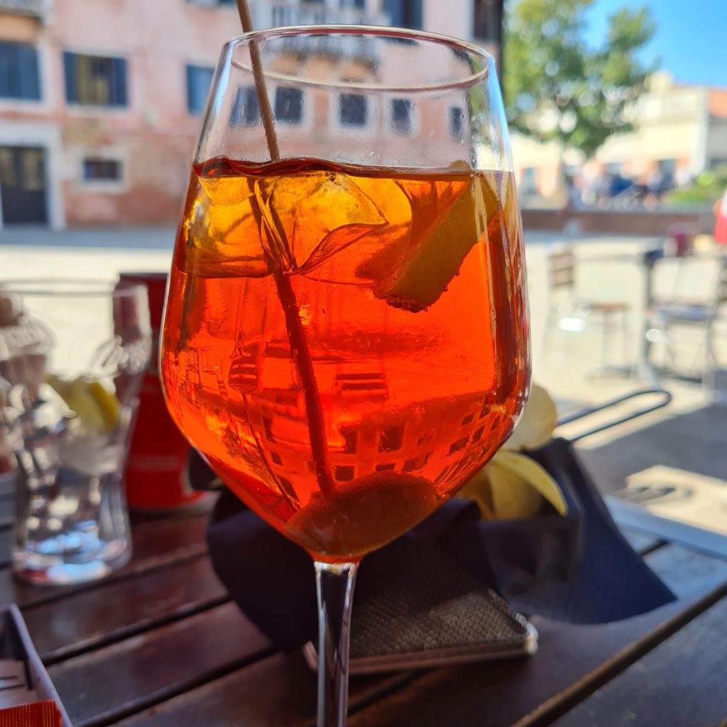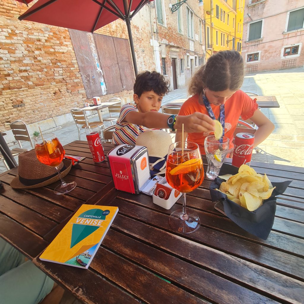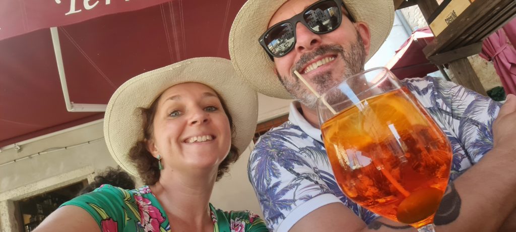 Il est l’heure, nous faisons une pause sur une terrasse de café pour goûter au fameux spritz et regardons les gens passer ! J’adore ça (regarder les gens, pas le spritz…un peu trop amer à mon goût) !