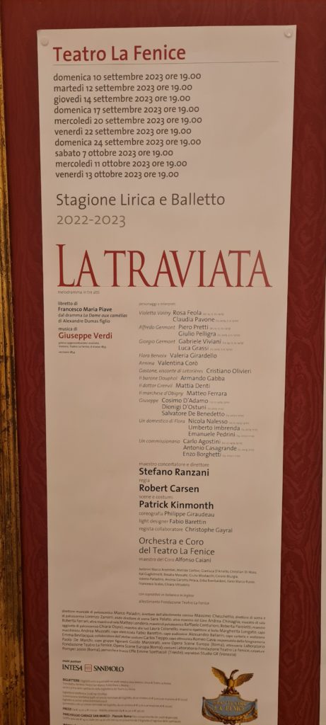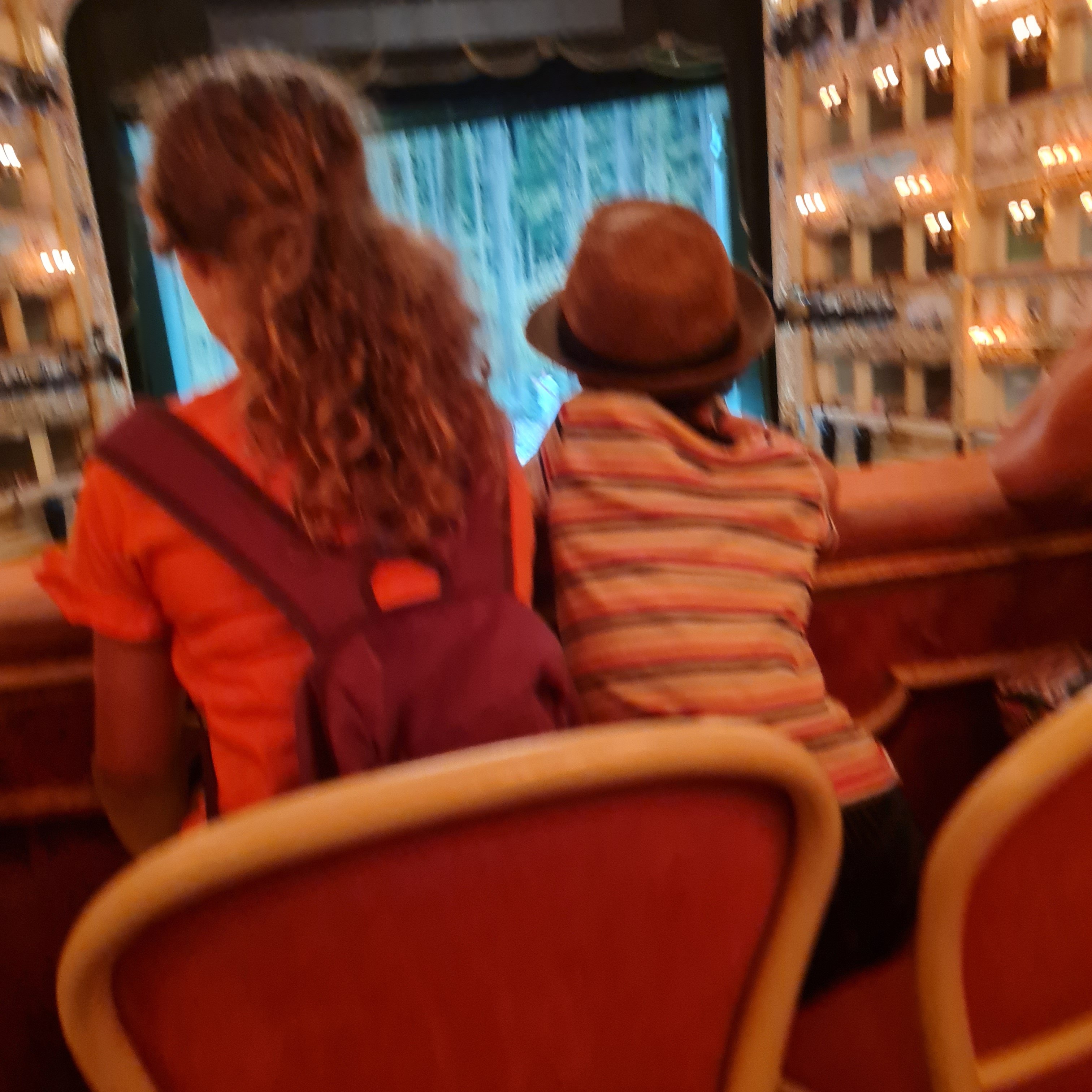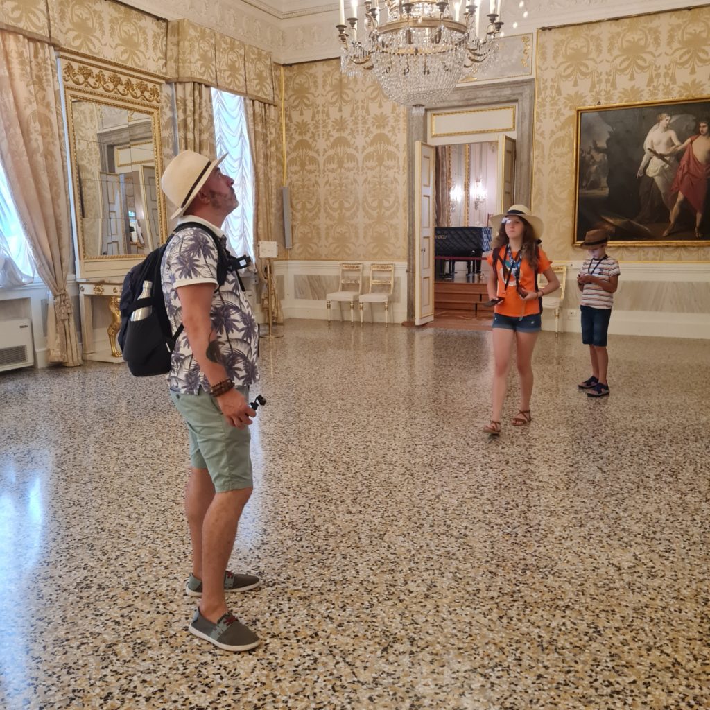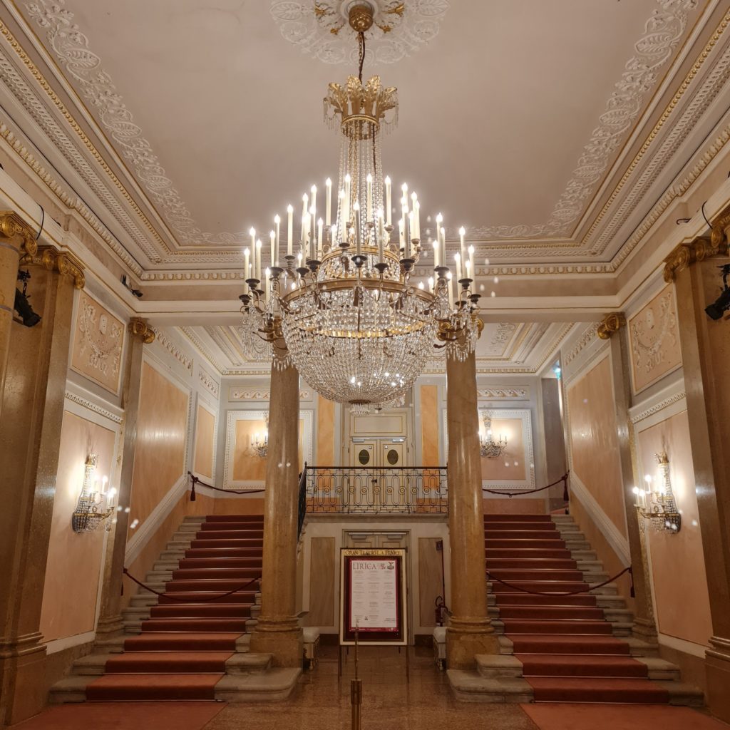 Nous avons beaucoup de chance, il y a des répétitions pour l’opéra qui débutera en septembre. Alors que nous sommes dans la loge royale, toutes lumières allumées avec le metteur en scène qui donne ses consignes, tout se tamise et 2 chanteurs démarrent leur morceau : Eric reconnaît immédiatement la Traviata ! Nous restons un long moment à les écouter, c’est extraordinaire !