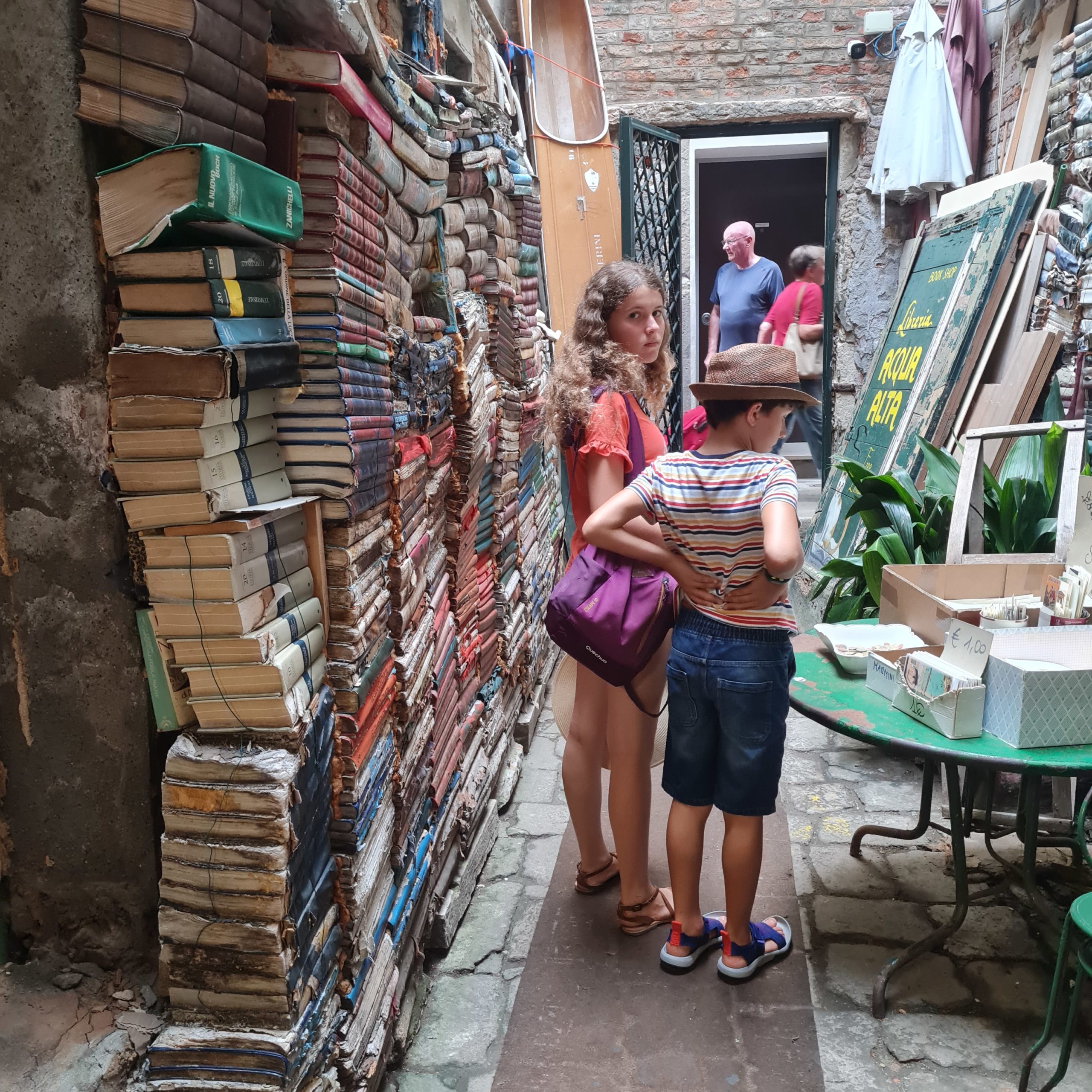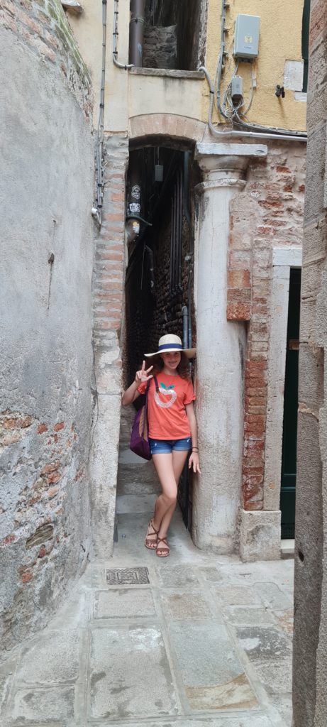 Nous flânons dans les ruelles, entrons dans la très poétique librairie Aqua Alta (merci Pauline et Pierre pour l’info), traversons des places adorables, découvrons une ruelle plus qu’étroite grâce à une cache, et débouchons enfin sur la mer !