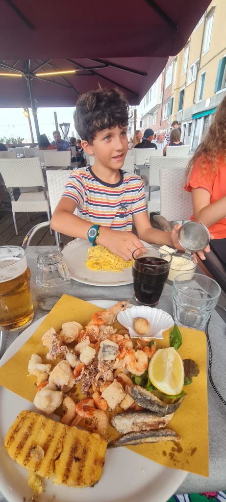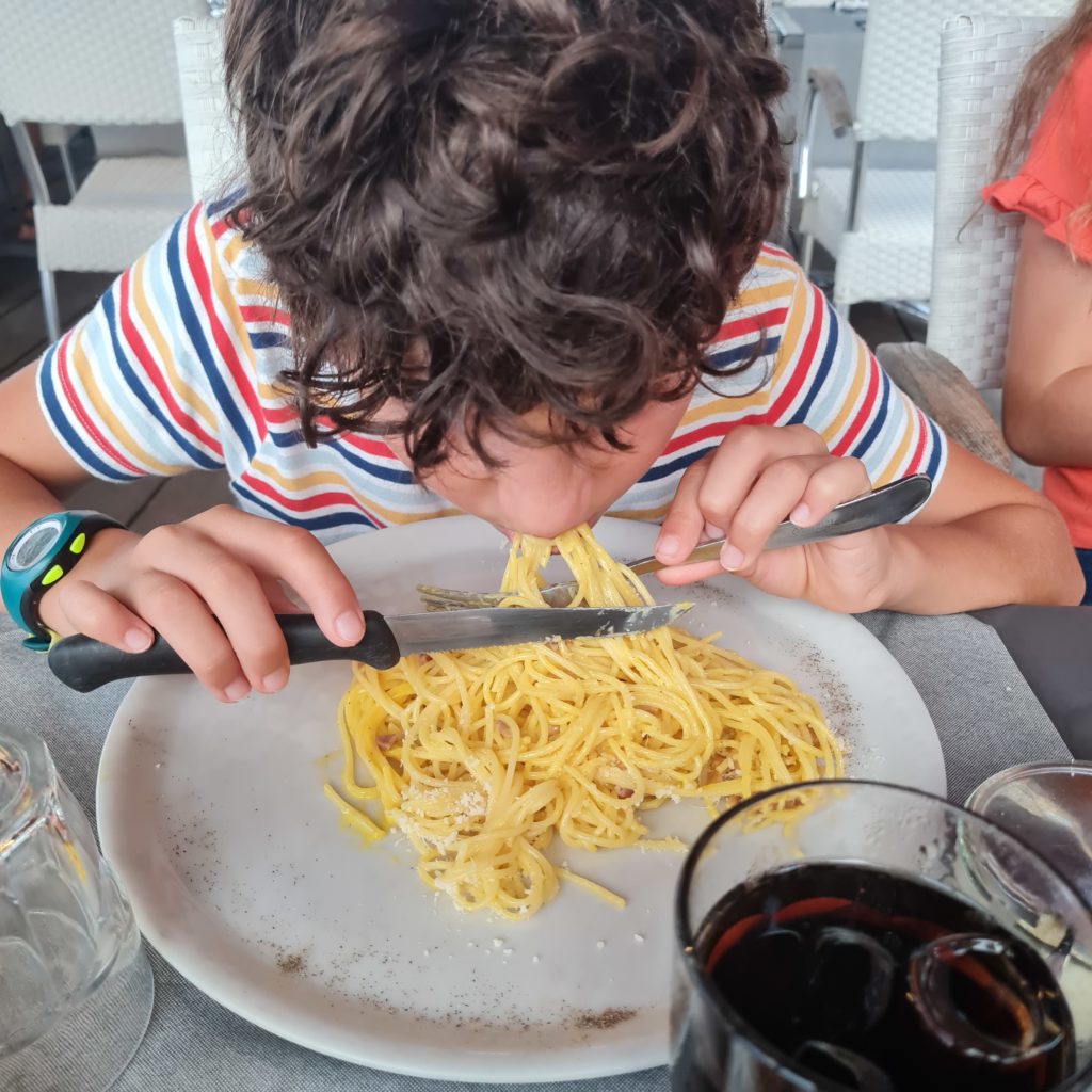 Miam, nous nous sommes régalés, c’était très bon ! Nous avons pu goûter d’autres spécialités, les fruits de mer frits, un régal ! Sacha semble continuer son guide sur les spaghettis à la carbonara en testant la recette ici.
