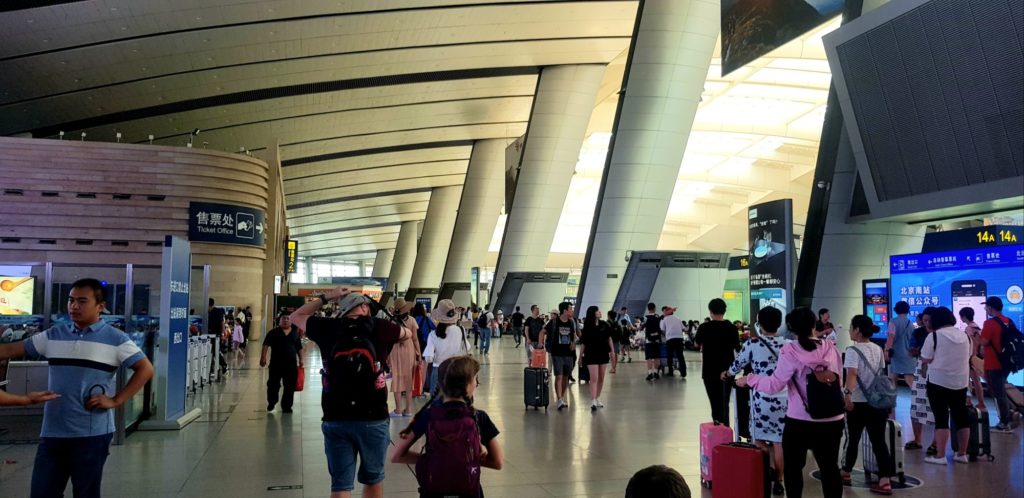 Nous prenons le train pour les rejoindre. La gare sud de Pékin est encore plus impressionnante que celle que nous avions vue en début de séjour !… Plus moderne, on se croirait plus dans un aéroport qu’une gare (il y a même un lounge !!)