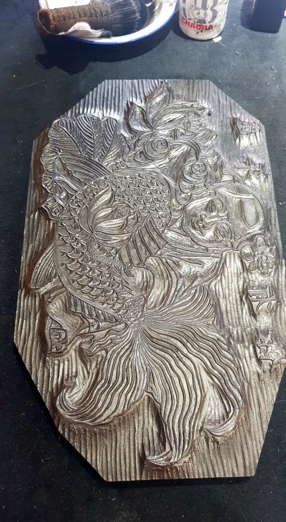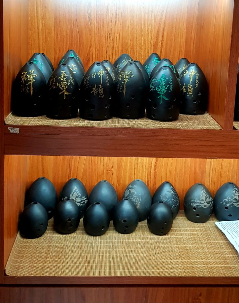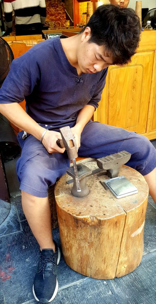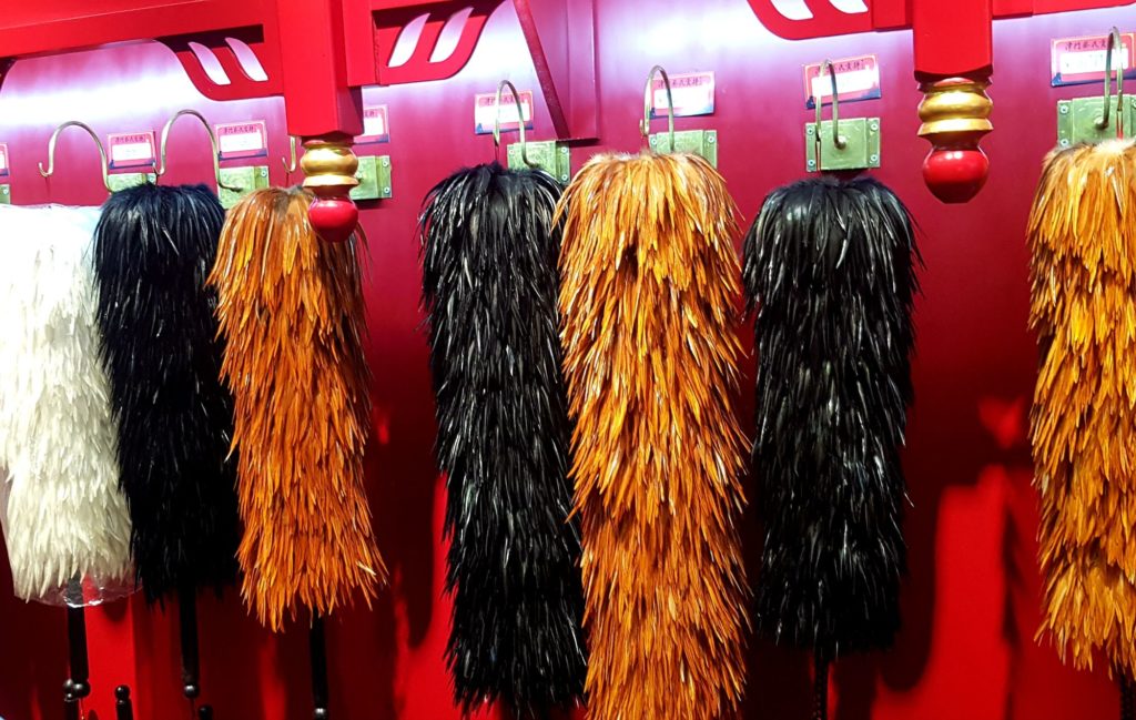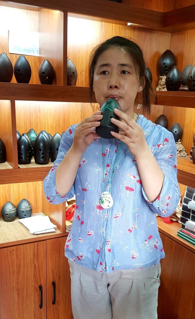 Nous verrons ainsi des instruments de musique traditionnels, des figurines en terre cuite, des sculptures de marbre, des éventails, des broderies de fils de soie, des bijoux en argent, des sculpteurs de noix, des tampons de marbre, des pinceaux pour la calligraphie traditionnelle, des plumeaux en plumes de coq, des marionnettes en peaux de cochons séchées et peintes pour le théâtre d’ombres et de la gravure sur bois avec impression manuelle. Je me suis d’ailleurs tirée une estampe moi-même !!