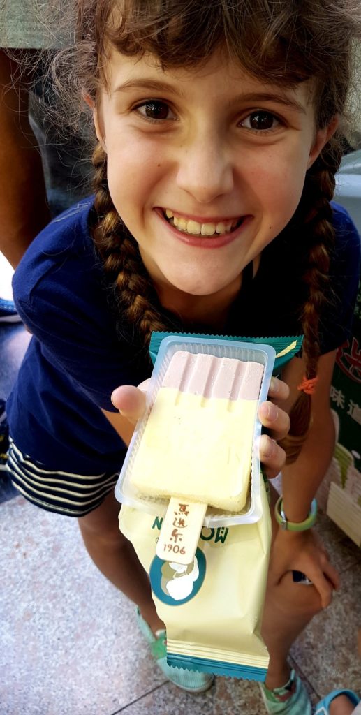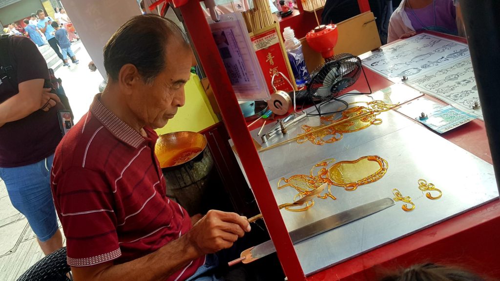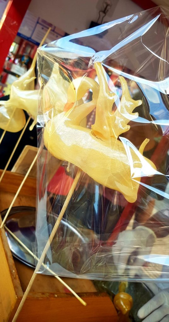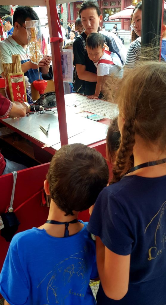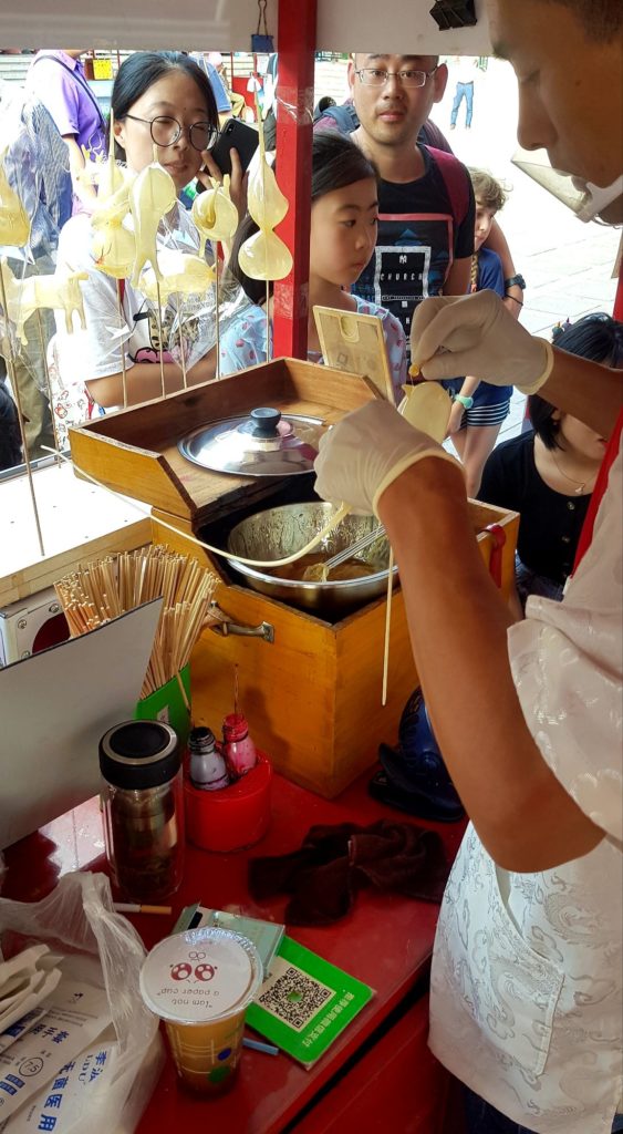 Yuan Yuan et sa famille sont adorables et nous offrent toutes sortes de cadeaux : des glaces, des éventails… Nous allons observer les fabricants de sucreries et admirer leur savoir-faire : souffleurs de sucre et sculpteurs de caramel 😉 Nous passons une super après-midi et avons toutes sortes de questions à leur poser !!!