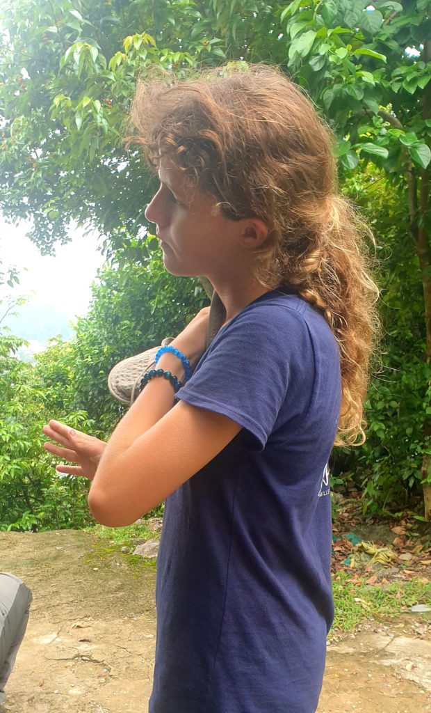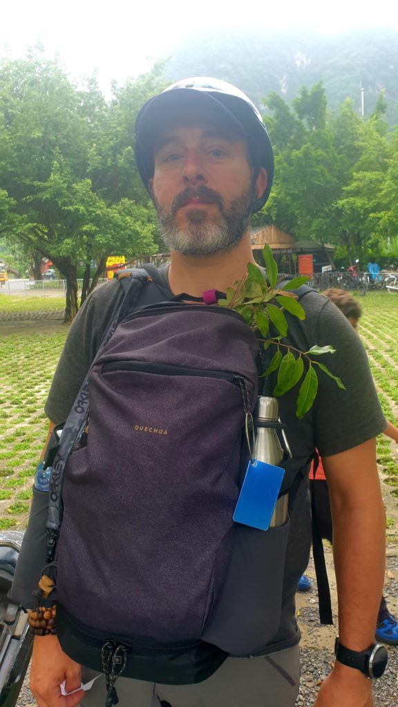 En partant de la guesthouse, la petite grand-mère nous a couru derrière pour nous donner des fruits (ça depasse du sac !)