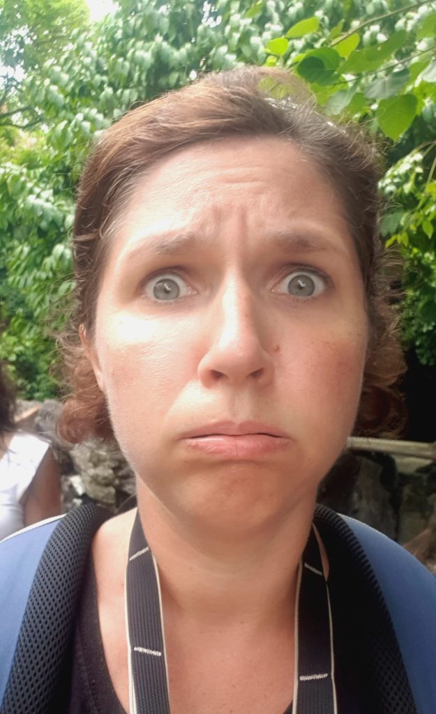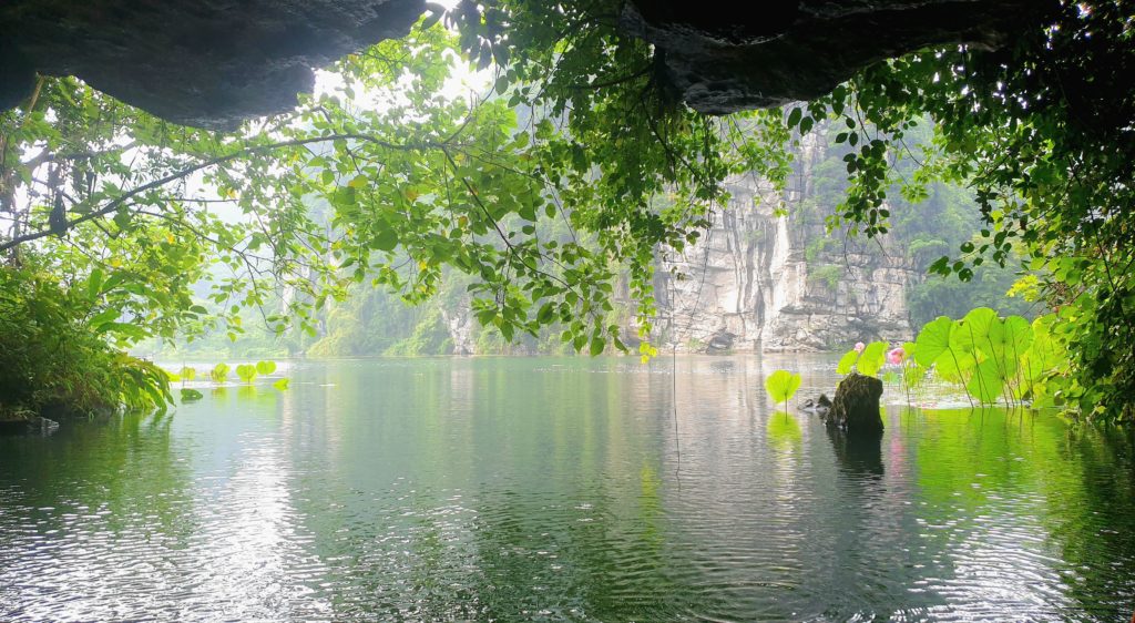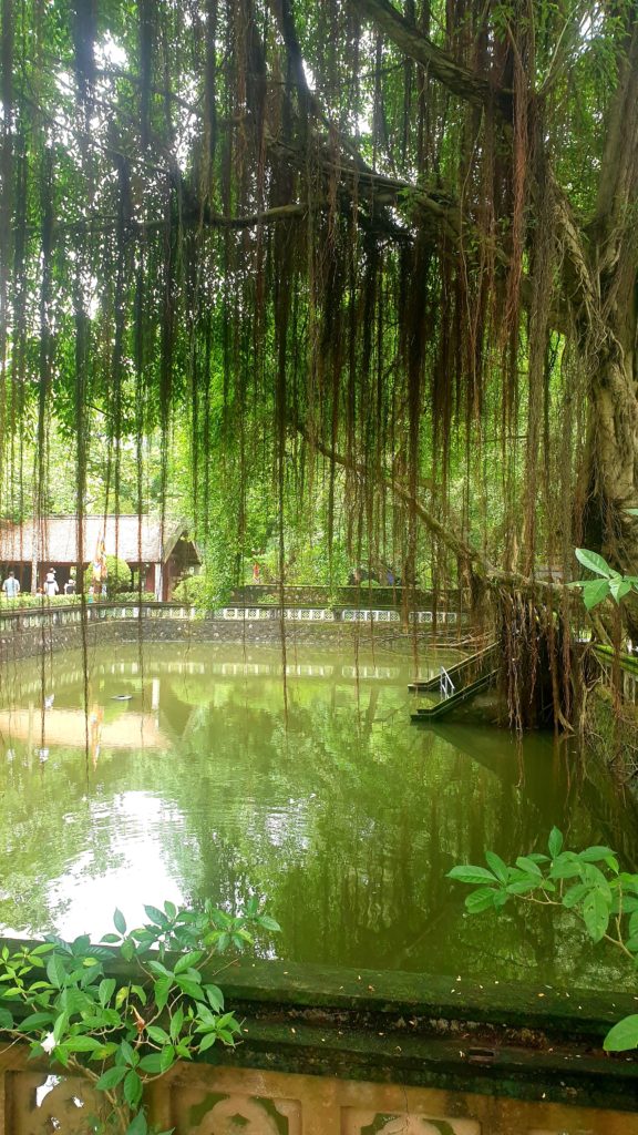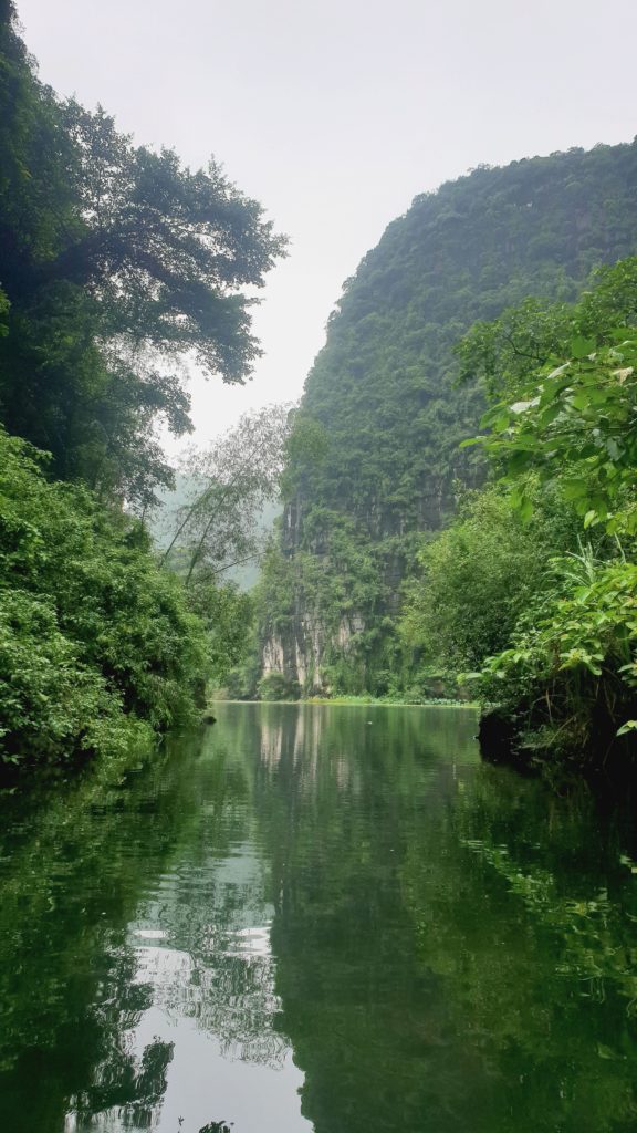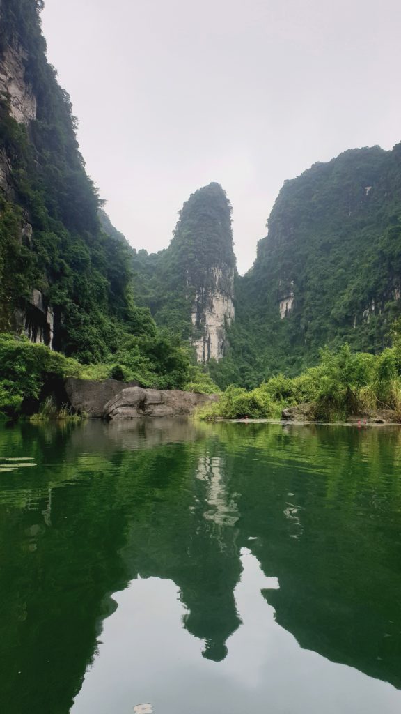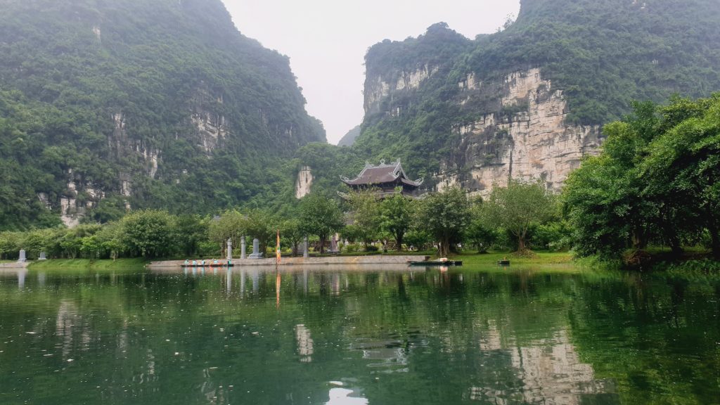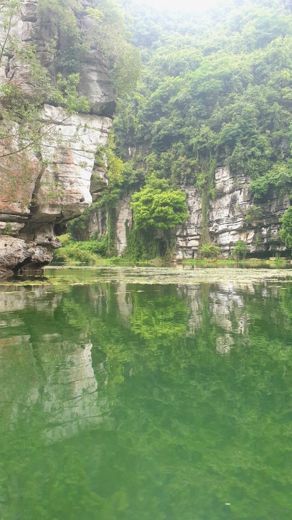 Que c’est beau ! Les roches qui s’élèvent, recouvertes d’une végétation luxuriante, l’eau claire, le silence et là, devant nous, un temple… on en reste bouche bée ! Je n’ai plus de mots, je suis ébahie devant un paysage aussi beau.