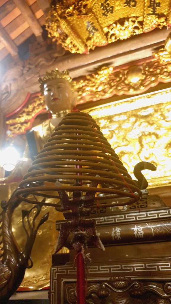 Nous sommes presque seuls, c’est un moment inoubliable. Des pagodes, des temples sont construits ça et là, même au milieu de l’eau. On s’arrête, on entre et on admire les statues et les décors au milieu des odeurs d’encens.