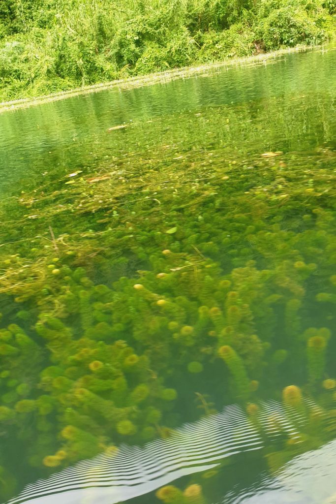 Il n’y a pas un bruit, juste celui du clapotis de l’eau. La rivière est limpide, d’un vert profond, parfois tirant sur le turquoise. On aperçoit des algues, des poissons et des dizaines de petites poules d’eau qui apparaissent et disparaissent à la surface de l’eau. Ici, pas de barque à moteur, pas de pollution, pas de déchet, tout est parfaitement entretenu pour garder le site intact !