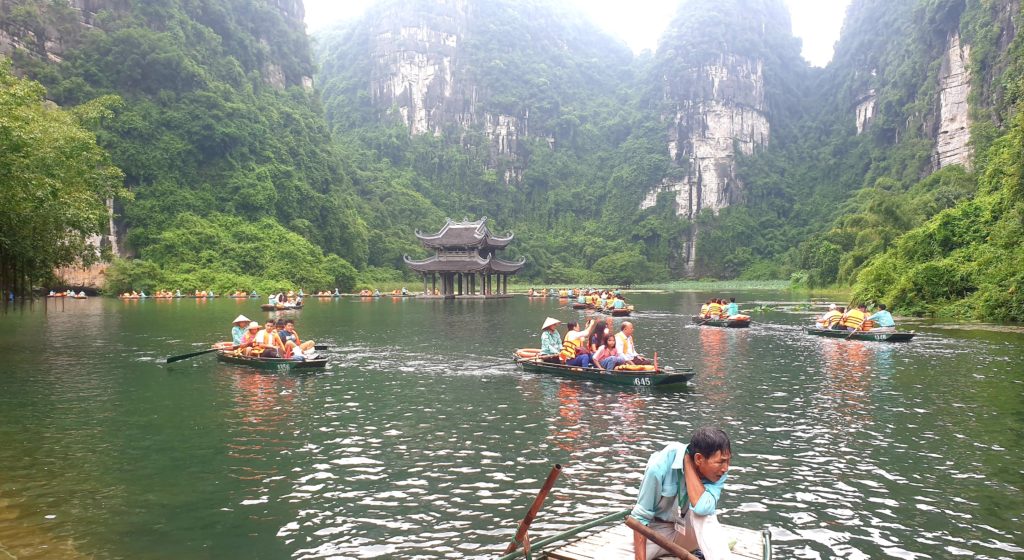 Nous nous levons tôt ce matin car nous voulons visiter le site des grottes de Trang An, classé au patrimoine mondial de l’UNESCO et être sur place avant que les hordes de touristes ne débarquent…