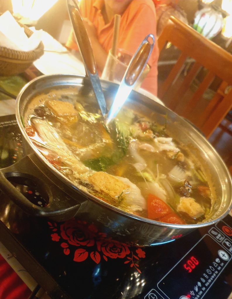 Le soir, nous retournons dans un endroit qui nous a beaucoup plu la veille, Chez Loan, avec un français, Pascal, haut en couleurs et une vietnamienne, Loan, qui parle couramment le français. Nous dégustons ce soir un hot pot, une fondue chinoise. C’était délicieux !