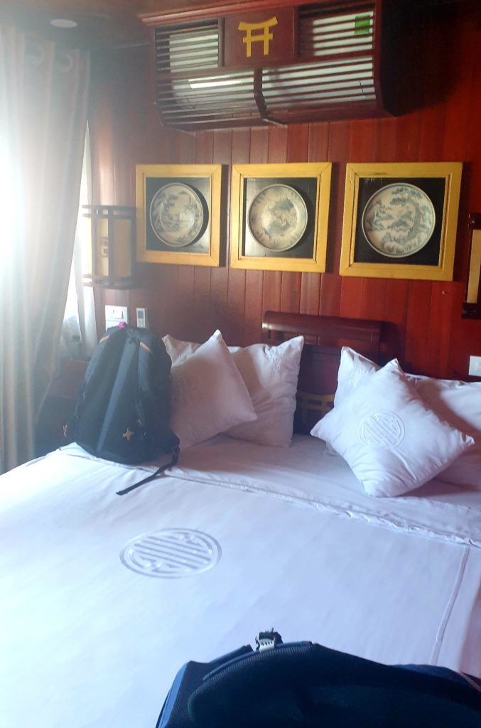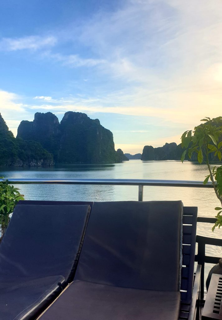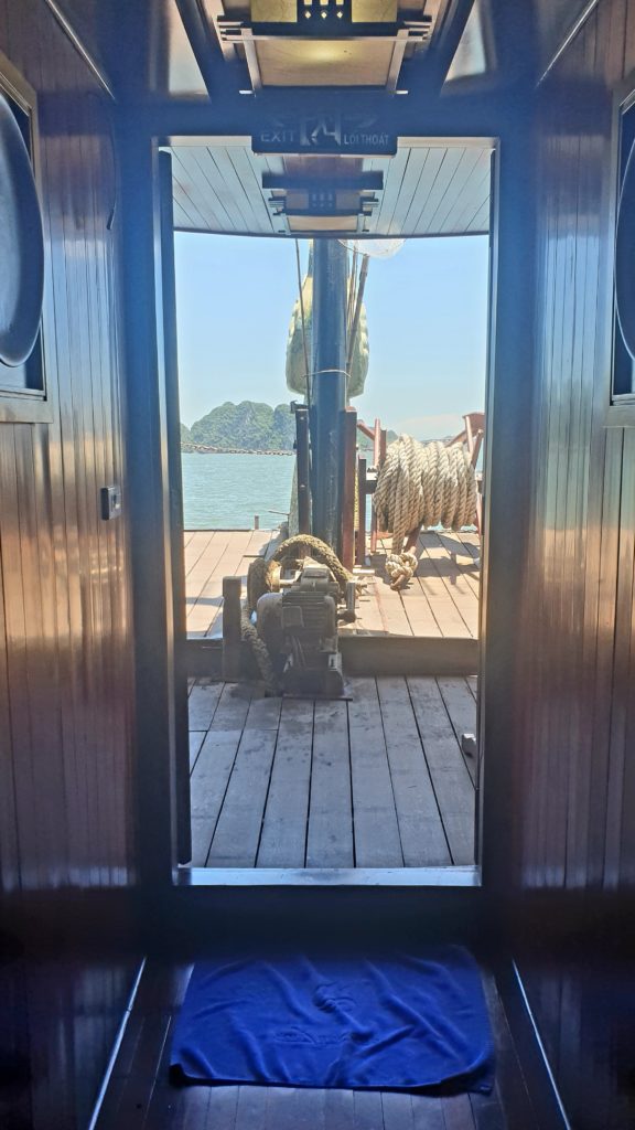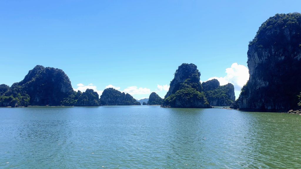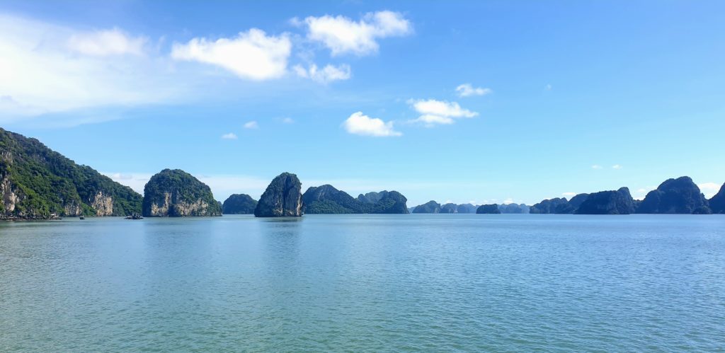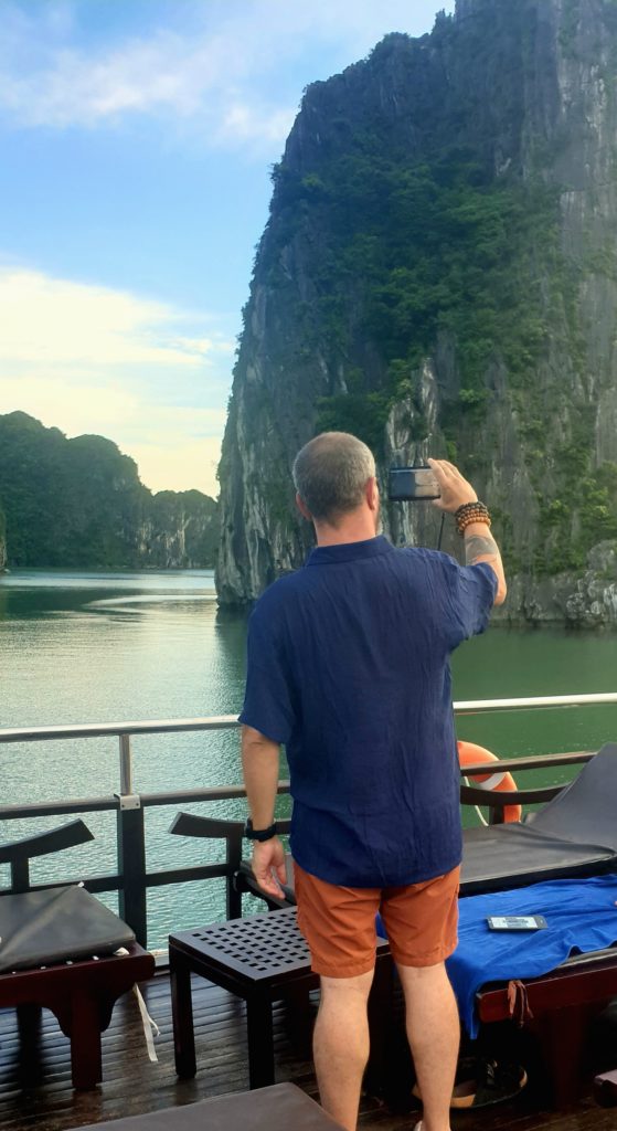 La compagnie est réputée pour s’éloigner le plus possible des circuits fréquentés pour éviter les autres bateaux. Effectivement nous sommes au cœur de la baie d’Ha Long et nous sommes seuls… Nous avons adoré la baie d’Ha Long terrestre, mais là, c’est encore plus grandiose ! Quelle splendeur, nous sommes scotchés !
