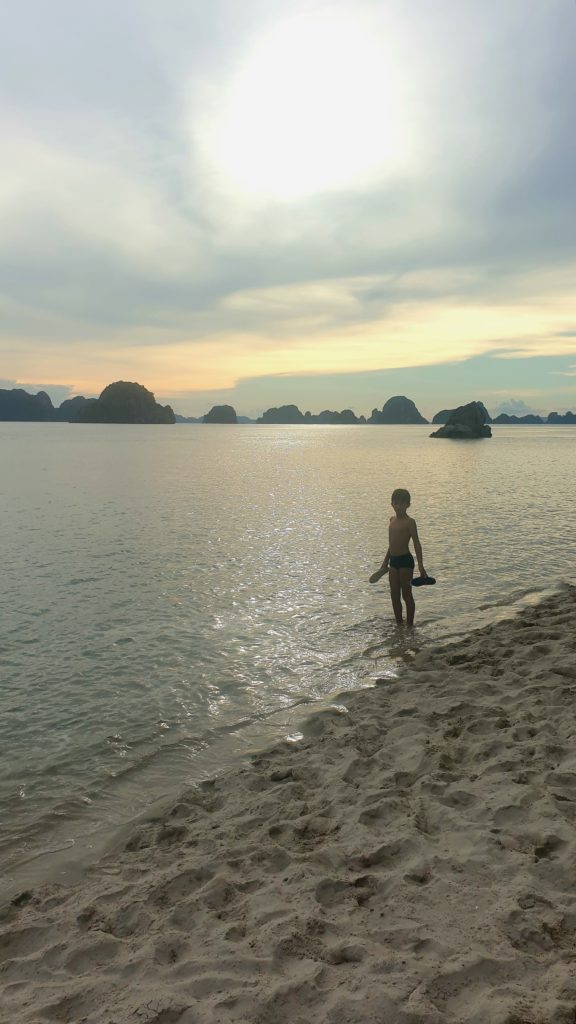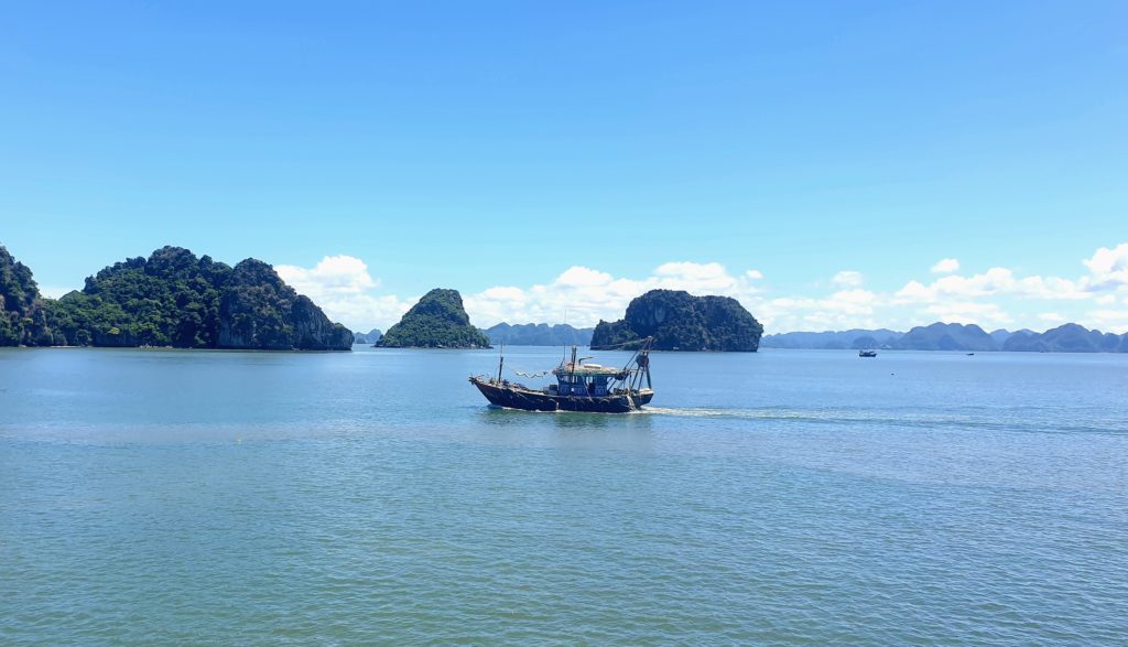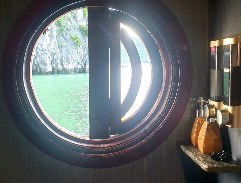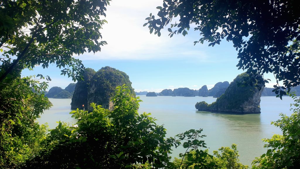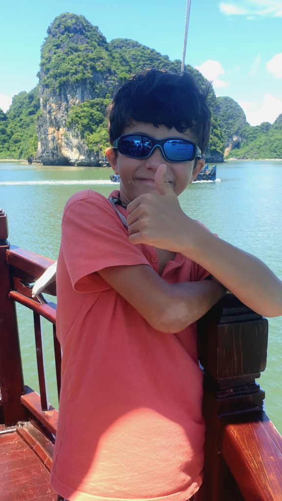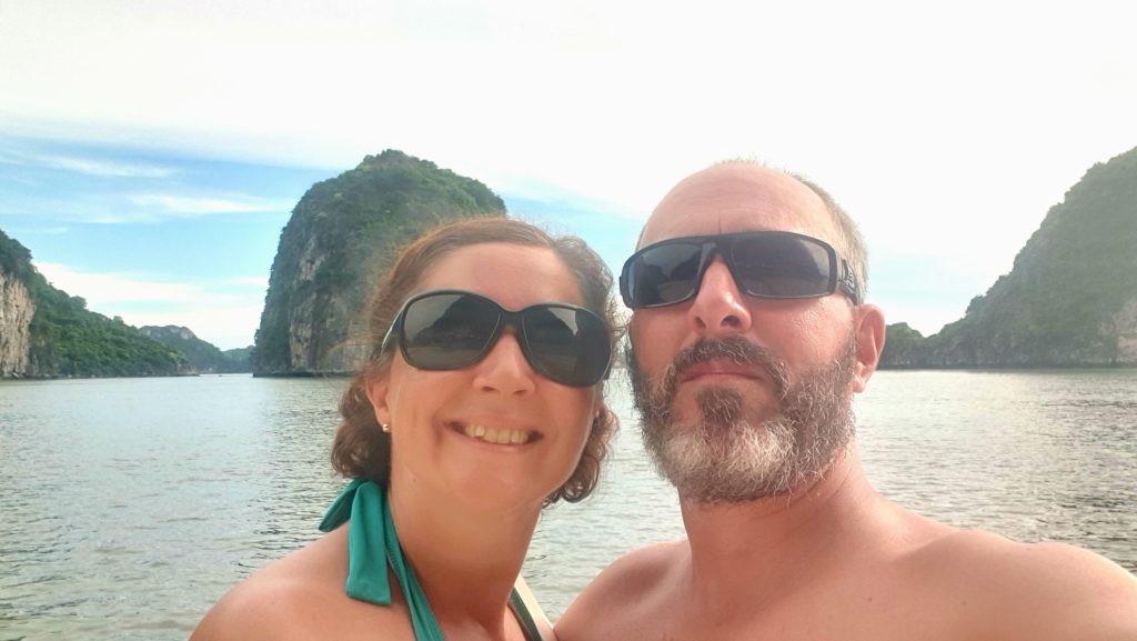 La compagnie est réputée pour s’éloigner le plus possible des circuits fréquentés pour éviter les autres bateaux. Effectivement nous sommes au cœur de la baie d’Ha Long et nous sommes seuls… Nous avons adoré la baie d’Ha Long terrestre, mais là, c’est encore plus grandiose ! Quelle splendeur, nous sommes scotchés !