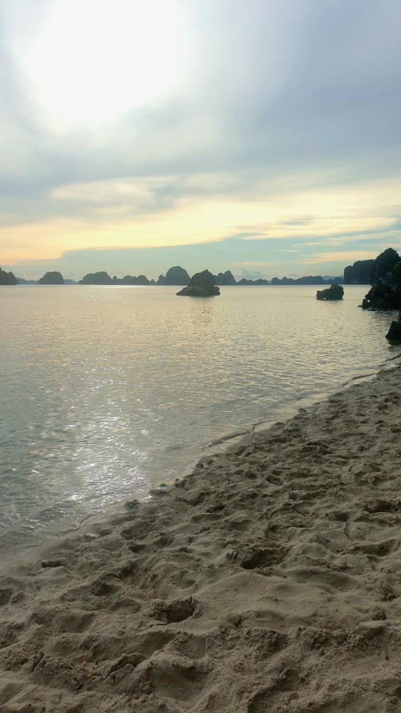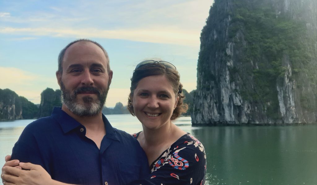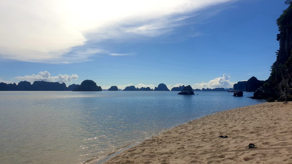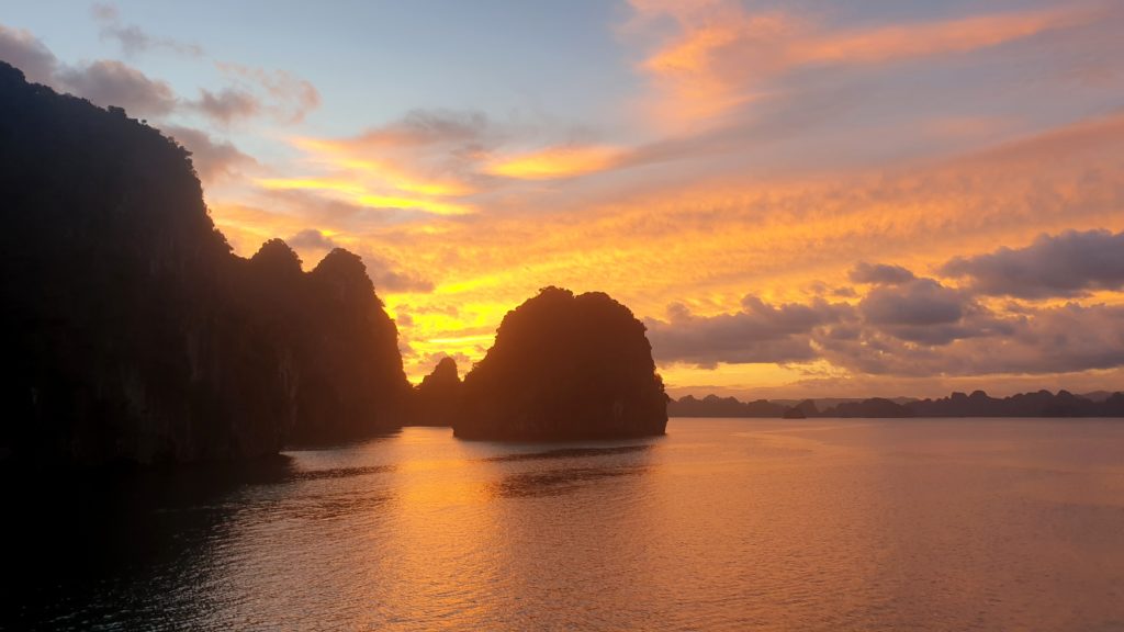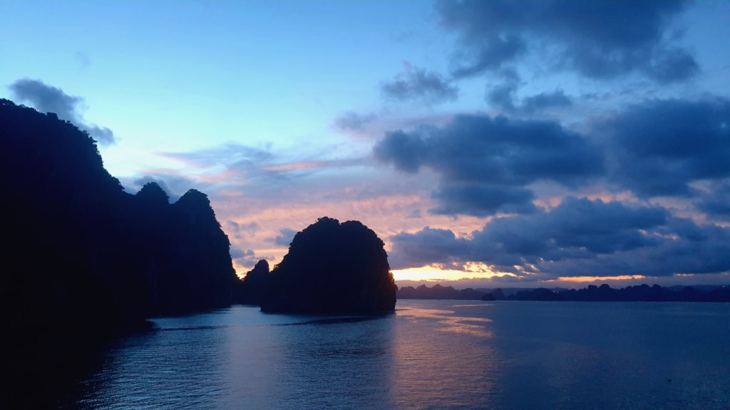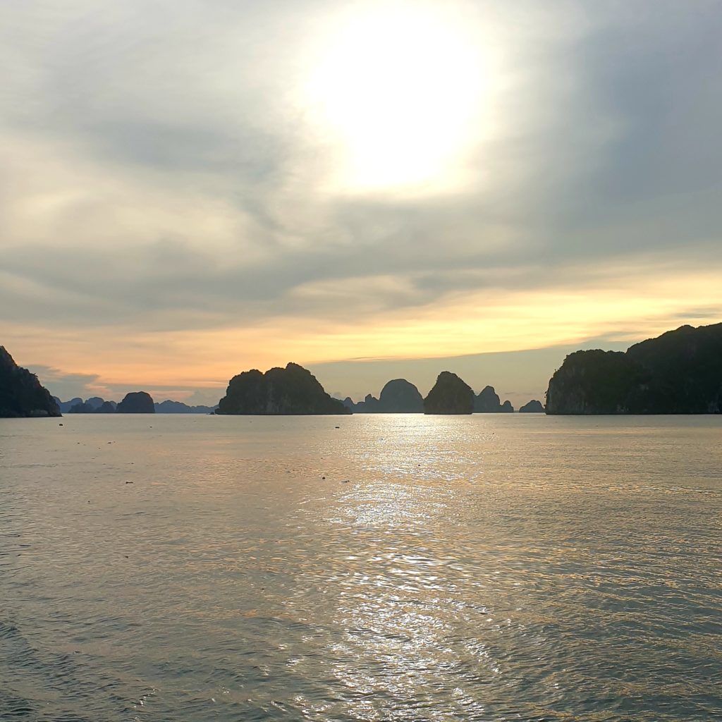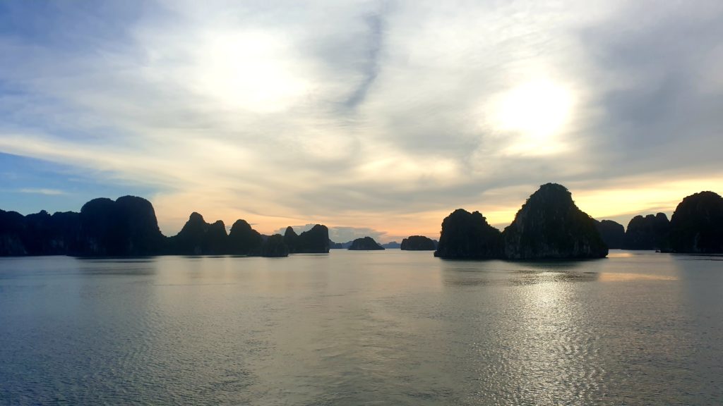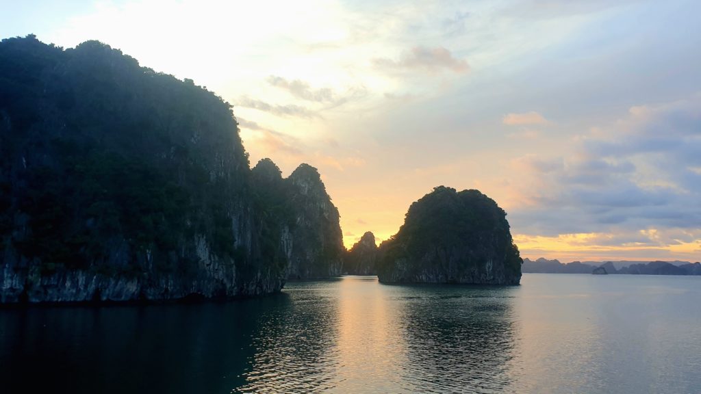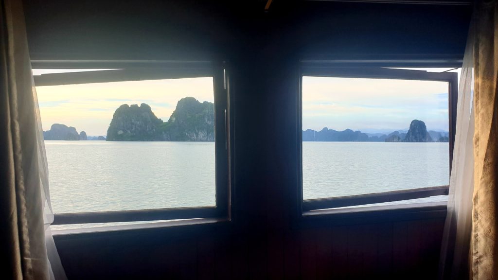 Un bus doit venir nous récupérer à 6h50 dans le village et arriver à 10h50 à Ha Long où nous n’aurons plus qu’à rejoindre le bureau d’une compagnie car nous avons réservé une croisière de 2 jours/1 nuit sur un bateau dans la baie d’Ha Long ! Nous devons être sur place avant 12h, ça devrait être simple.