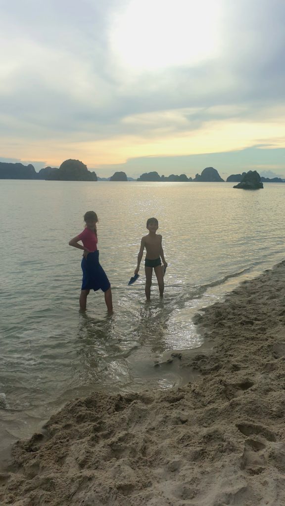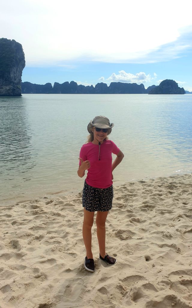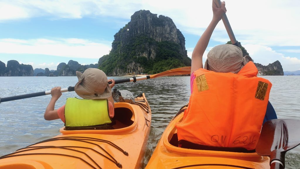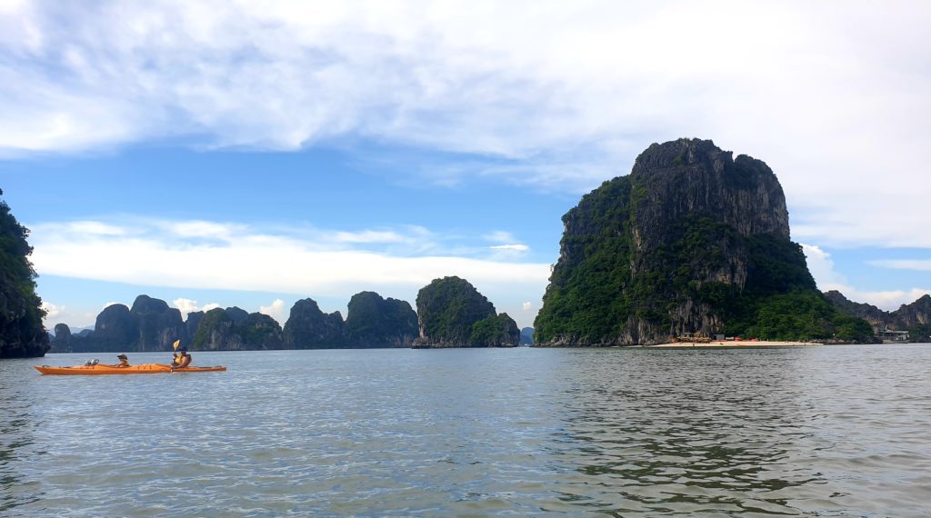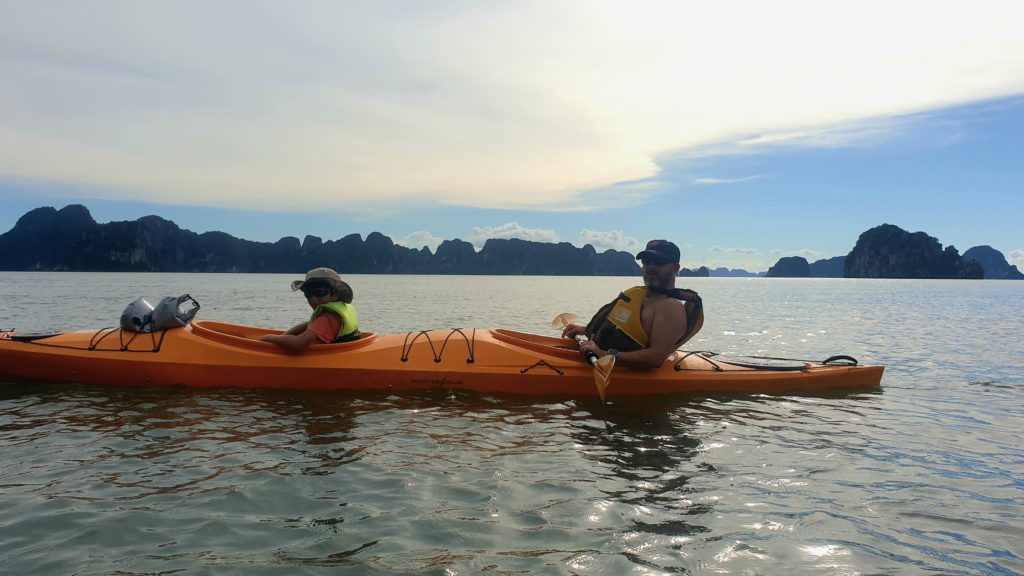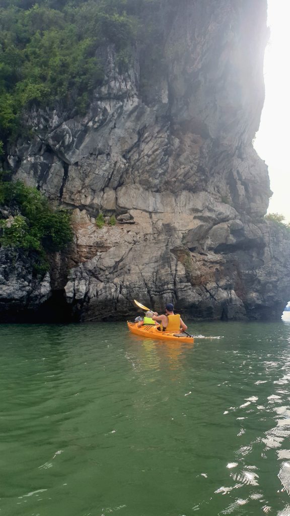 Nous n’échappons pas aux traditionnelles activités pour nous occuper pendant l’après-midi : visite d’une grotte, kayak autour des rochers et un peu de plage.