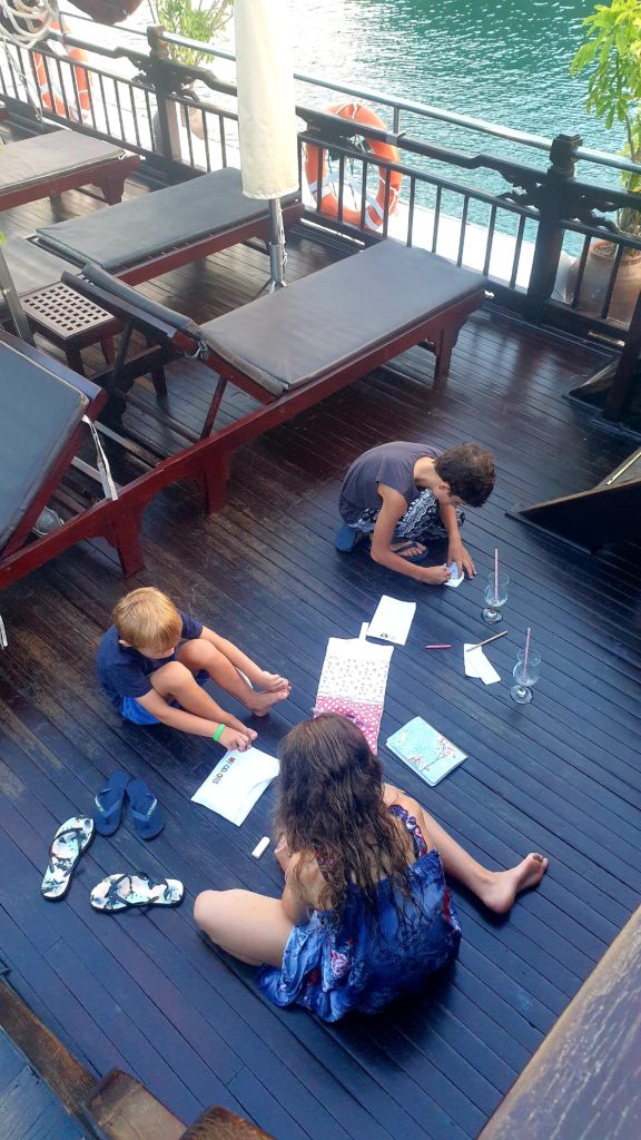 Sur le bateau, personne ne parle, il y a un silence complet, presque religieux, qui permet à chacun d’apprécier le spectacle. Les enfants font des coloriages avec un petit garçon présent lui aussi sur la croisière. Même eux sont silencieux !