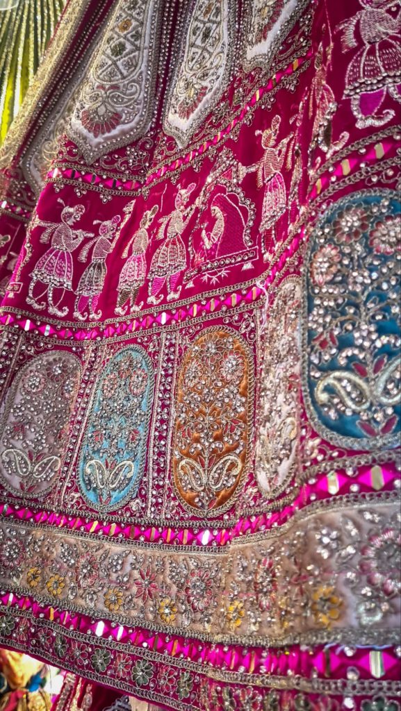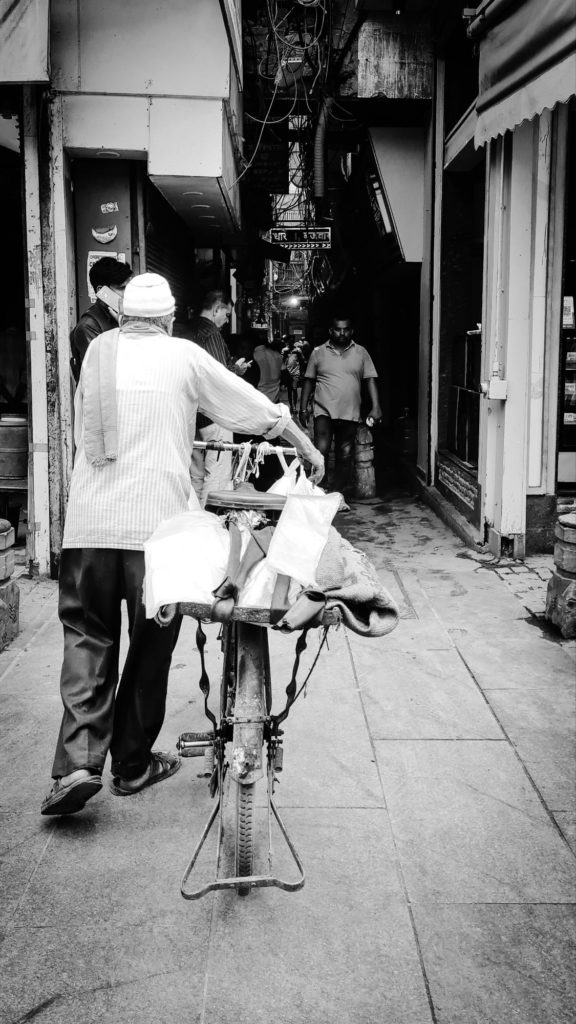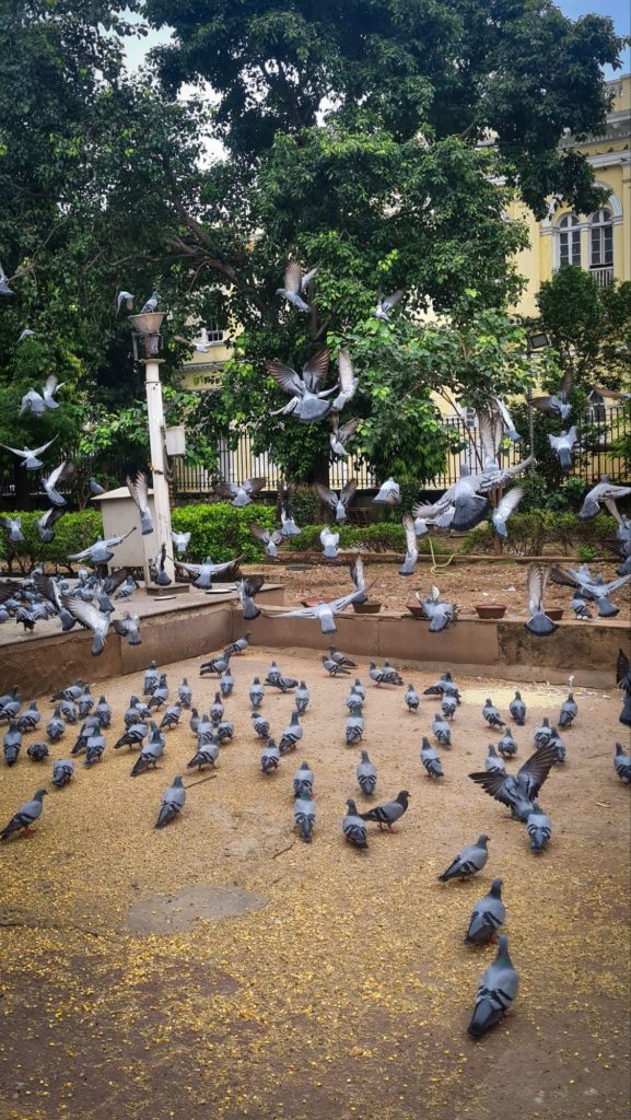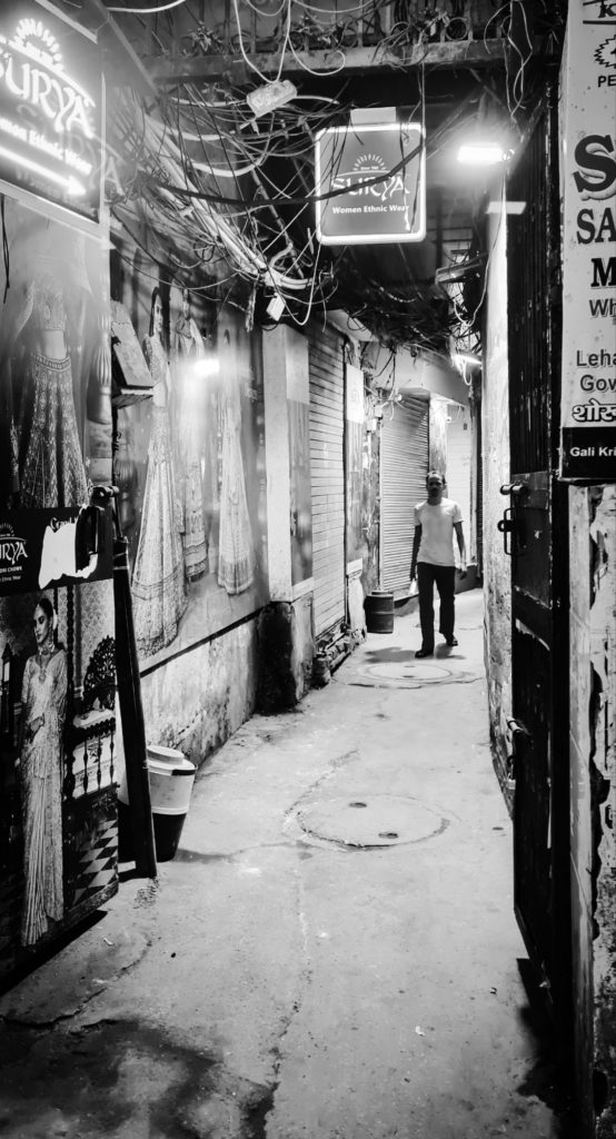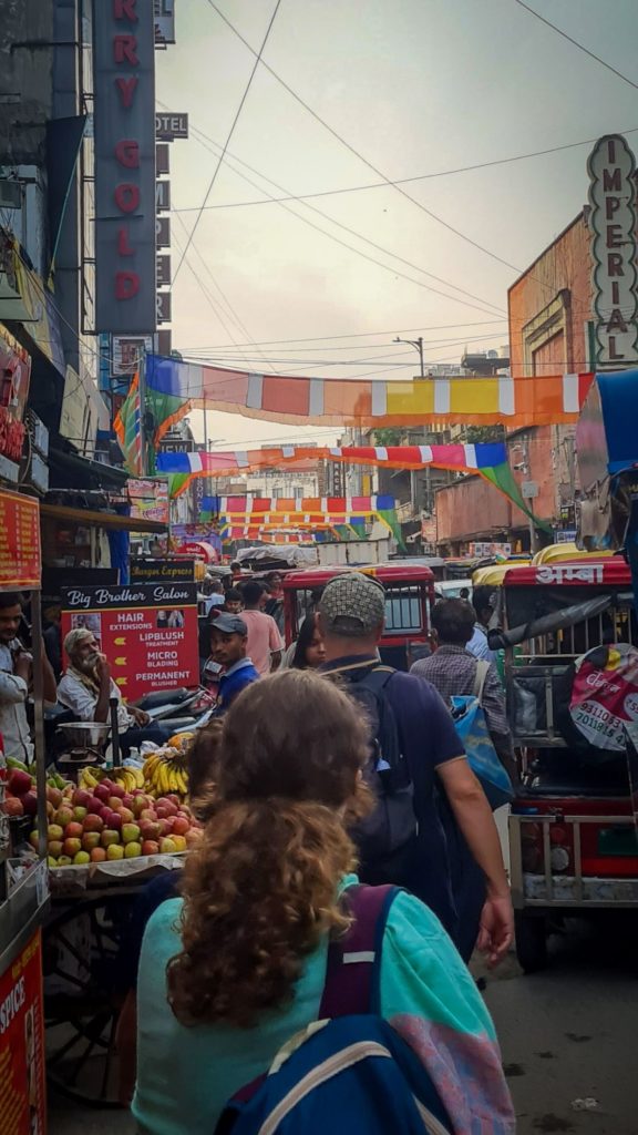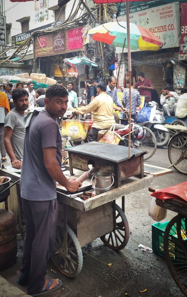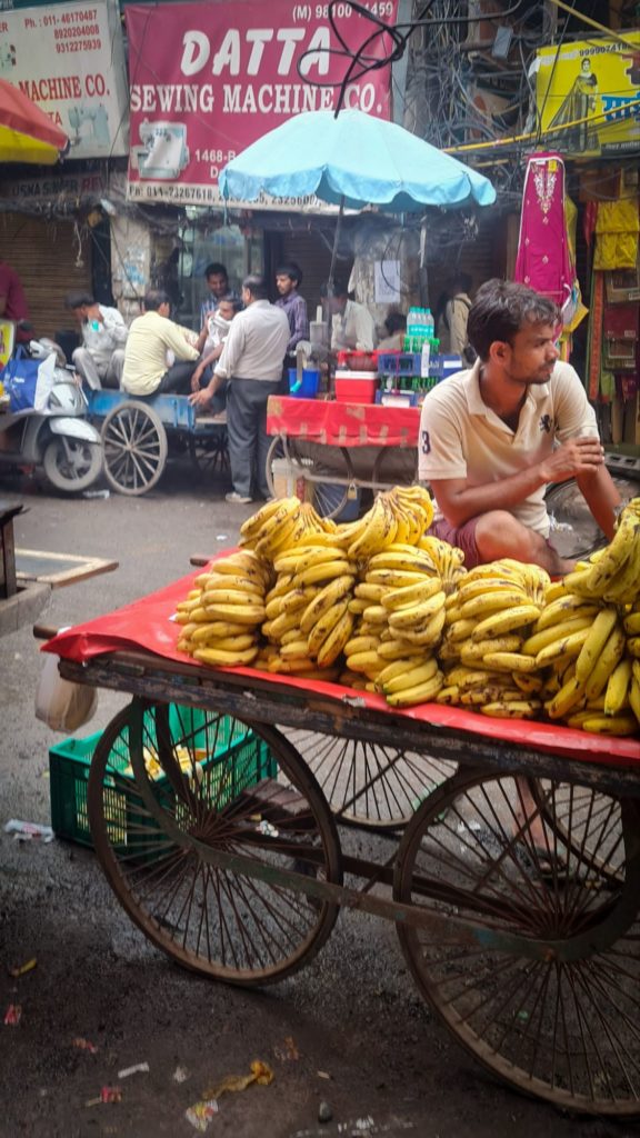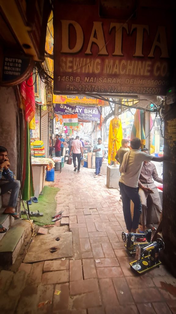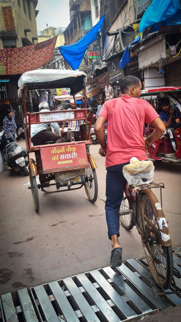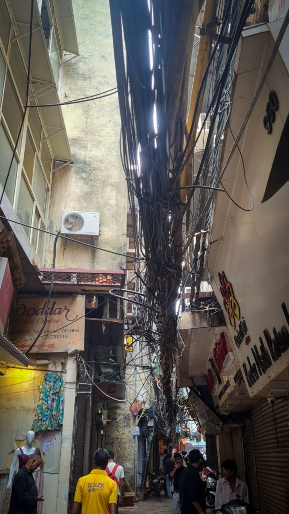 MétroRegardez les fils électriques…Les indiens viennent dans ce marché choisir les robes des futures mariées. C’est un déploiement de couleurs et de brillants, c’est magnifique !Les indiens achètent des graines pour nourrir les pigeons/dieuOn croise souvent dans les rues des hommes qui se sont teints les cheveux ou la barbe en orange. Ils sont musulmans et font cela pour imiter le prophète.