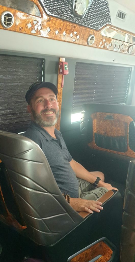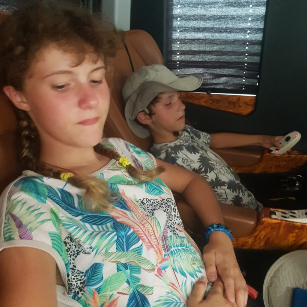 Minibus grand luxe ! Sacha a même son propre siège cette fois-ci
