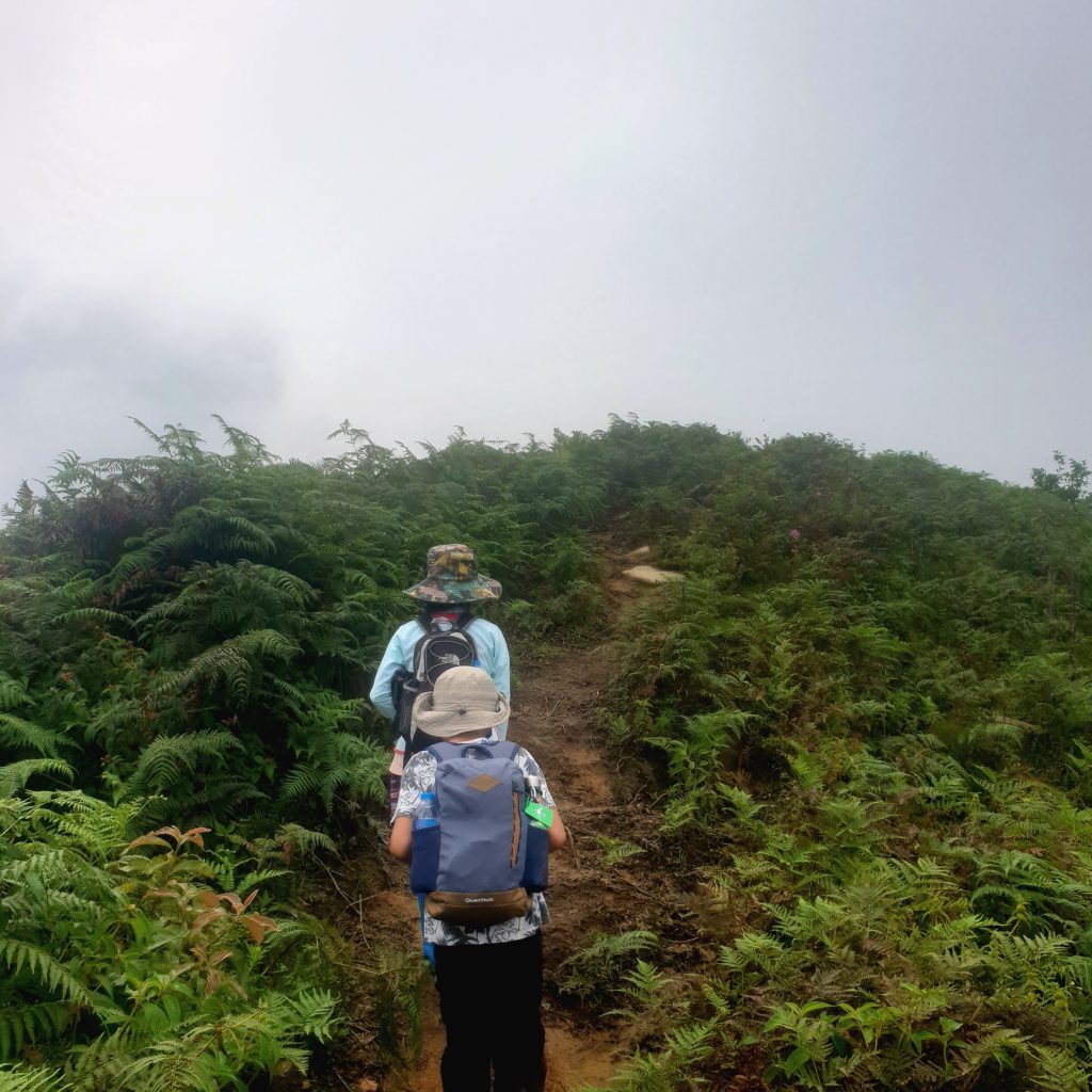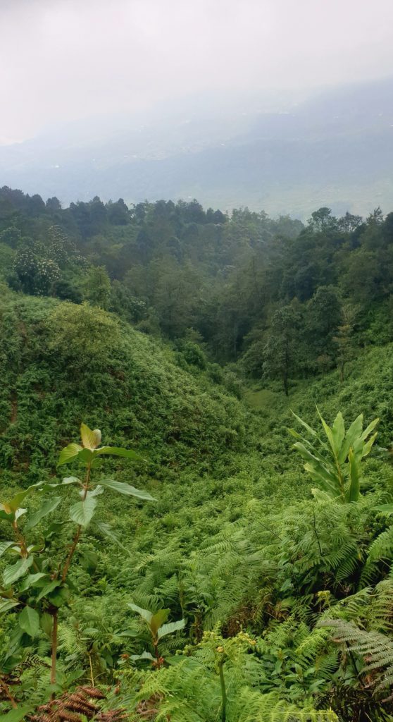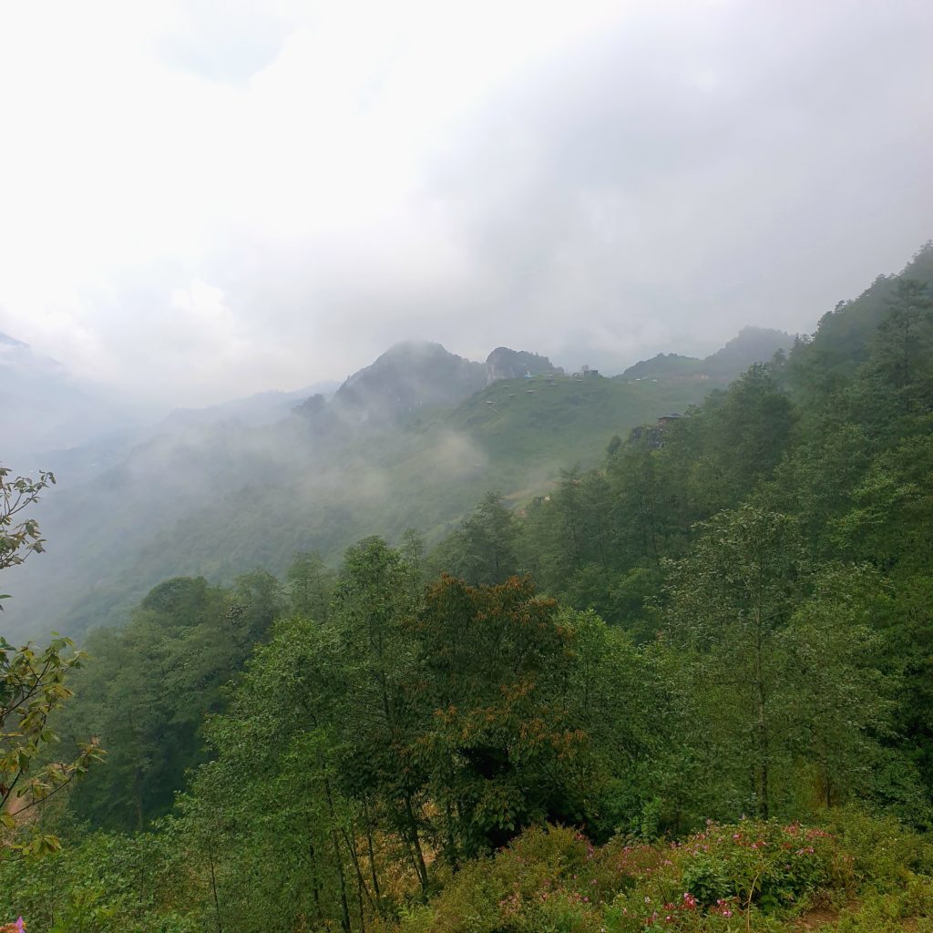 On a grimpé à travers la forêt, les champs de maïs et d’orchidée, parfois dans des sentiers où il n’y avait que la place de nos chaussures. 2 km de montée pour arriver au sommet (550 m de dénivelé en 1h20), on a envoyé du lourd ! Su nous dit de faire attention aux sangsues, il y en a énormément. Ok !… Effectivement, à chaque pause, on vérifie nos jambes et nous en avons tous en train de grimper sur nous ! Beurk…