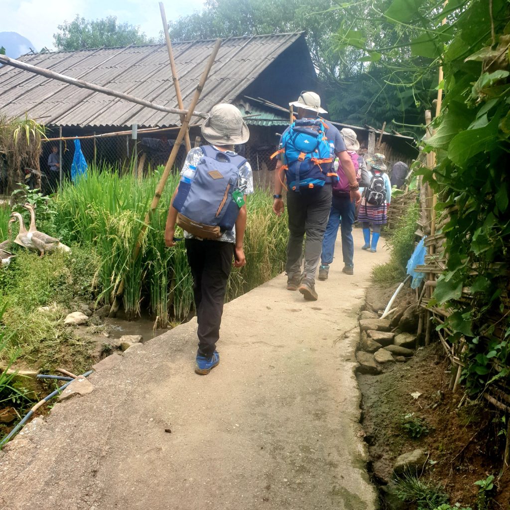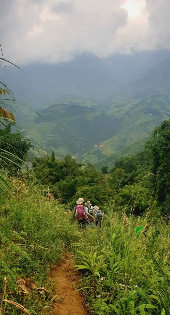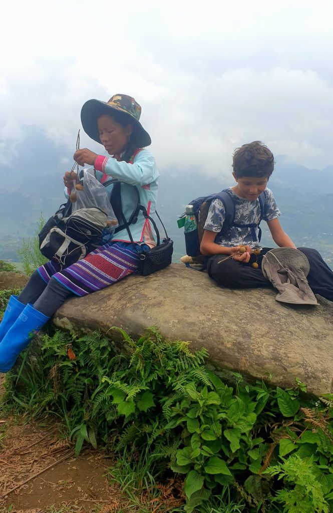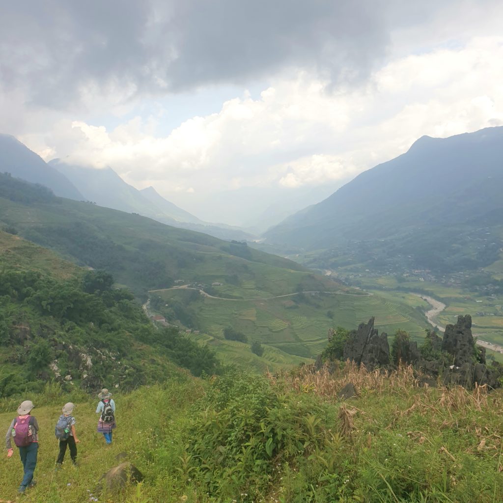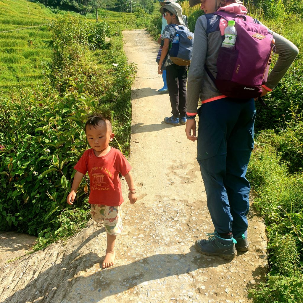 Nous retrouvons notre guide anglophone, Su, à Sapa (une cité perchée à 1650m d’altitude), qui nous expose le programme des 3 prochains jours et nous démarrons. Il est 9h00, nous avons seulement grignoté quelques grains de raisin et biscuits en guise de petit-déjeuner et nous allons commencer par la montée d’une montagne ! Youhouuuu